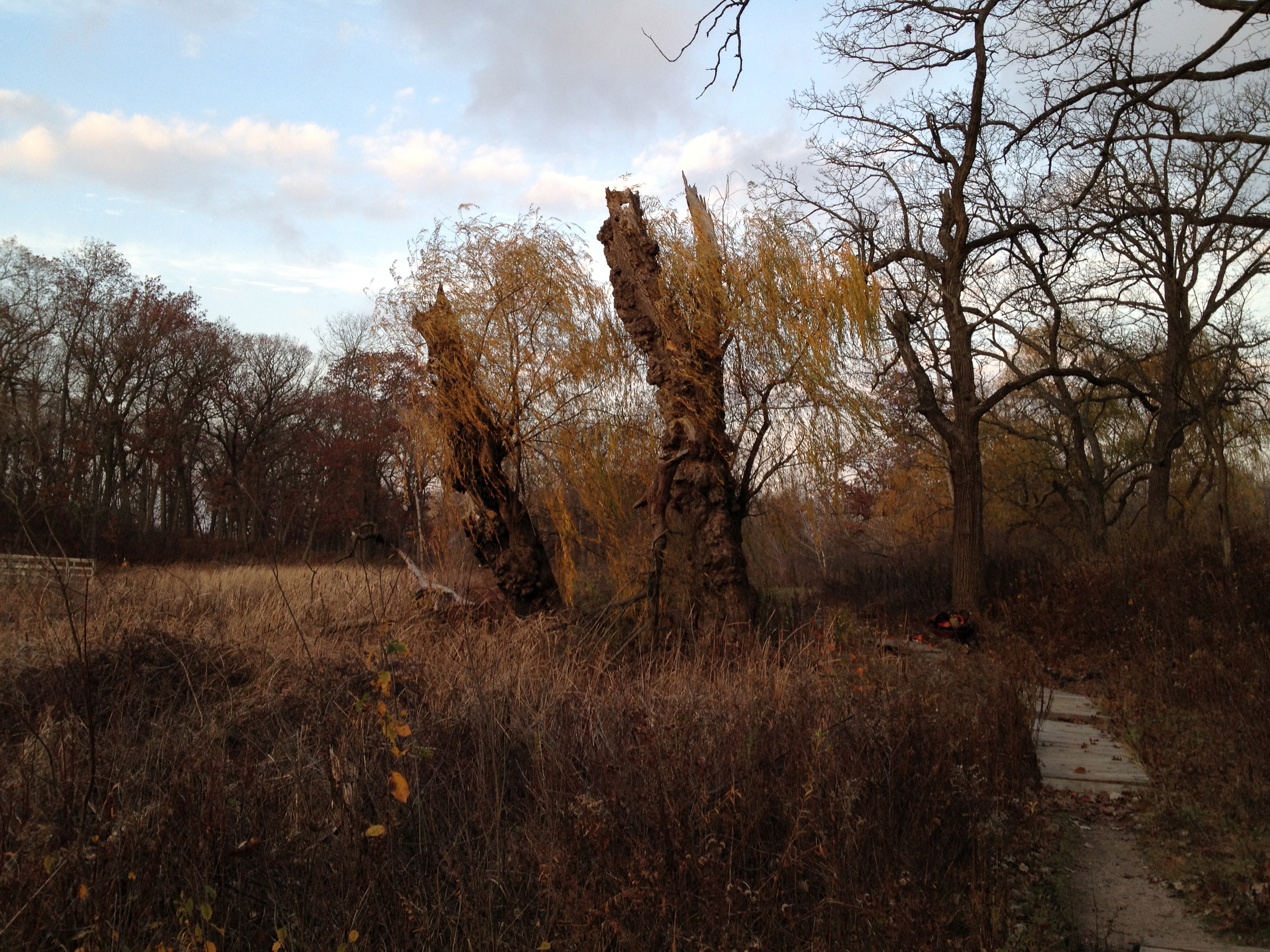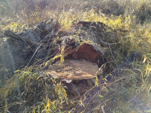 Lindsay and I ignored the threat of rain today and had some fun by the River. The first thing I worked on was taking down these two huge Willows by the Hotel Spring.