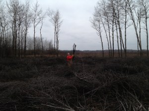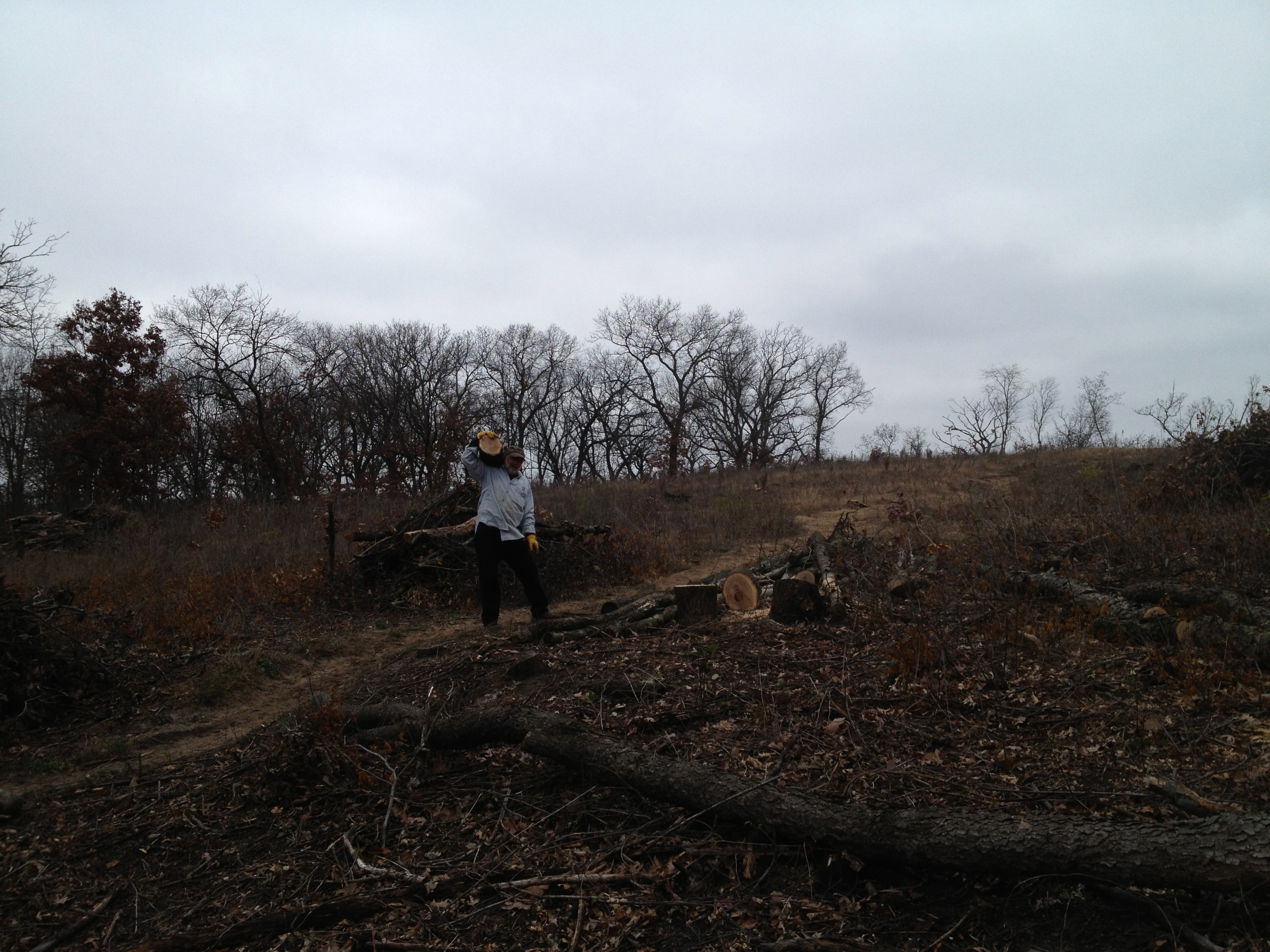 I had the pleasure of the company of Rich Csavoy and Randy Shilling today. Rich found out about the project via Amanda Prange, DNR Visitor Services Associate, Seed Gather and Volunteer Coordinator extraordinaire. He practically lives next door and noticed the changes happening at the Springs. Rich is skilled with the chain saw and brush pile making and burning and he is a hard-working man. Welcome Rich!