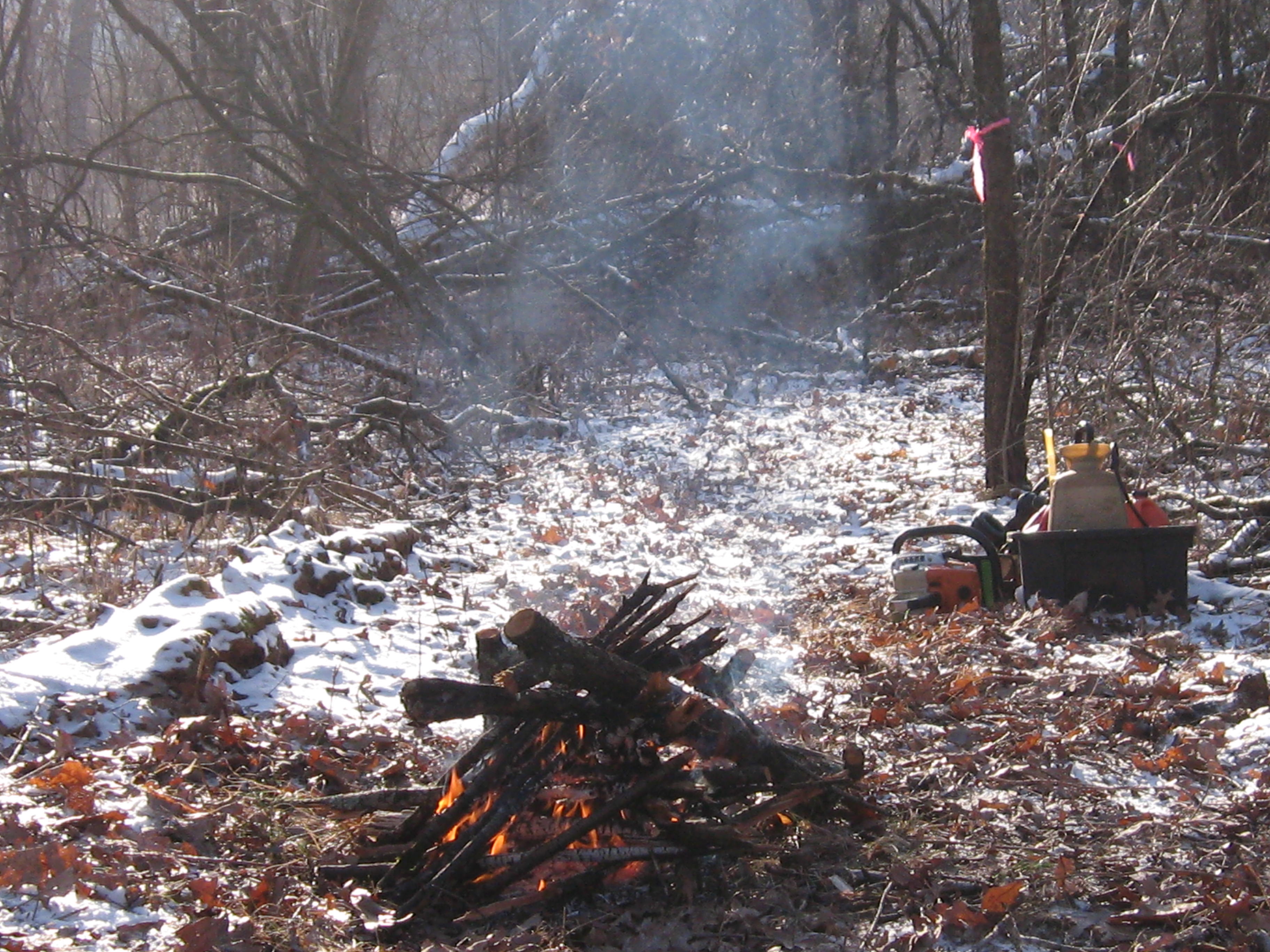 There were some huge and TALL Buckthorns in this area and they all seemed to be sprouting dozens of interlocking trunks and branches. It tries your patience after a while and I had to quit after 6 tankfuls with the chainsaw.