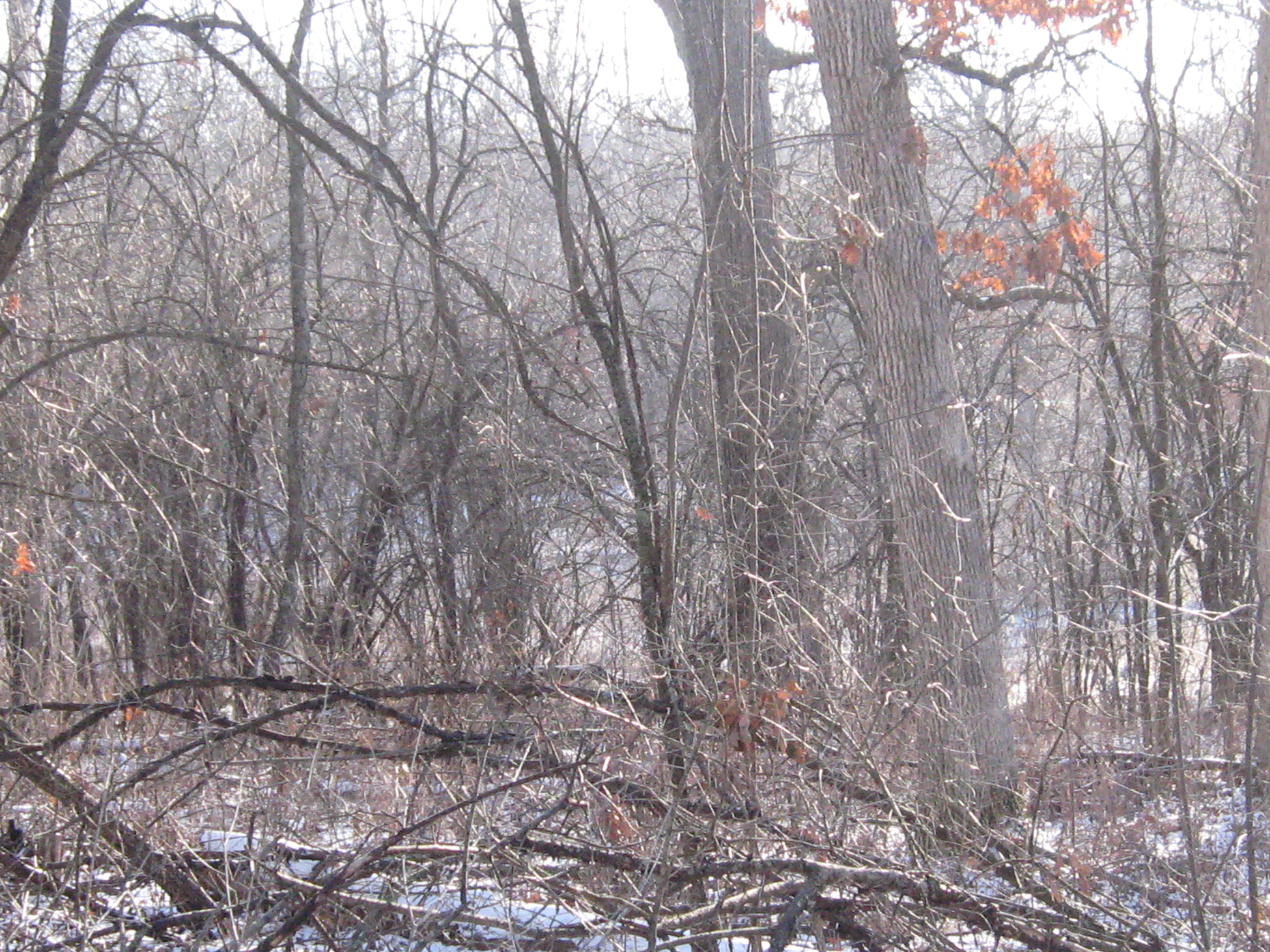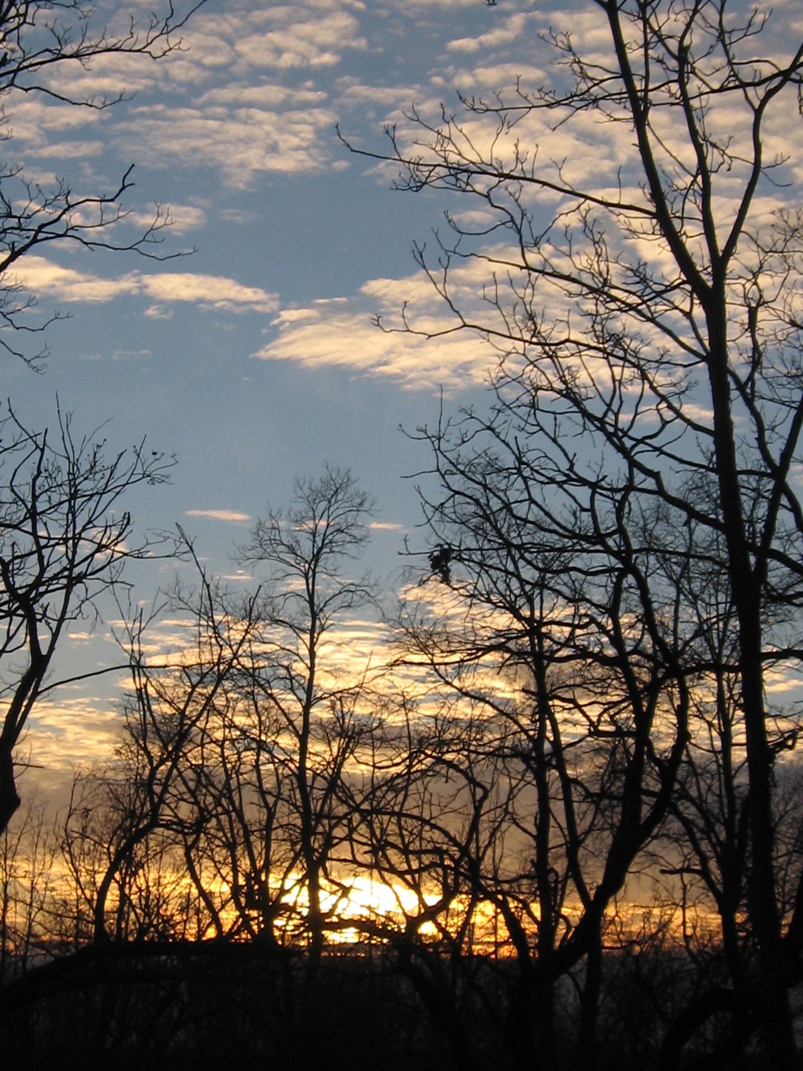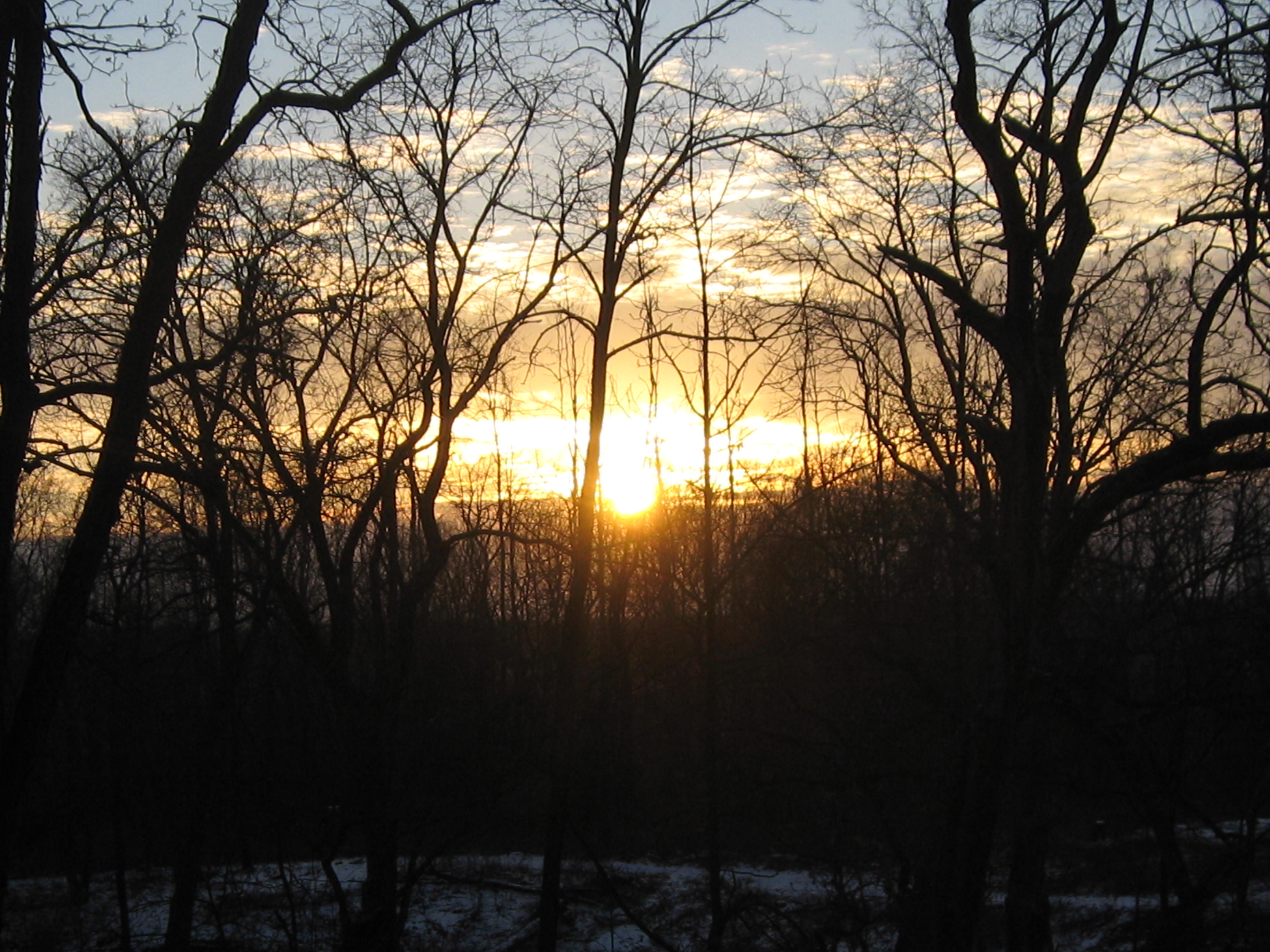 The sun set early behind a solid bank of clouds and I took these pictures on the high ground at the South end of the trail that we recently cut and burned.