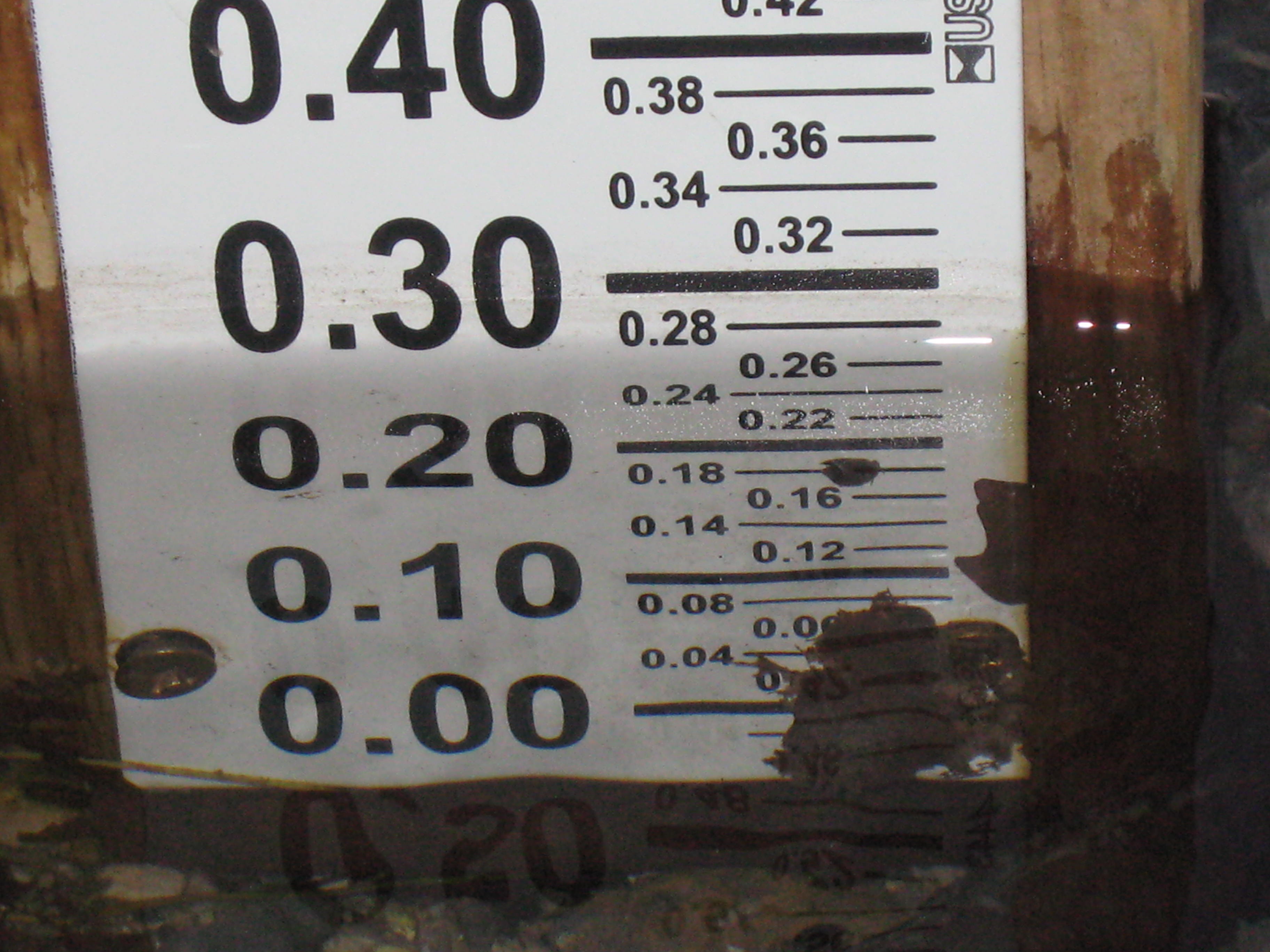 The water level is holding steady but it looks like there is some dirt, or possibly, damage at the base of the measuring stick. We’ll have to take a closer look next time.