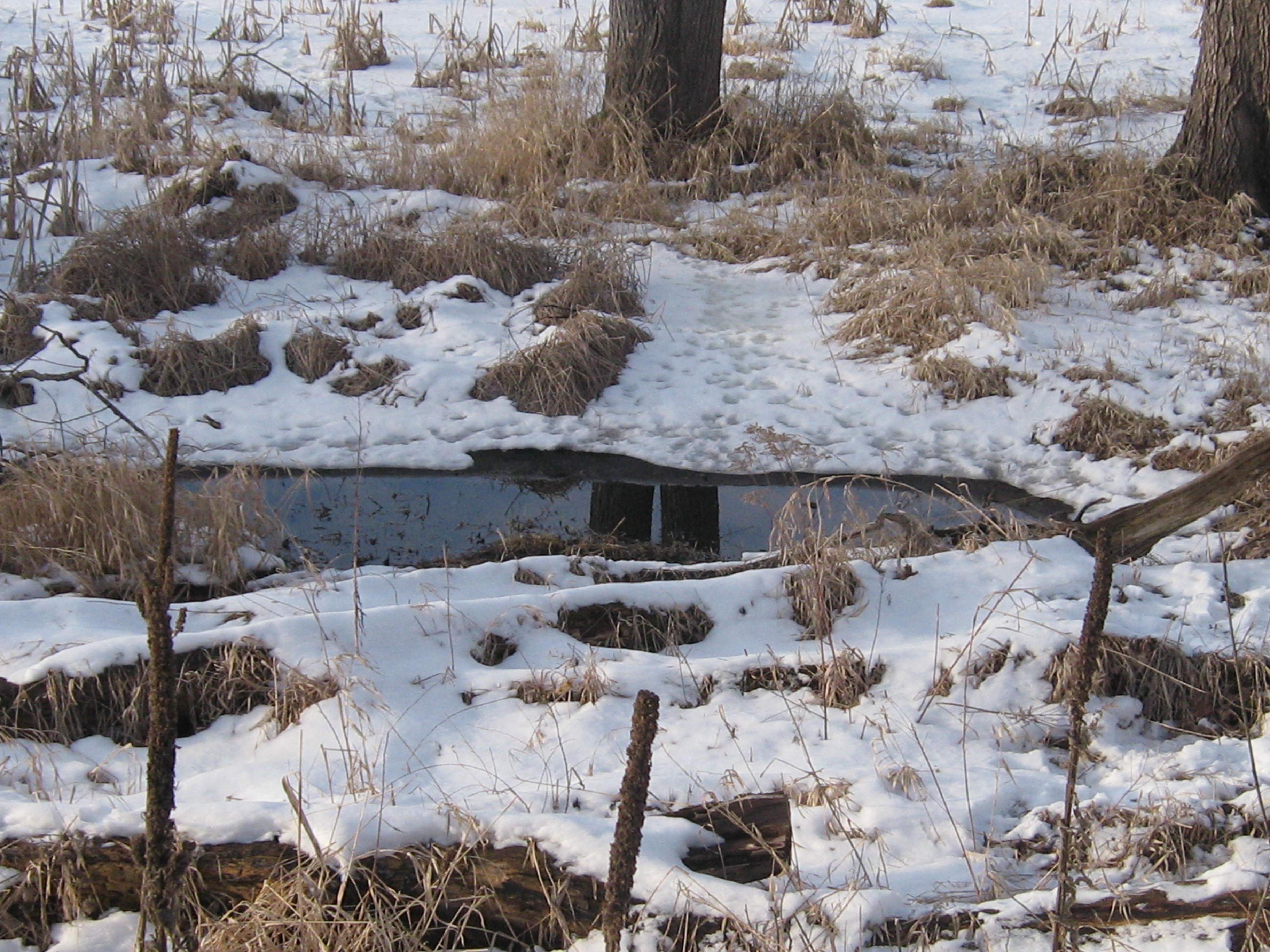 The first spring marked #1 on the map above is just east of the home site near the base of a huge willow tree.  You will often catch a glimpse of a great horned owl here.