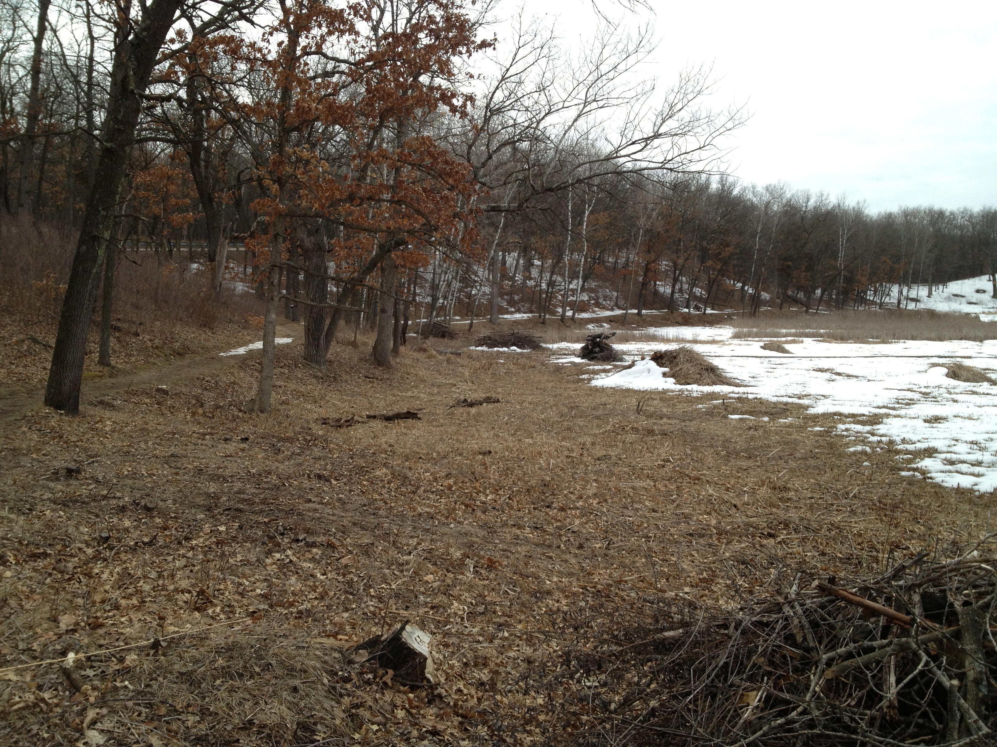 I was really happy to see Rich coming down the trail just as I was lighting the first couple of piles. We almost had to call tech support to figure out how to attach the suspension system on the inside of his brand new fire helmet. Thanks again to the Kettle Moraine Natural History Association for funding our gear!