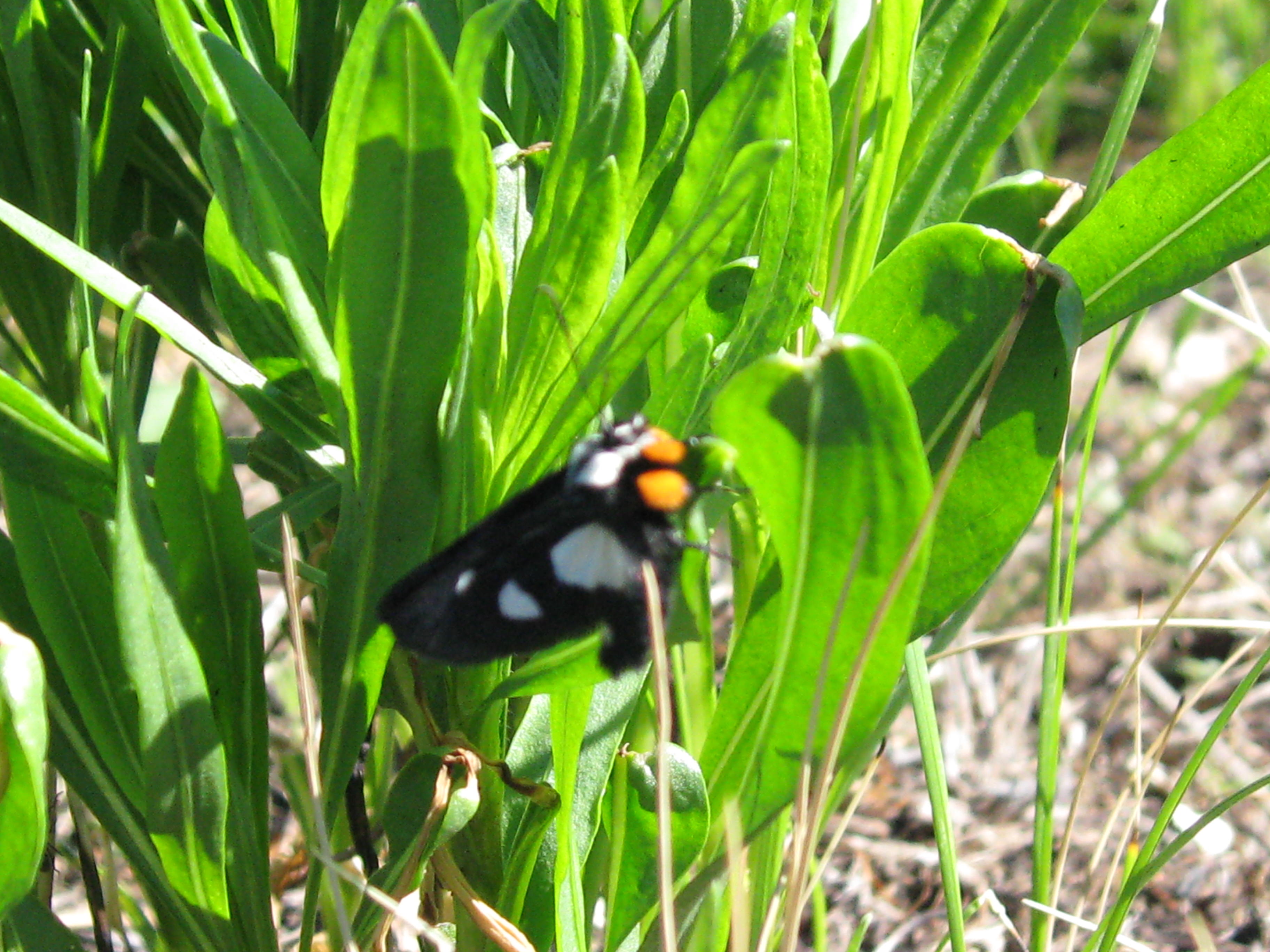 As I was spraying spotted knapweed at the sand prarie, I noticed this attractive White Spotted Sable Moth.