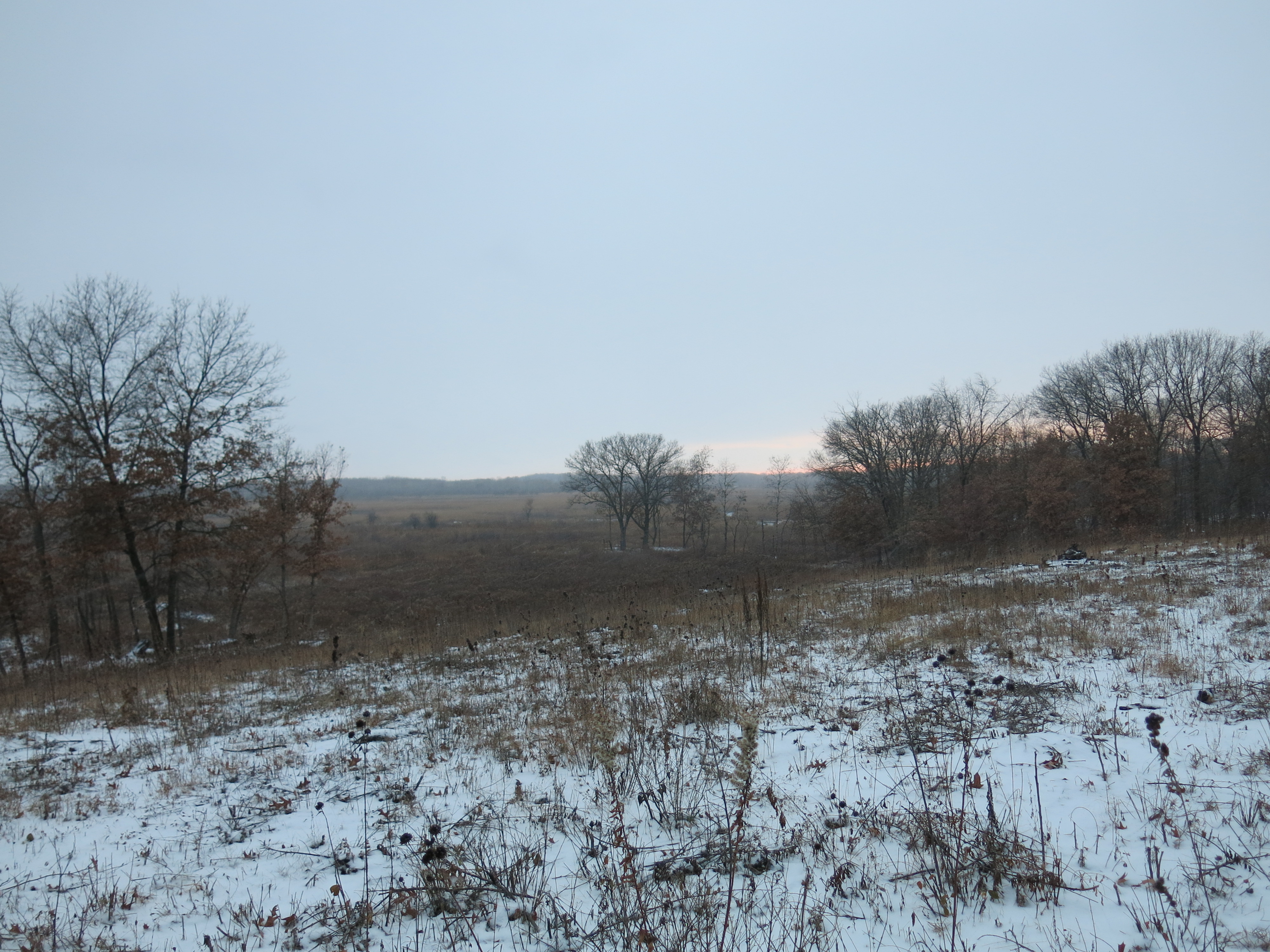 Later, Pati came out to join me for a walk just in time for a snow squall. It dawned on me that tomorrow would be a great day to start burning brush piles.