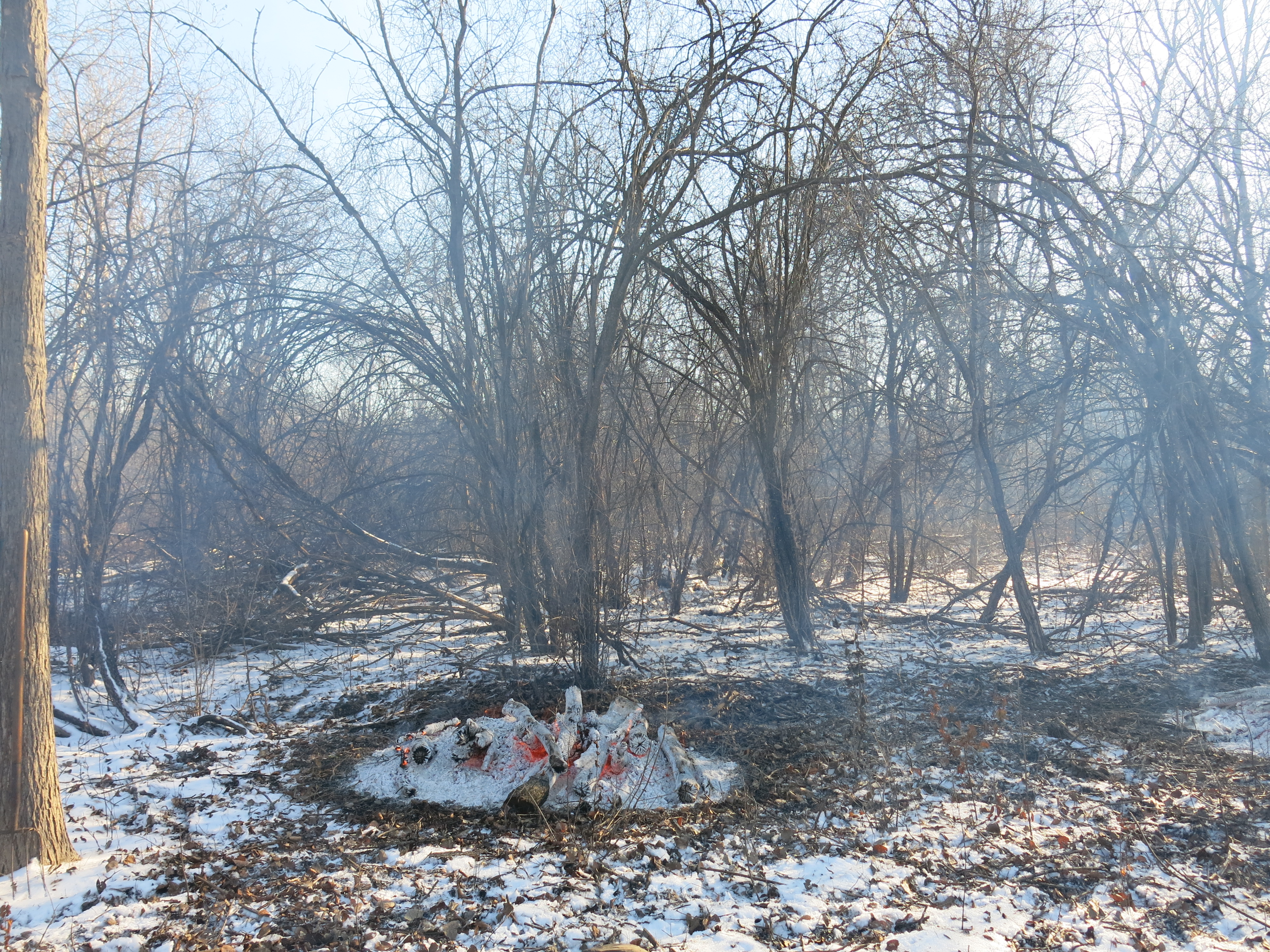 Note the buckthorn crowding around the burning piles.