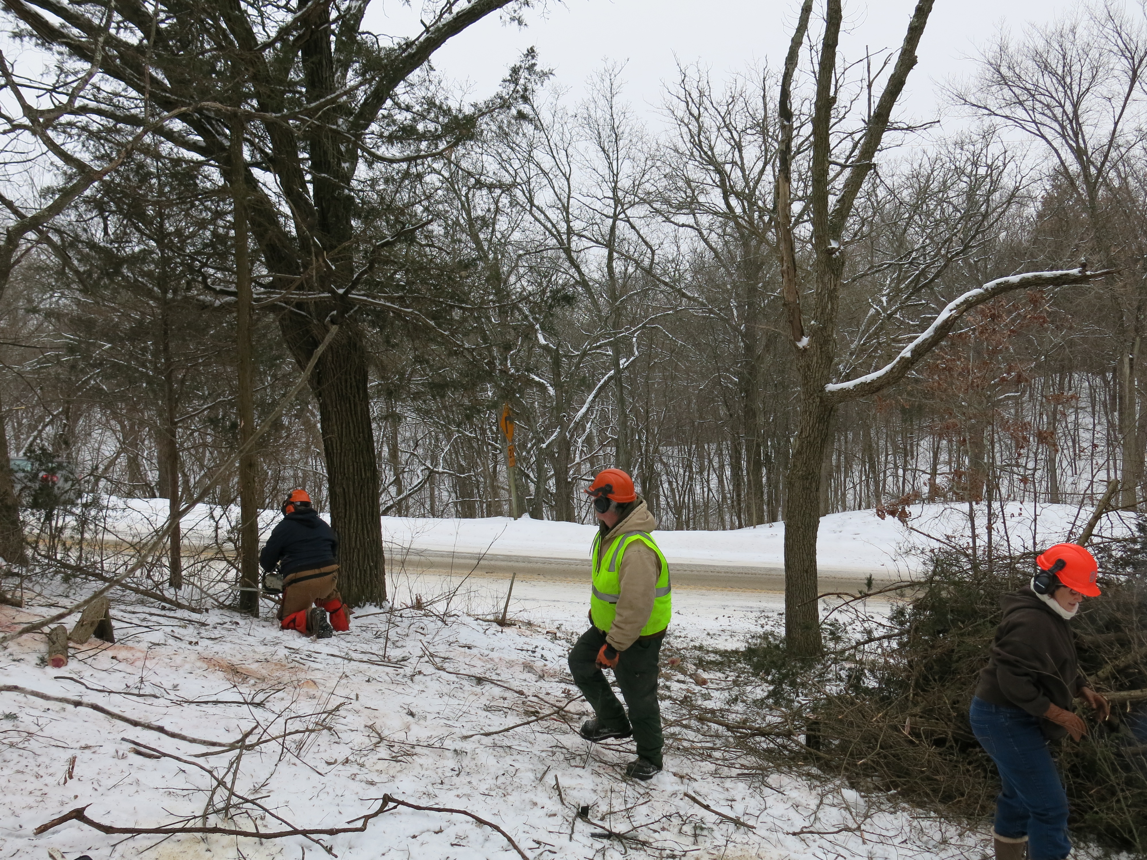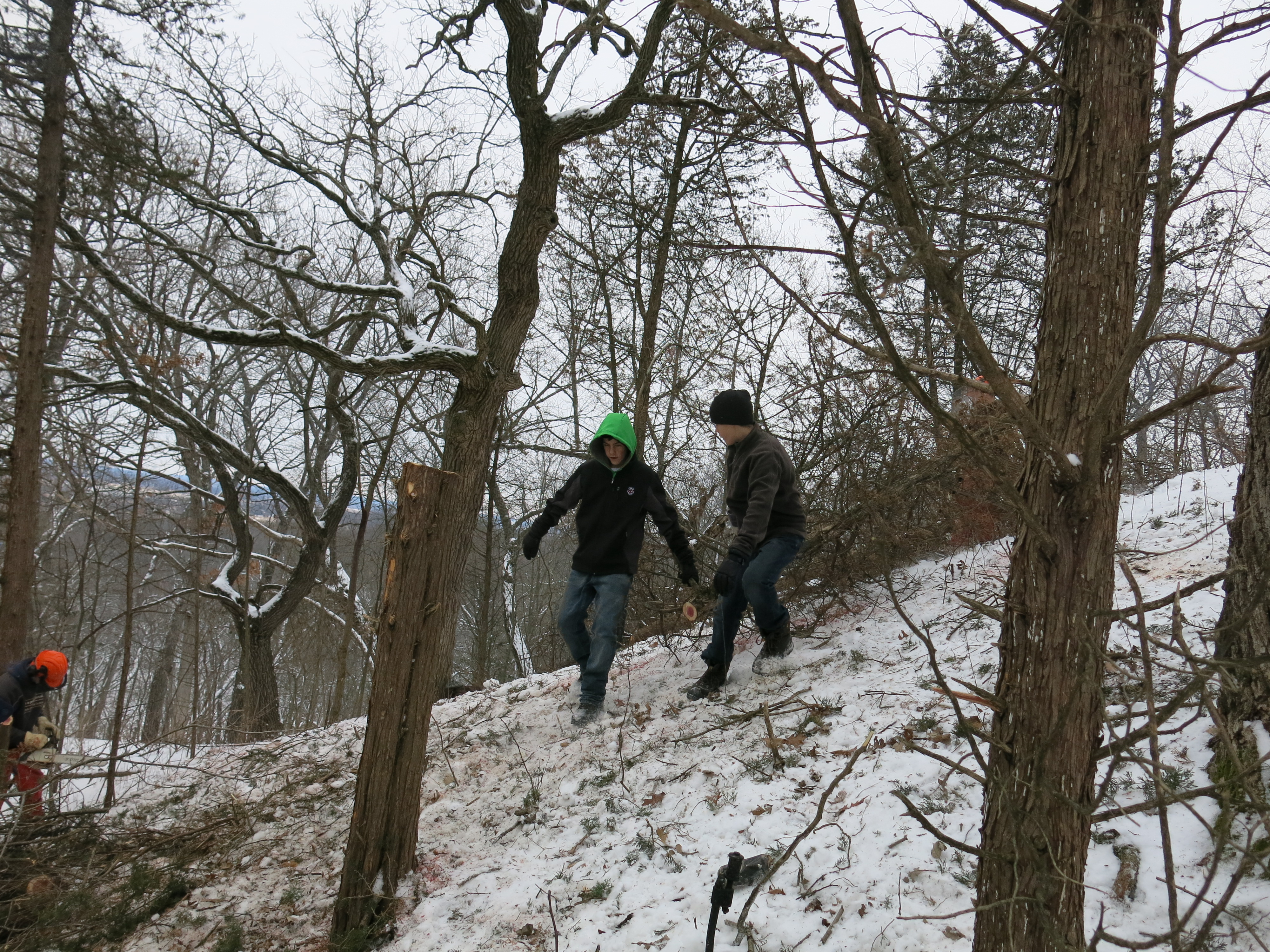 Don and Zach Kastern led the team at the base of the hill and they had some challenges getting the red cedar out from under telephone lines.