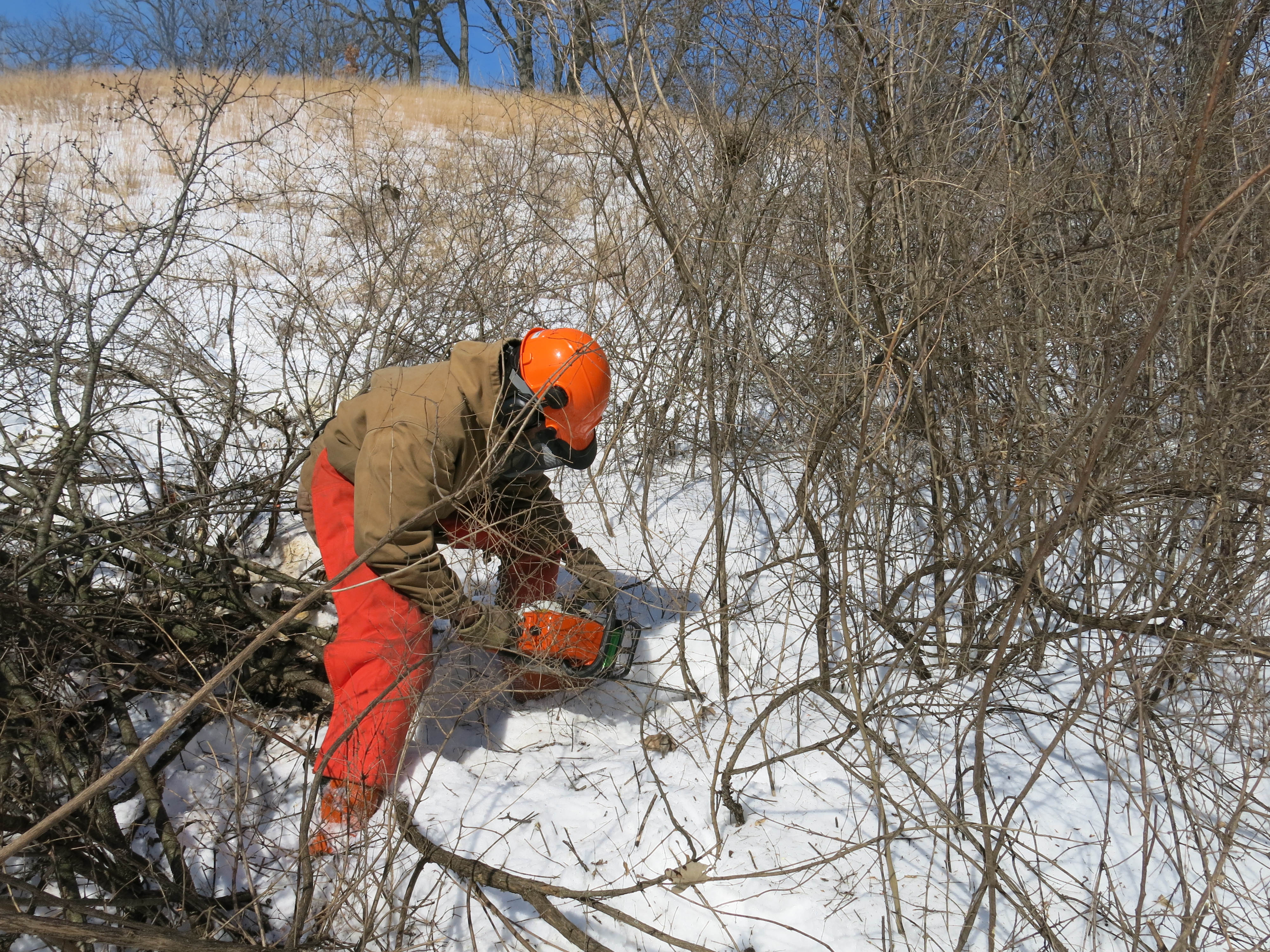 Herb Sharpless, with the Kettle Moraine Land Trust, led another crew working farther north along the horse trail, but they were in brush so dense that I didn’t see them!
