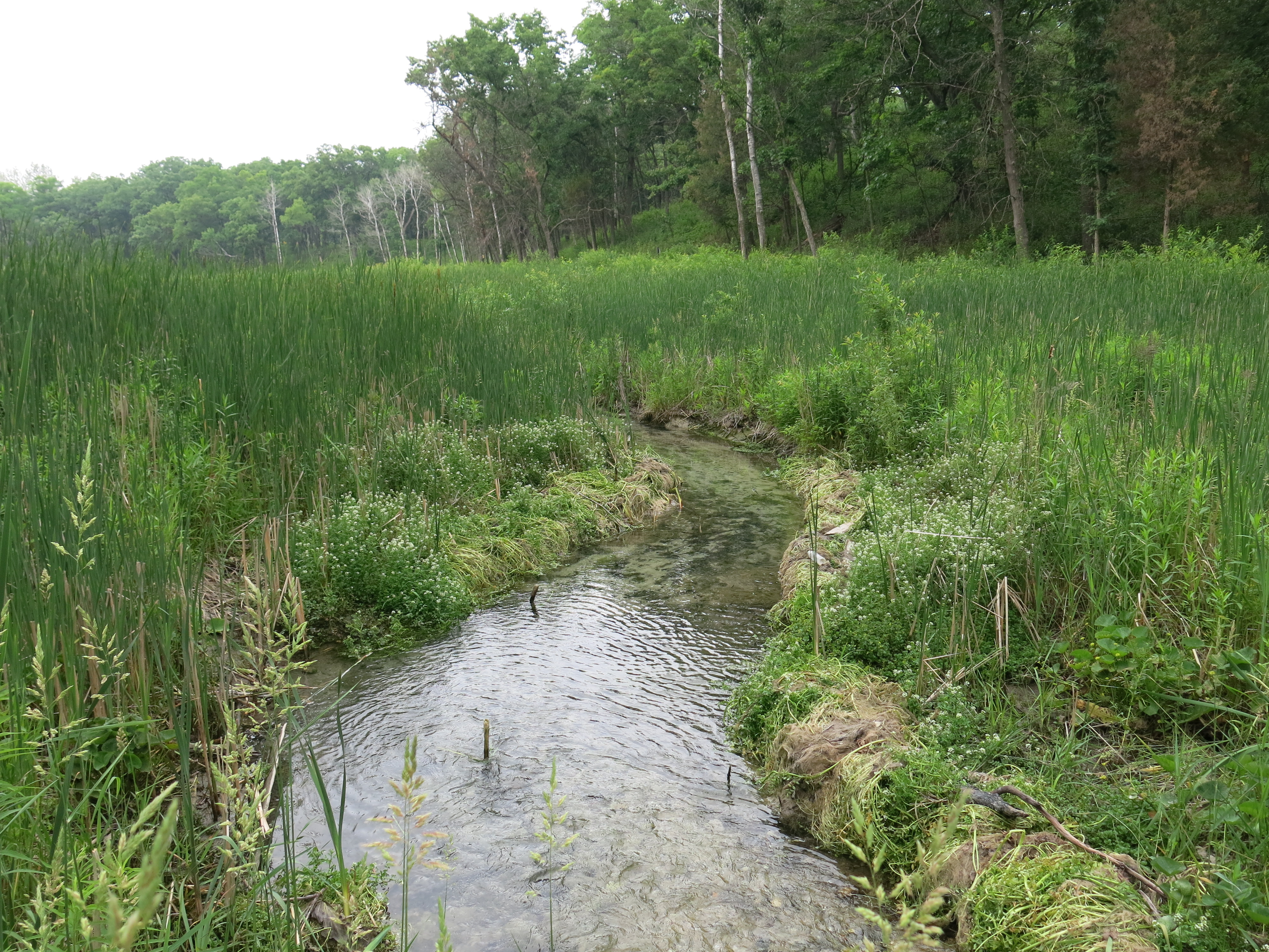 Looking downstream from the first footbridge below the Scuppernong Spring.