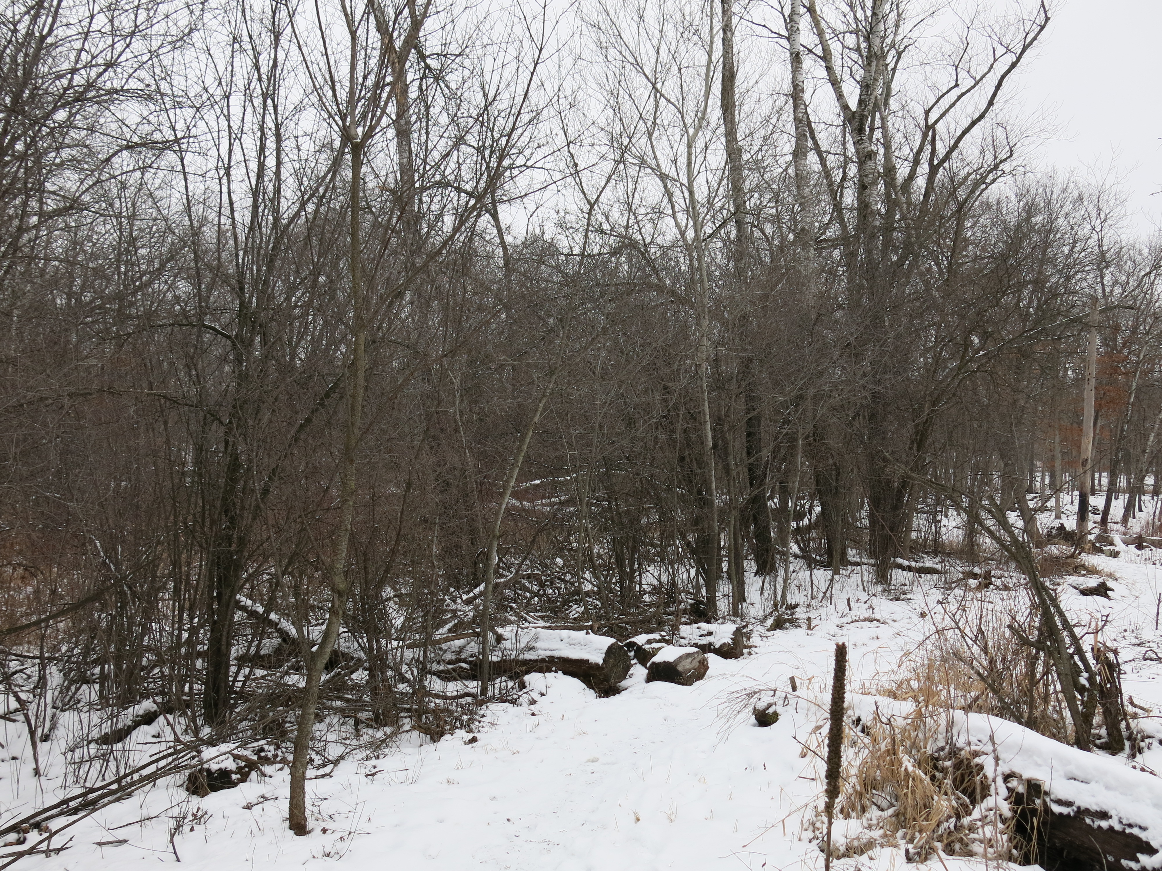 Last Thursday I was joined deep in the Buckthorn Alley by Chris Mann and the Kettle Moraine Land Stewards (Brian Brandt and Austin Avellone.)  We are clearing the north side of the trail, which, now that you can see, consists of rolling uplands interspersed with wetlands.  Here is how it looked before we got started (the views are looking east, north and southeast.)