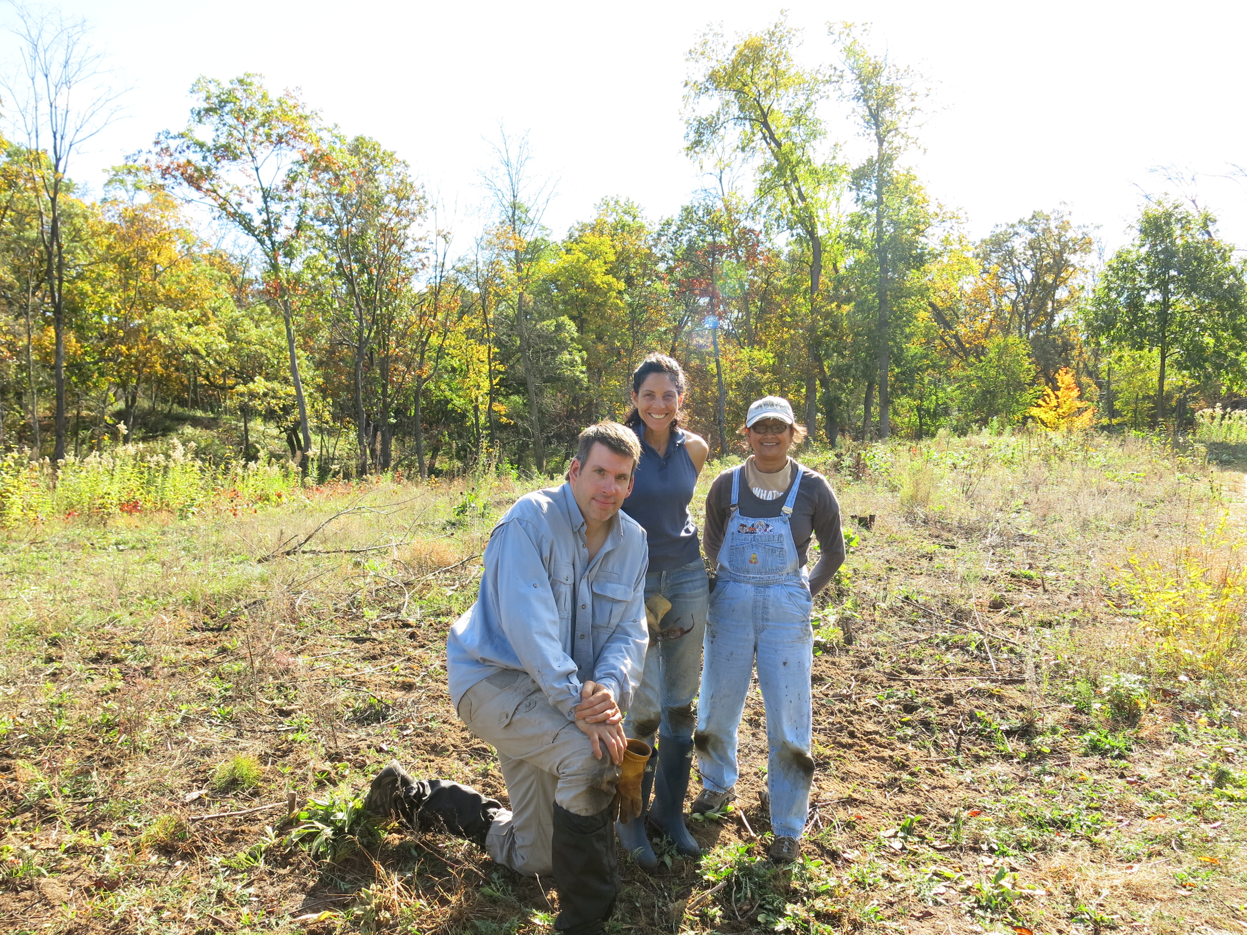 Pati (center) digging spotted knapweed with Jim Davee and Tara Fignar on the Sand Prairie.