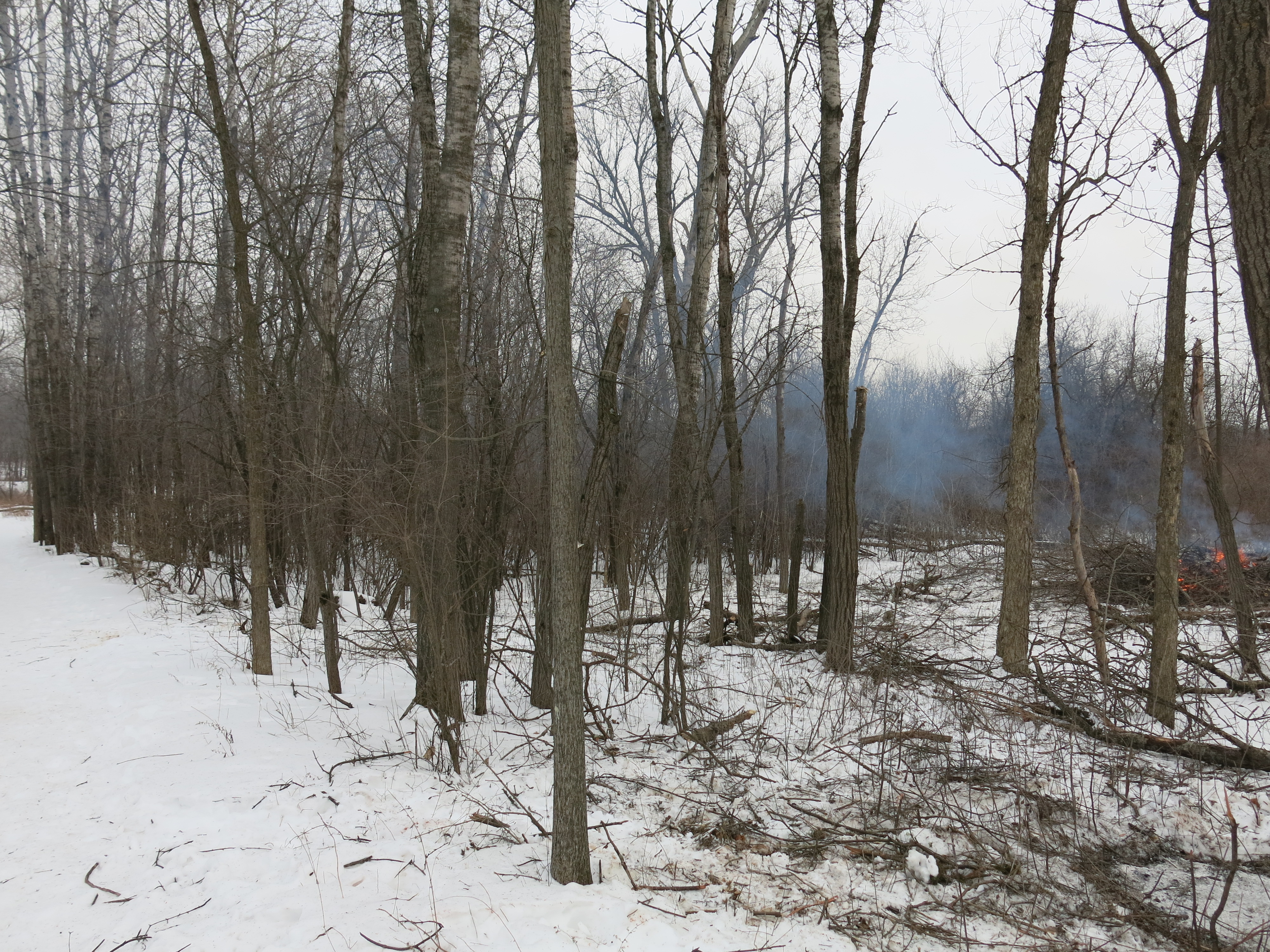 For my last hurrah on Wednesday, I was headed a bit farther east down the north end of the loop trail, almost to signpost #13 and the junction with the Cutoff trail. Along the way, at the scene of Monday’s attack, I noticed fresh stacks of buckthorn; Thanks Andy!