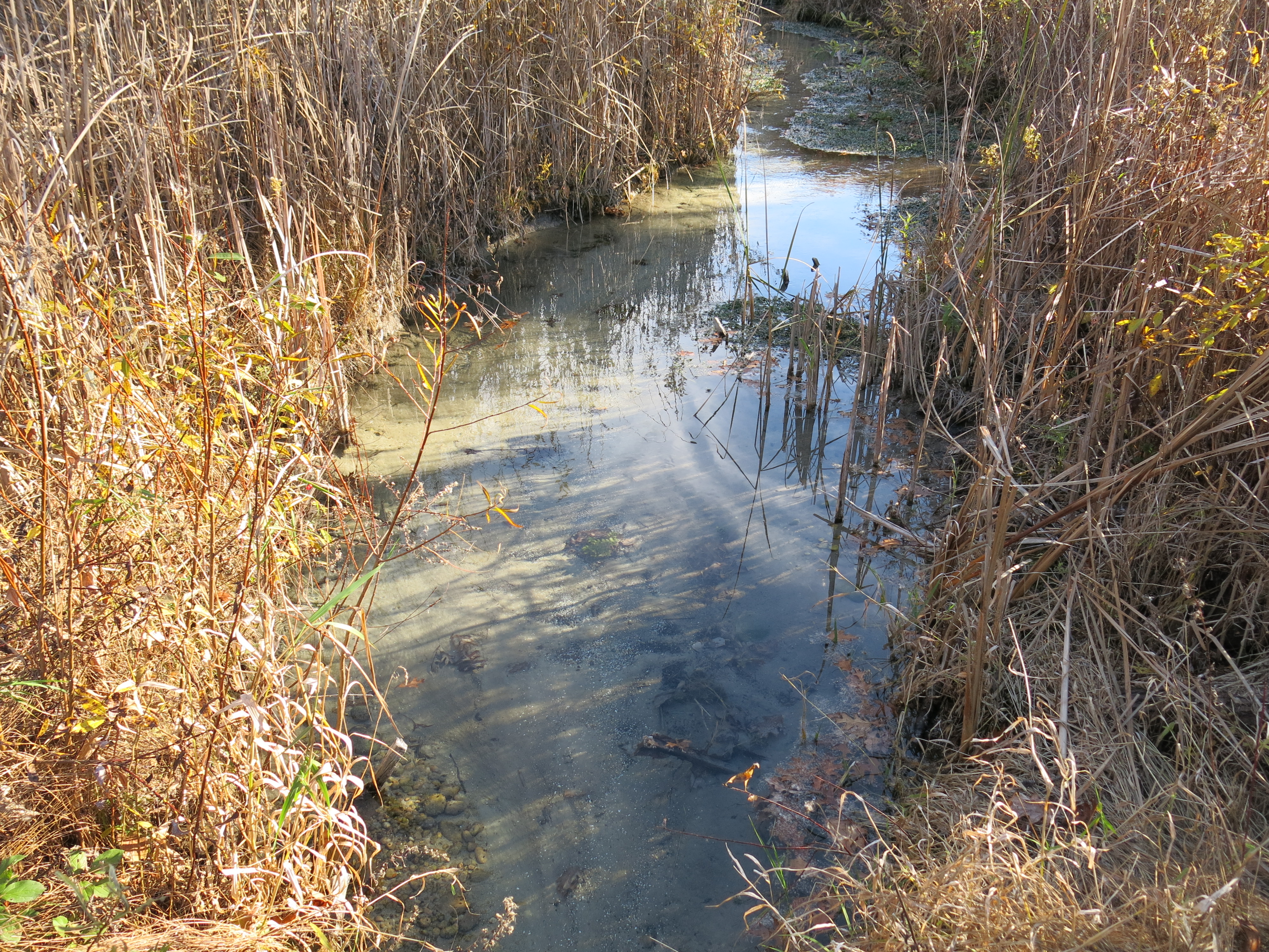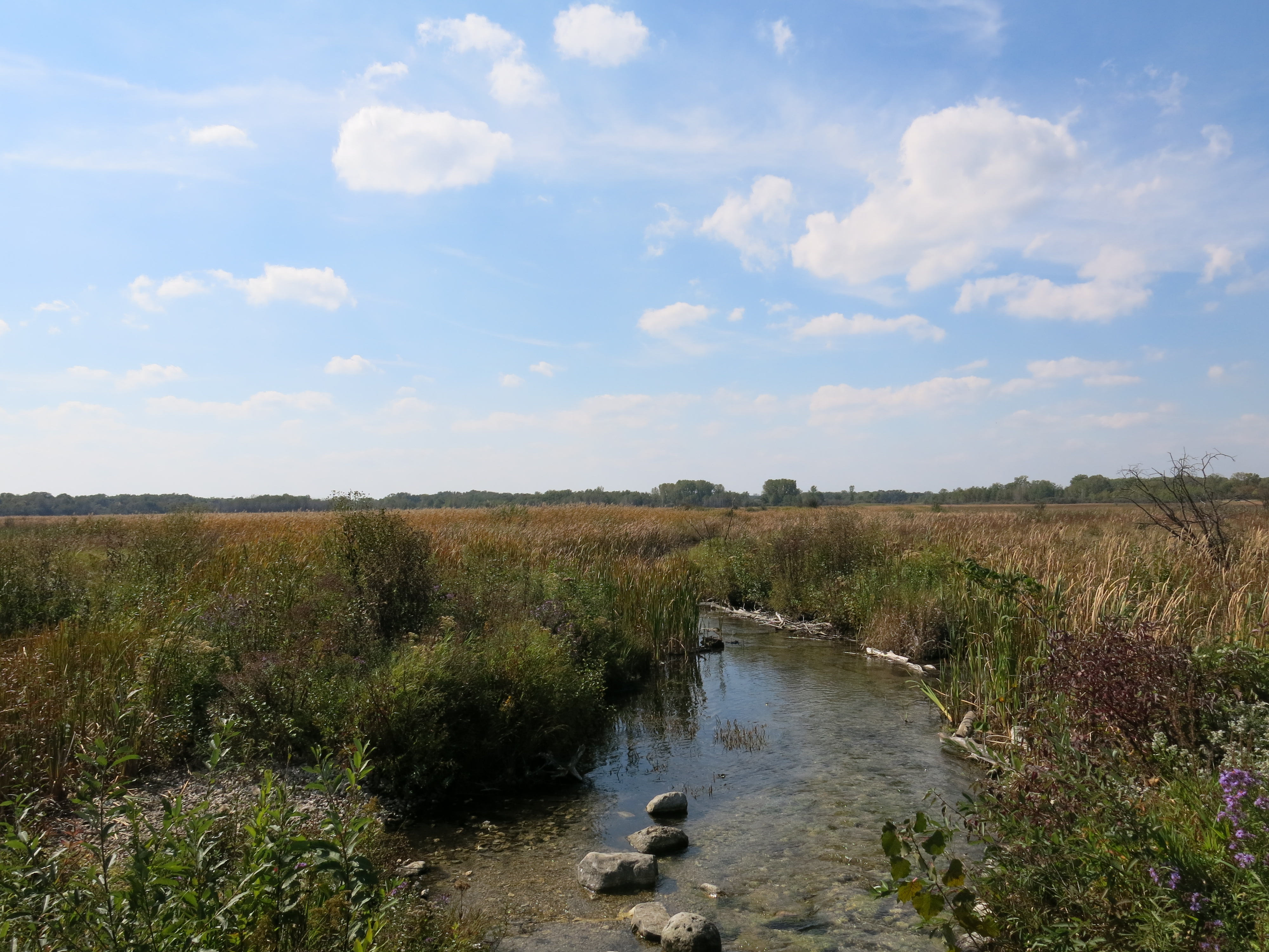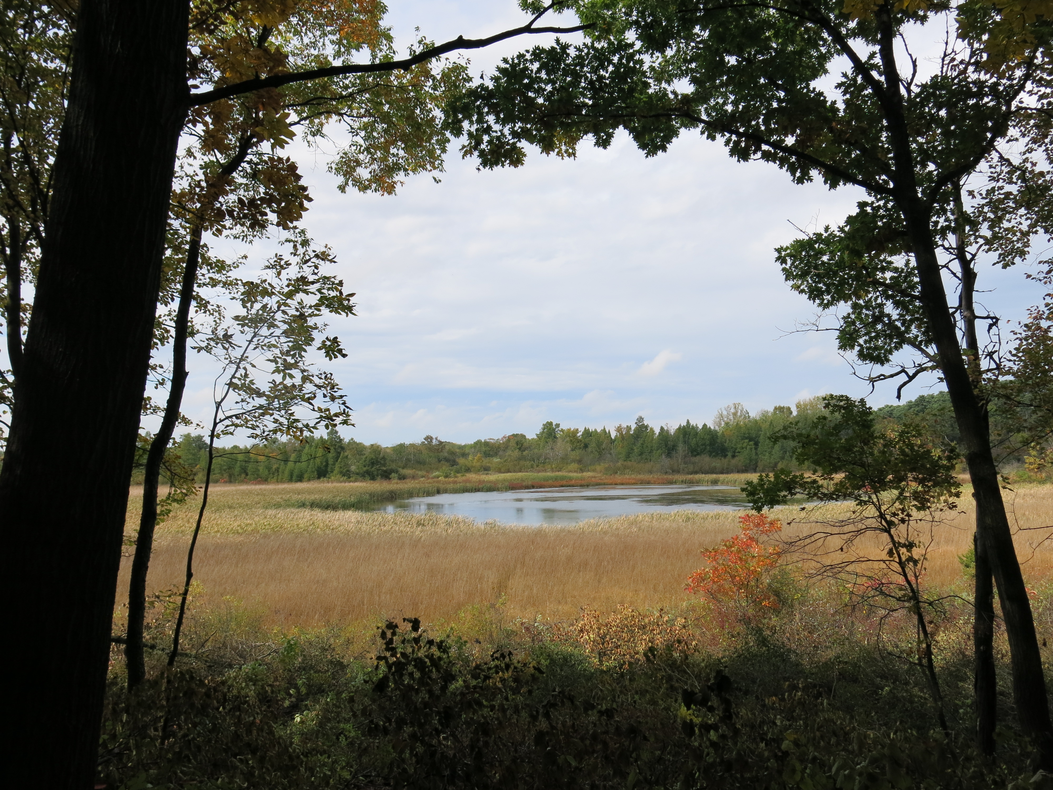 There is an embankment on the north side of the channel that extends out to where the water joins the pond that is at the center of the Ottawa Lake Fen. There are excellent views south, west and north from this vantage point.
