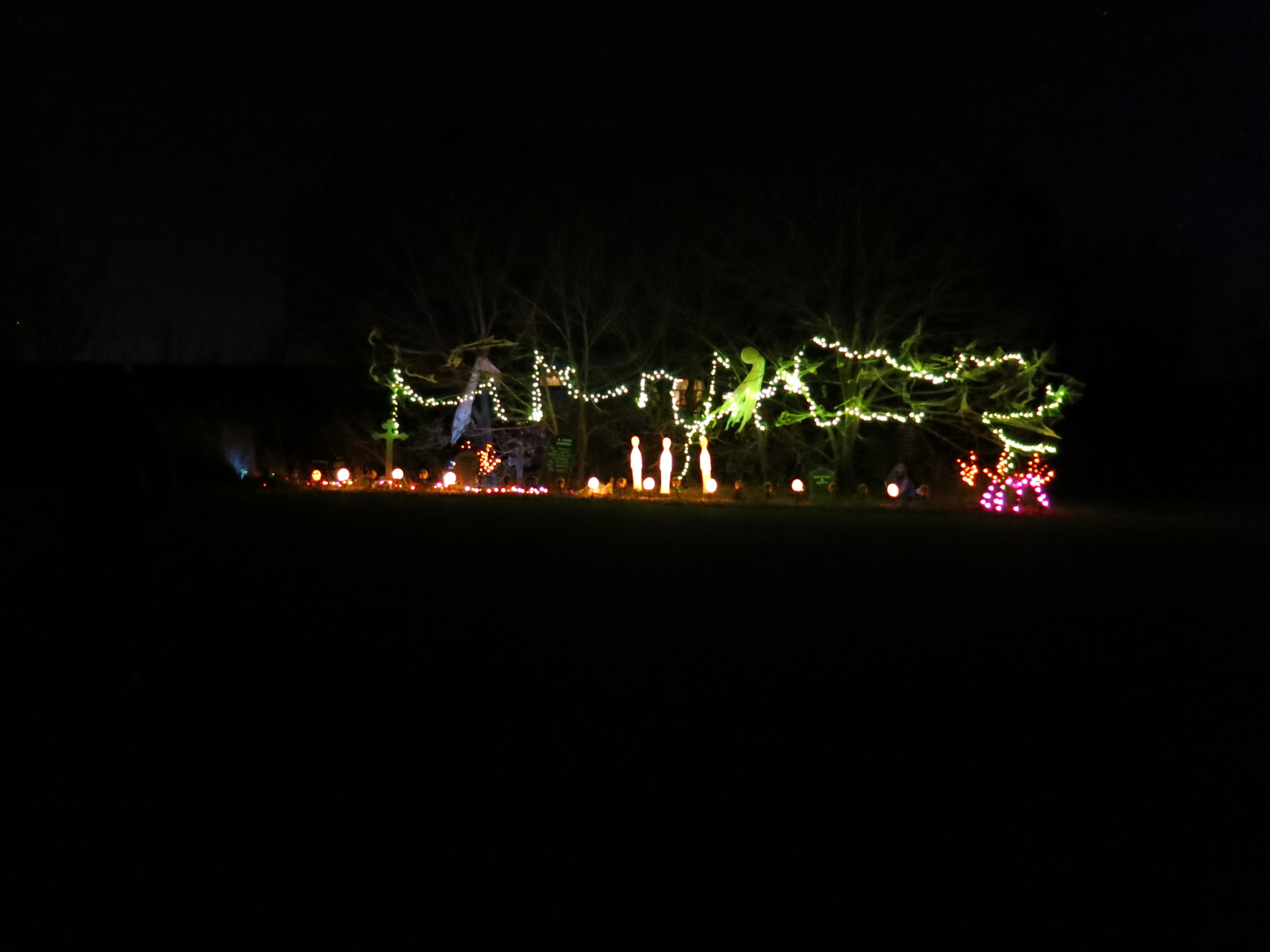 The campground was almost full Saturday evening for the climax of the festivities and a crescent moon hung over the lake. As Pati and I strolled amongst the fantasmicgorically decorated campsites, we were occasionally startled by ghoulish outbursts piercing the sweetly scented campfire smoke.