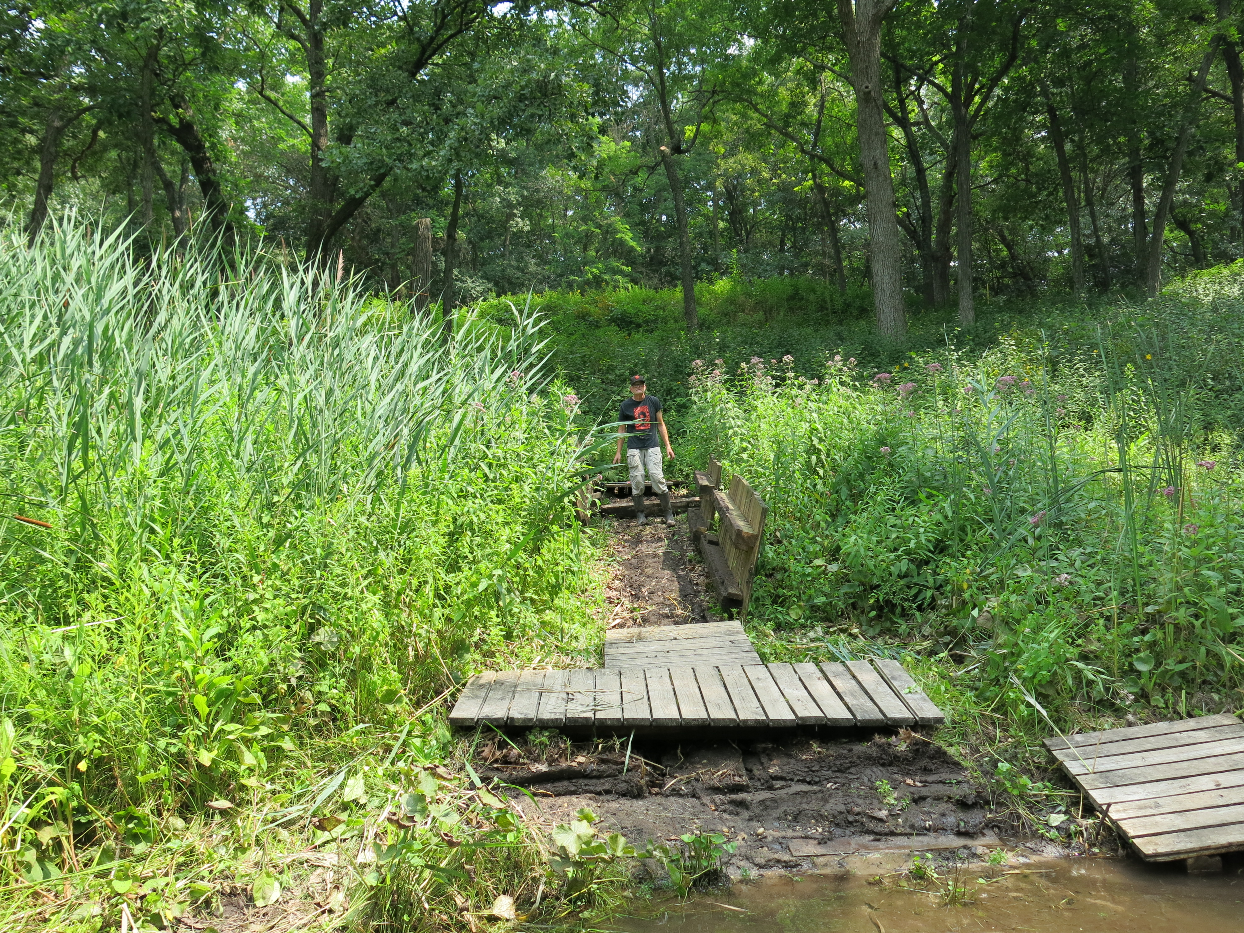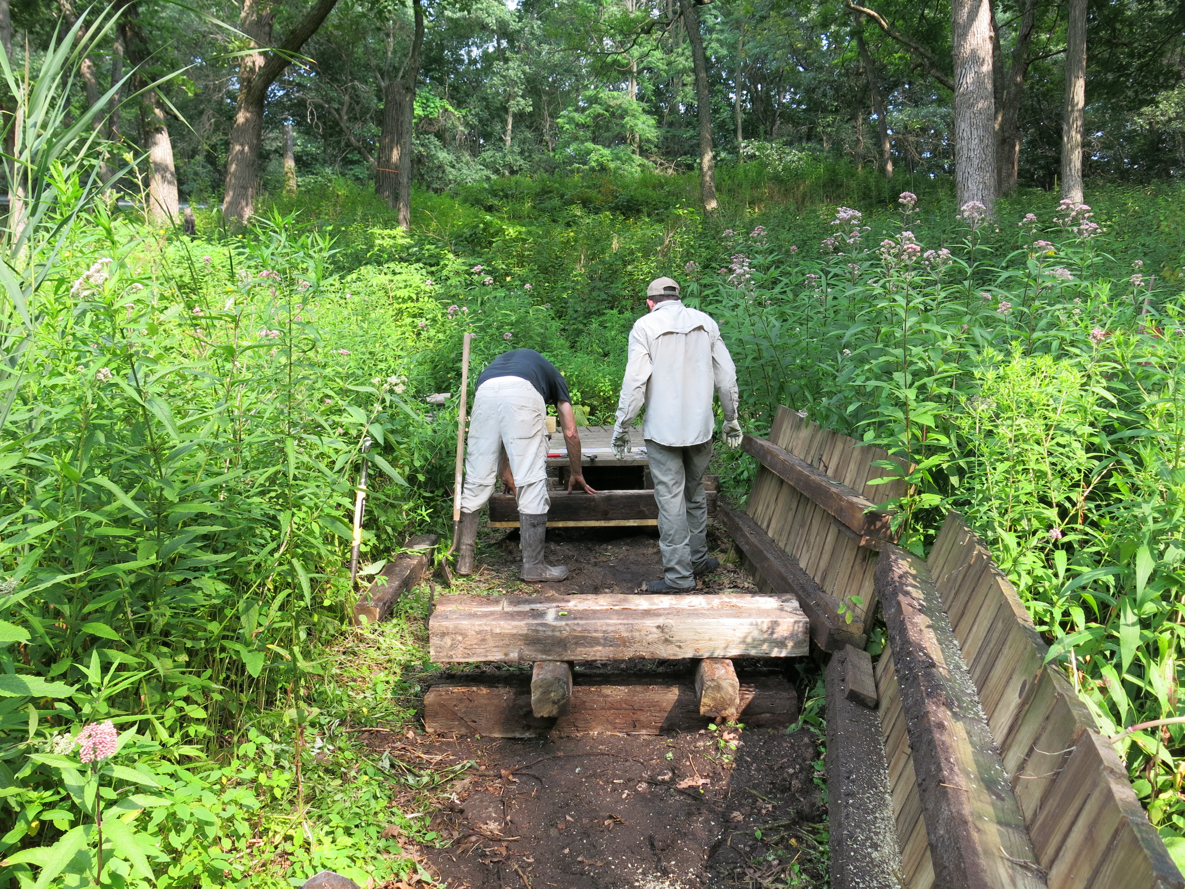 We had a date in the afternoon with Ben Johnson and another new volunteer, Ryan Wendelberger (a senior at Brookfield Central High School), to relocate two boardwalks so we shifted gears around 2:00pm. Here is how it looked when we finished.