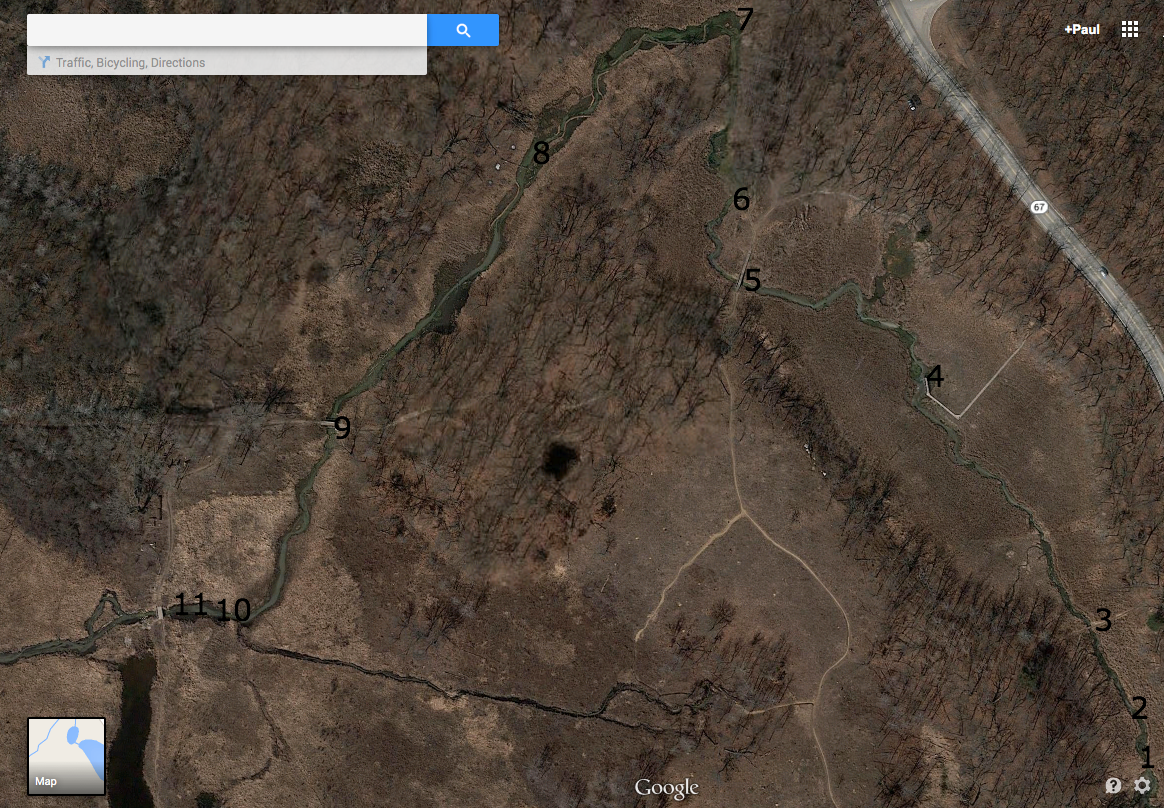 Yesterday I returned to the area and continued to open up dramatic views into, and out of, the very interior of the Scuppernong River Nature Preserve. I completed clearing the area shown below to totally open the views into the interior wetlands.