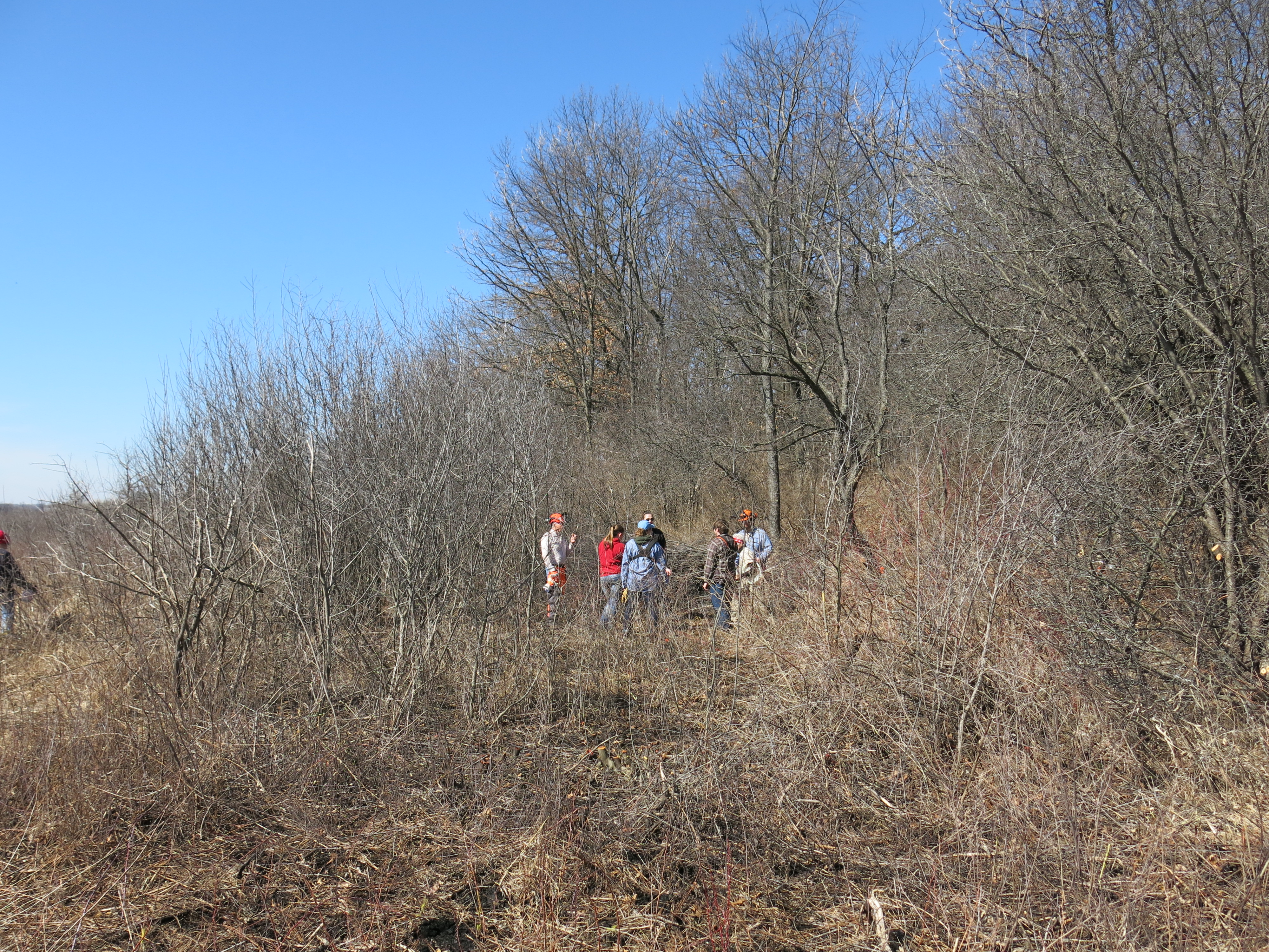 On Saturday, March 14th I joined Zach Kastern, Ginny Coburn, Jared Urban, and a great crew of SNA volunteers clearing buckthorn from the transition zone between the calcareous fen and the oak uplands at Bluff Creek West. The area we worked is at the base of the forested ridge shown in the upper right hand corner of the Bluff Creek Prescribed Burn plan shown below.