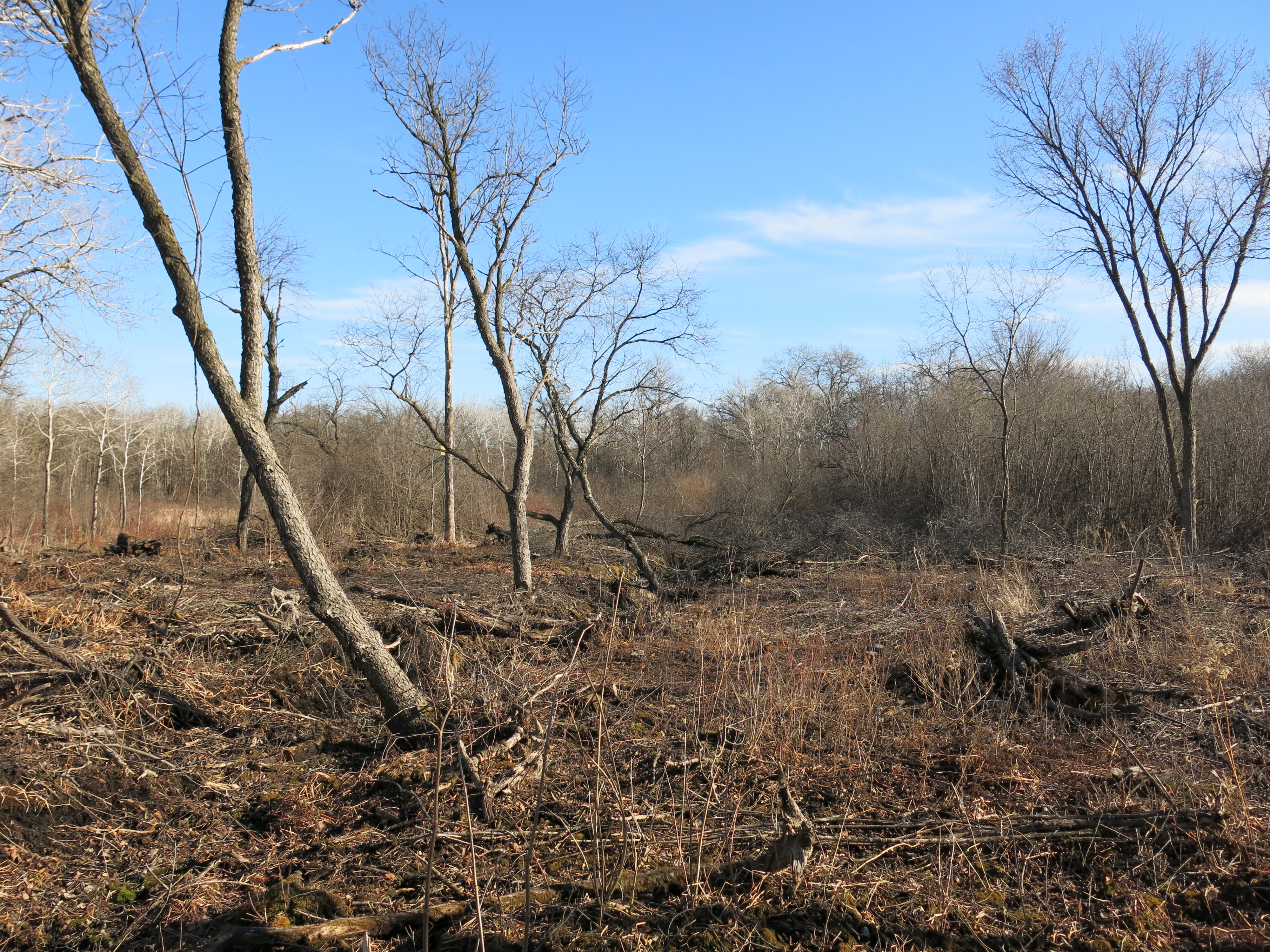 And, looking back towards the parking lot, that wall of buckthorn is not so formidable anymore.
