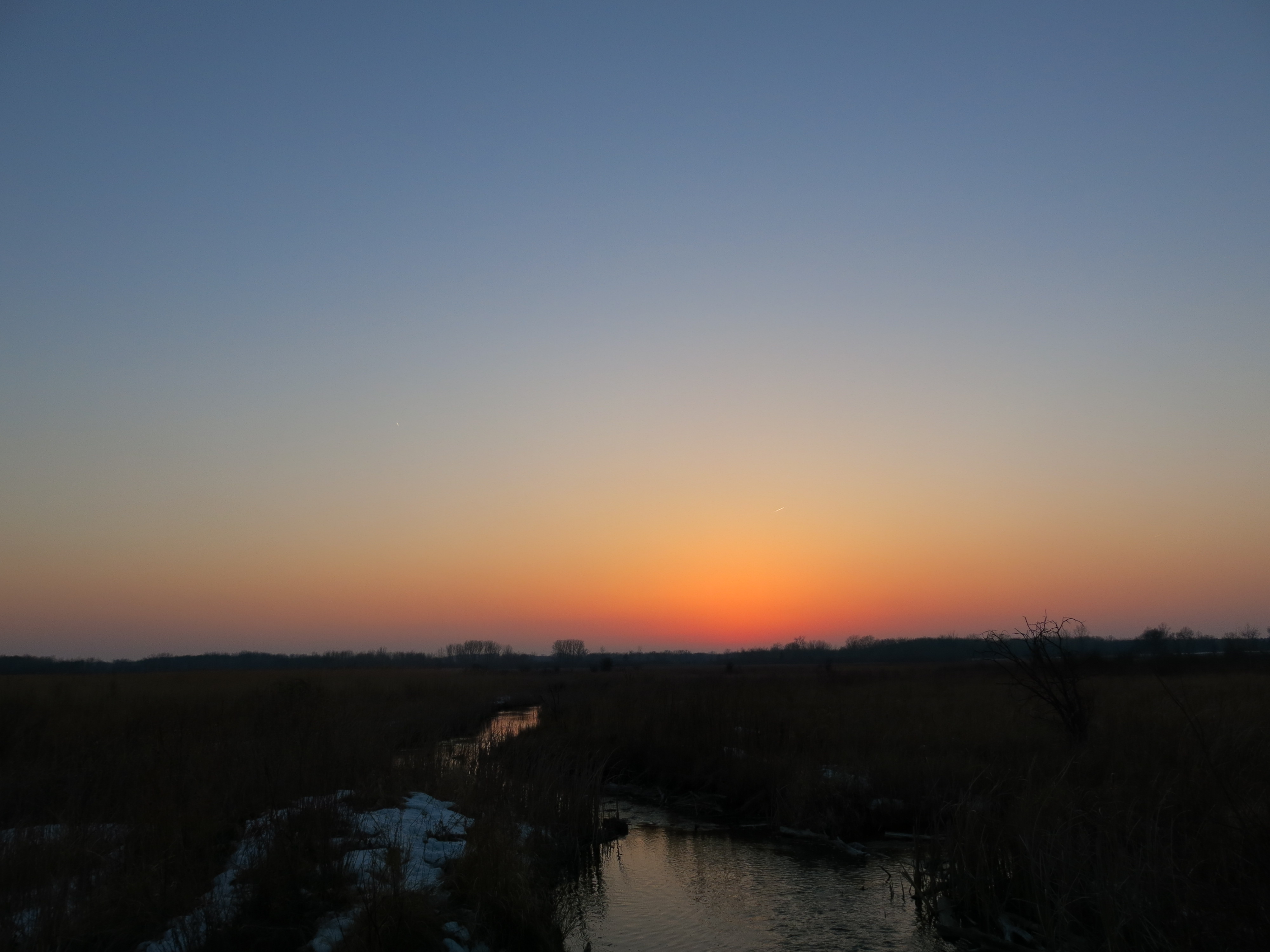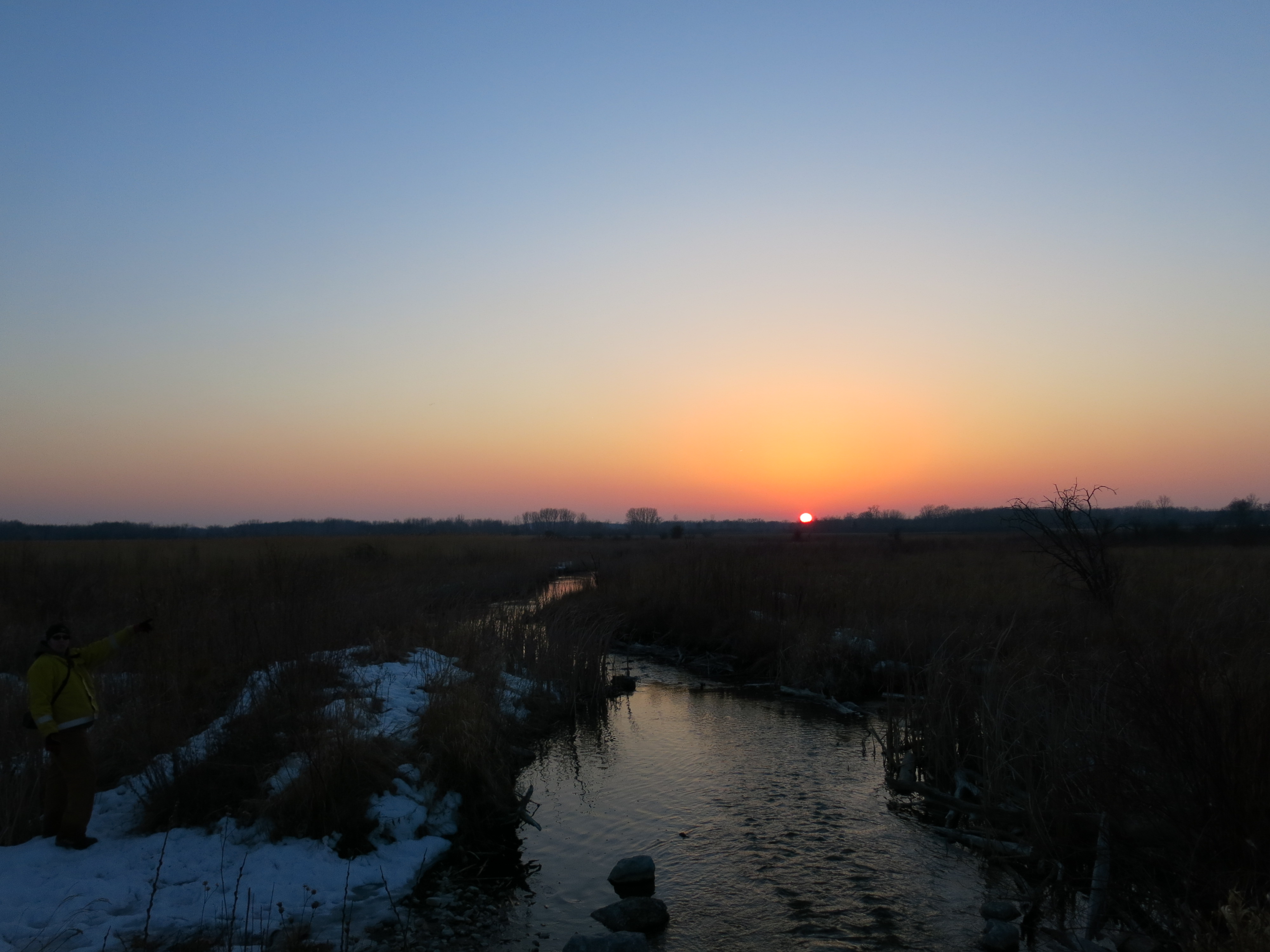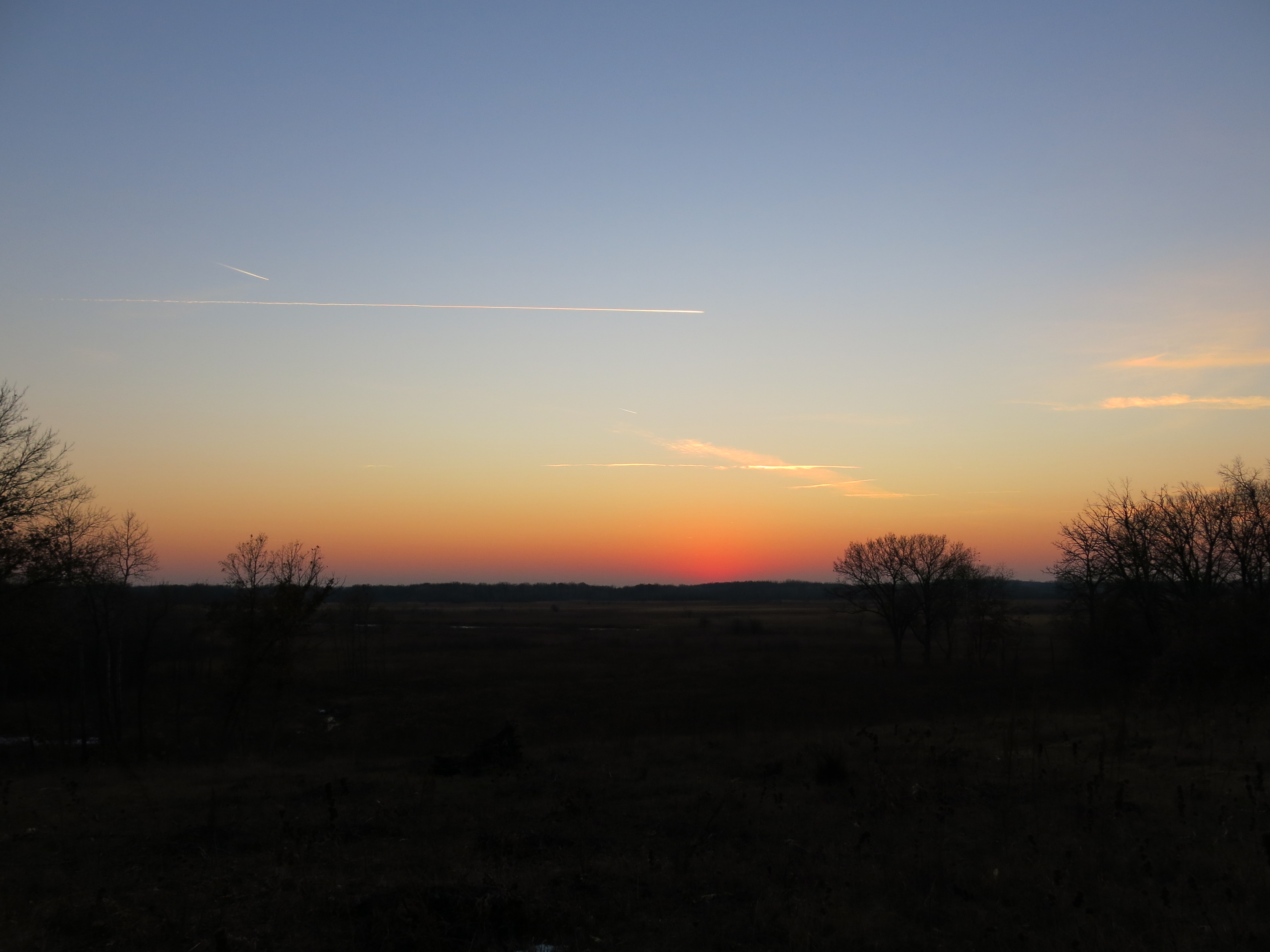 The brush pile burning season at The Springs is finally over and, unfortunately, Matt Wilhelm, a volunteer with the North Prairie Fire Department, who also works for the DNR in the Kettle Moraine State Forest–Southern Unit, had to put out the last fire. I was wandering around the sand prairie watching the sun go down, and Marty driving his skid steer loader north, home bound on Hwy 67, when I saw the lights of his 4-wheeler heading to the site where Dick Jenks, Rich Csavoy and l burned piles earlier in the day.