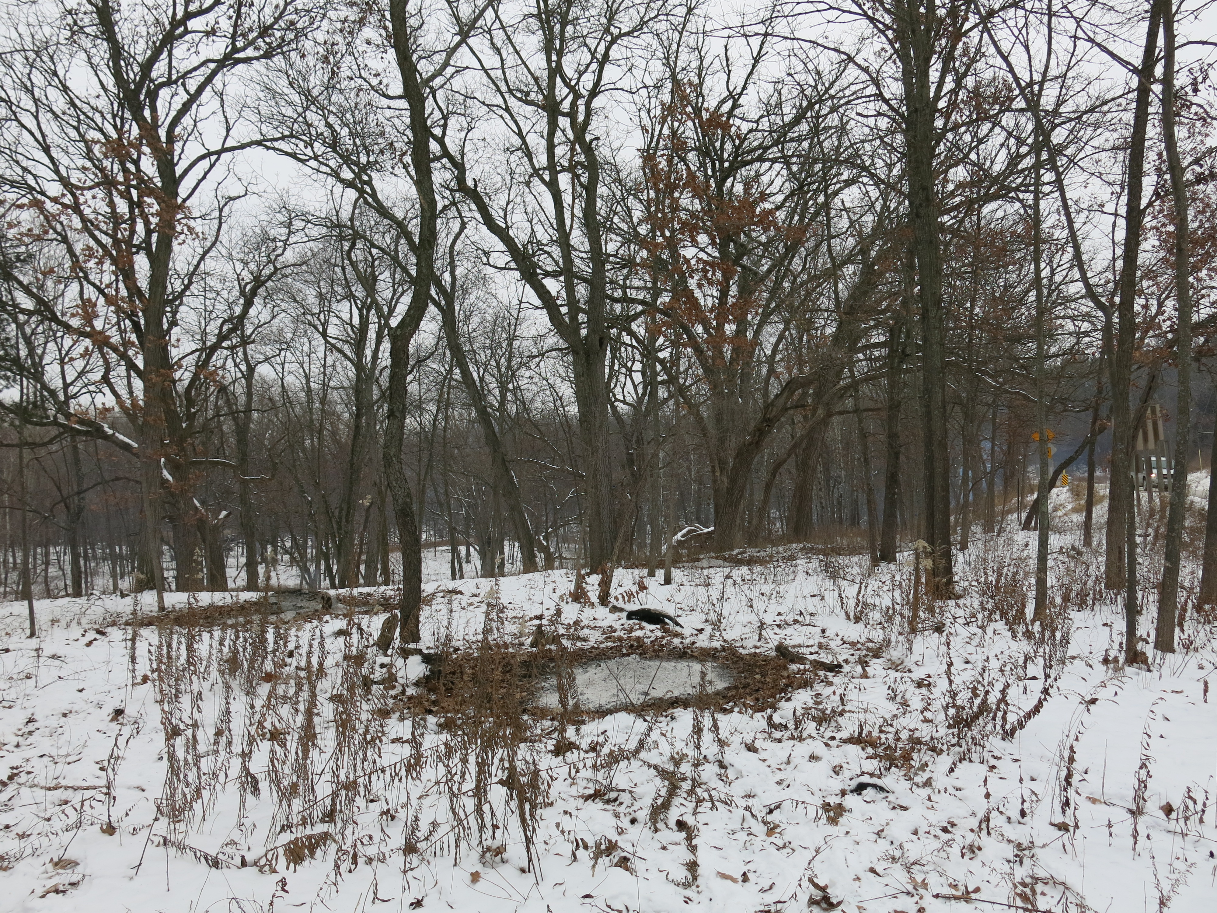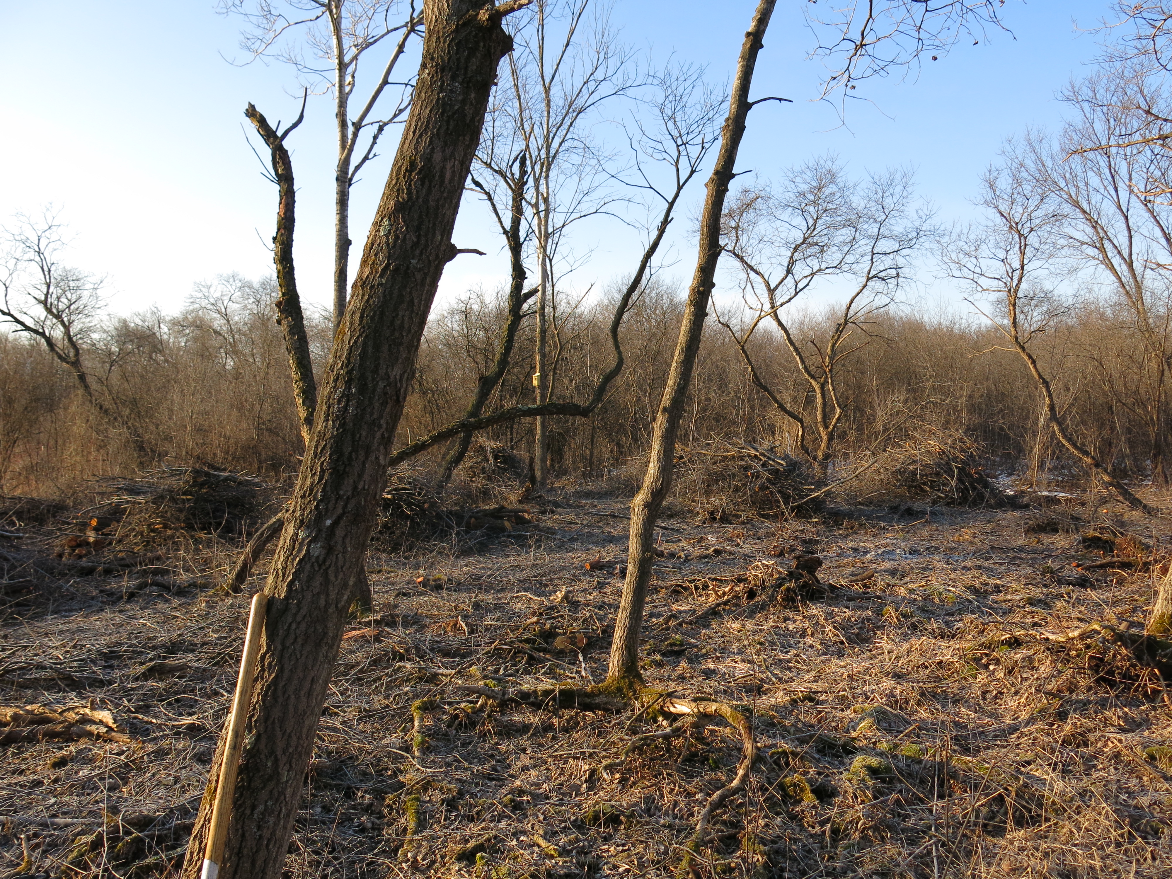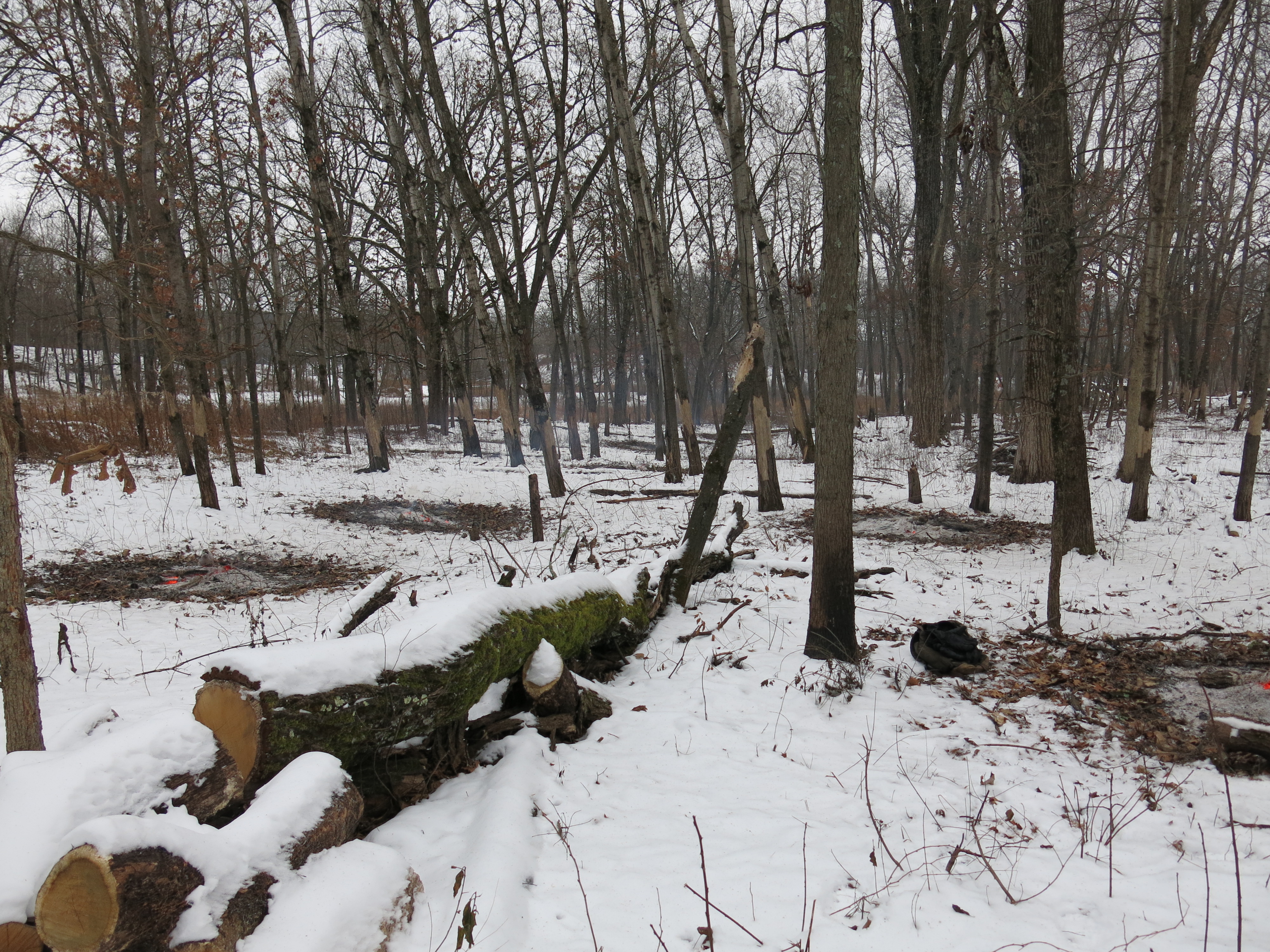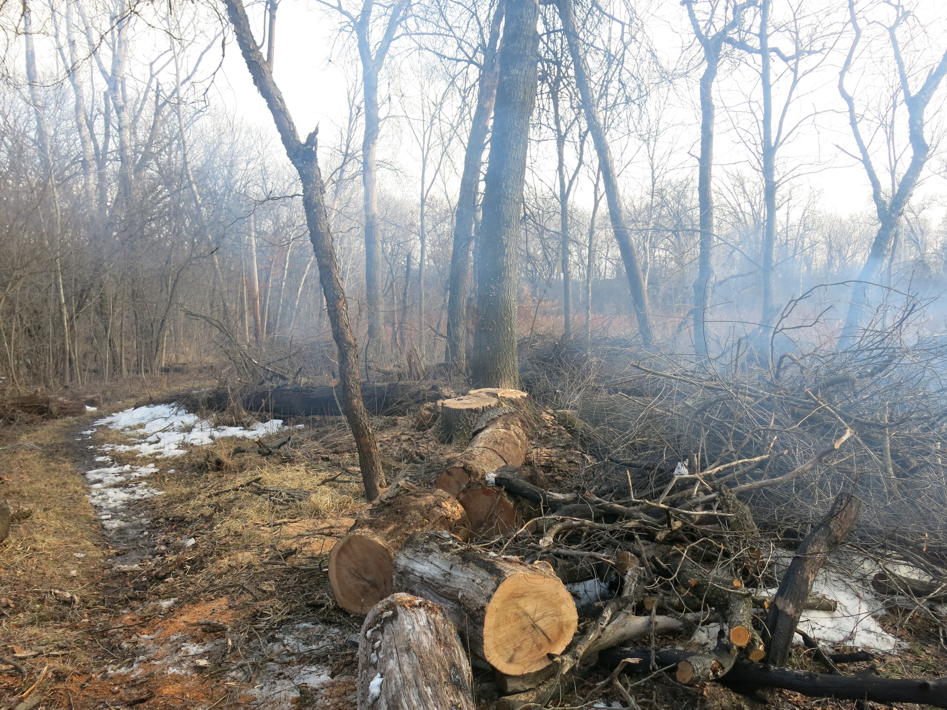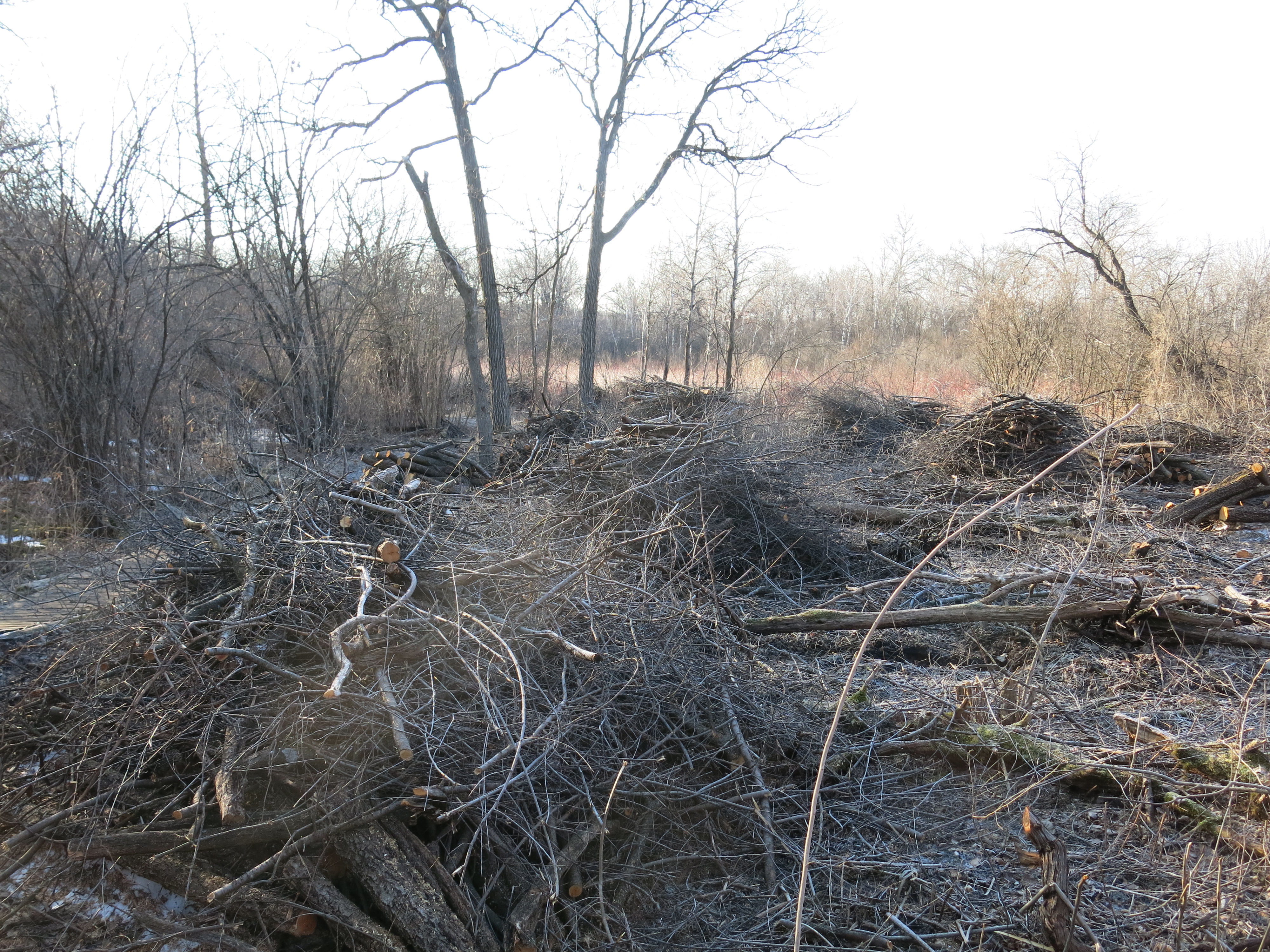 It was a calm night and there was no chance of any of the fires spreading, but the glowing embers from a few of the fires were visible from Hwy 67 and someone called it in. That prompted a call from Paul Sandgren, the Superintendent of the Kettle Moraine State Forest–Southern Unit, and he explained that the DNR was reviewing their prescribed burning procedures and that no more burning should be done until that review is complete. That’s OK with me, the conditions this past Sunday were a little dicey and we stopped lighting piles early because of our safety concerns. Thanks to Matt for completing the mop up!