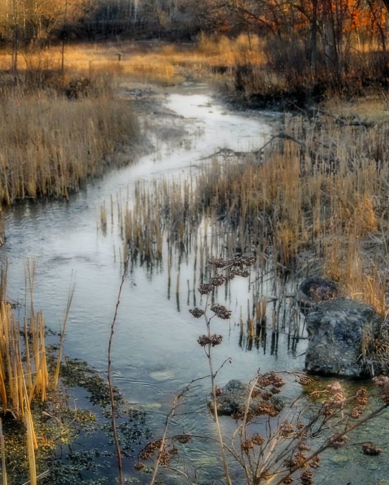 Sunday was a busy day at The Springs and I met many new and old friends. I was on my way to clear a large red oak that had fallen across the trail near the Emerald Springs (thanks to John Hrobar for notifying me!) when I met Lester Crisman. Check out his photos, including this beautiful shot of the river just upstream from the gaging station bridge.
