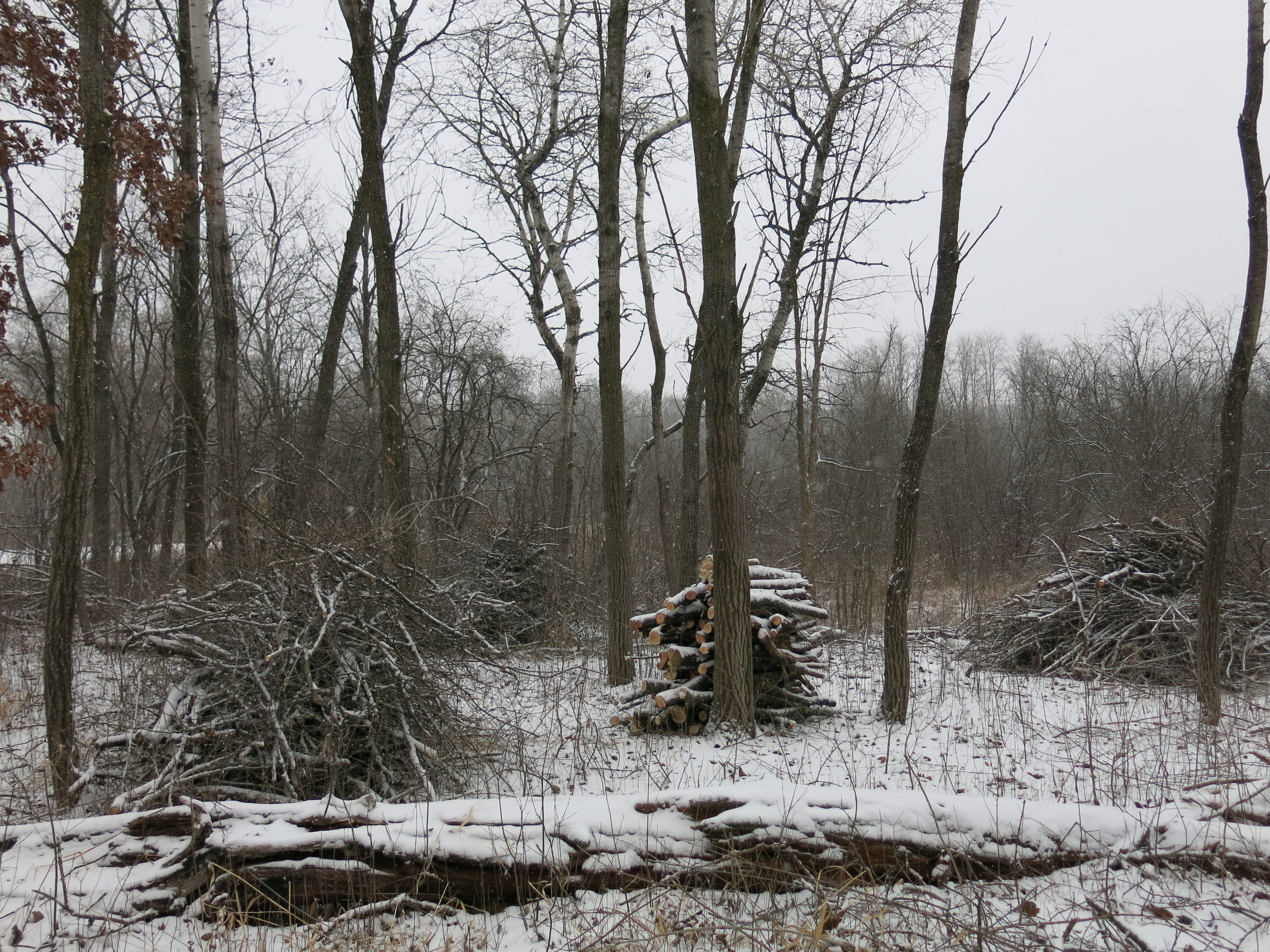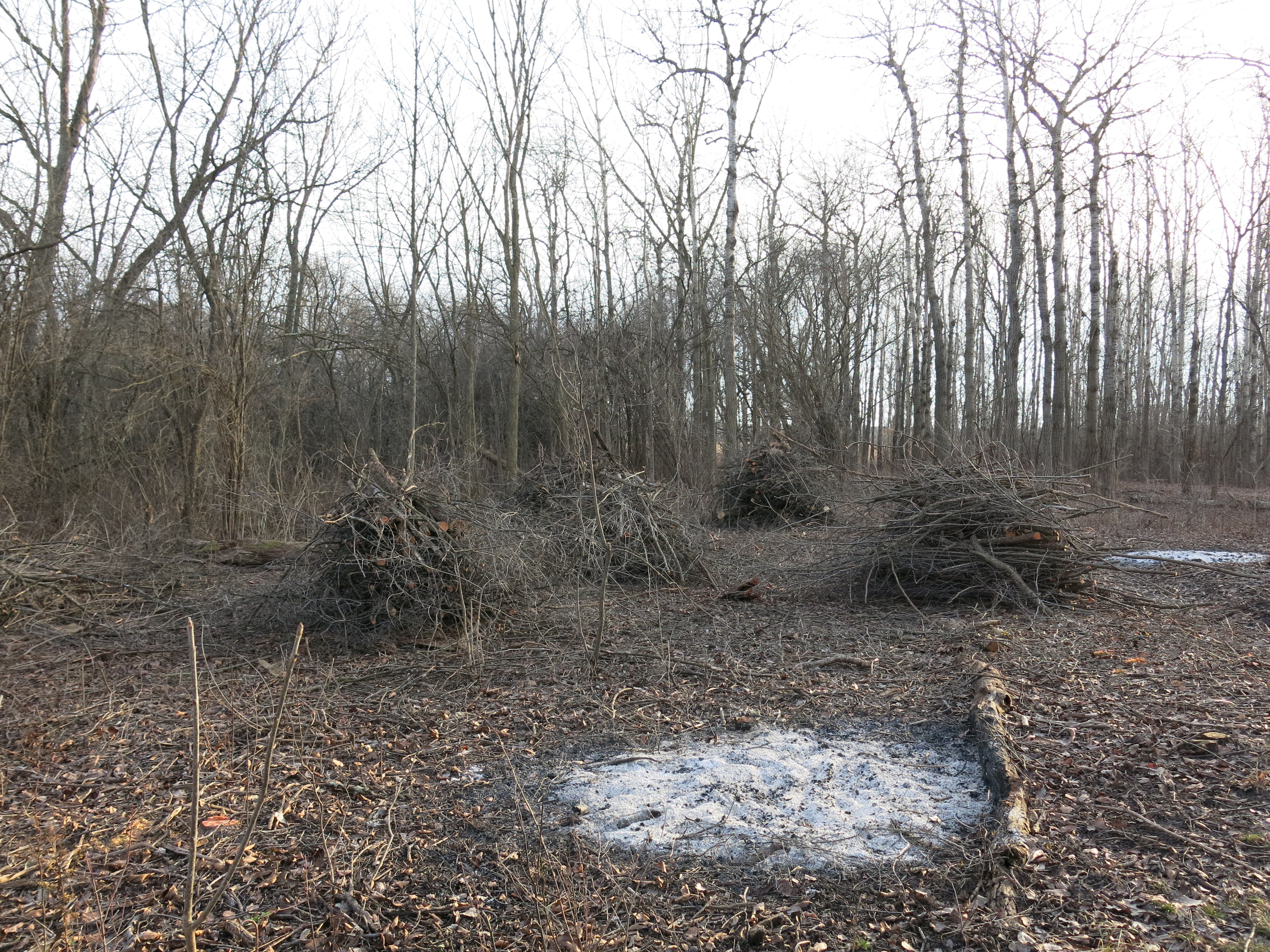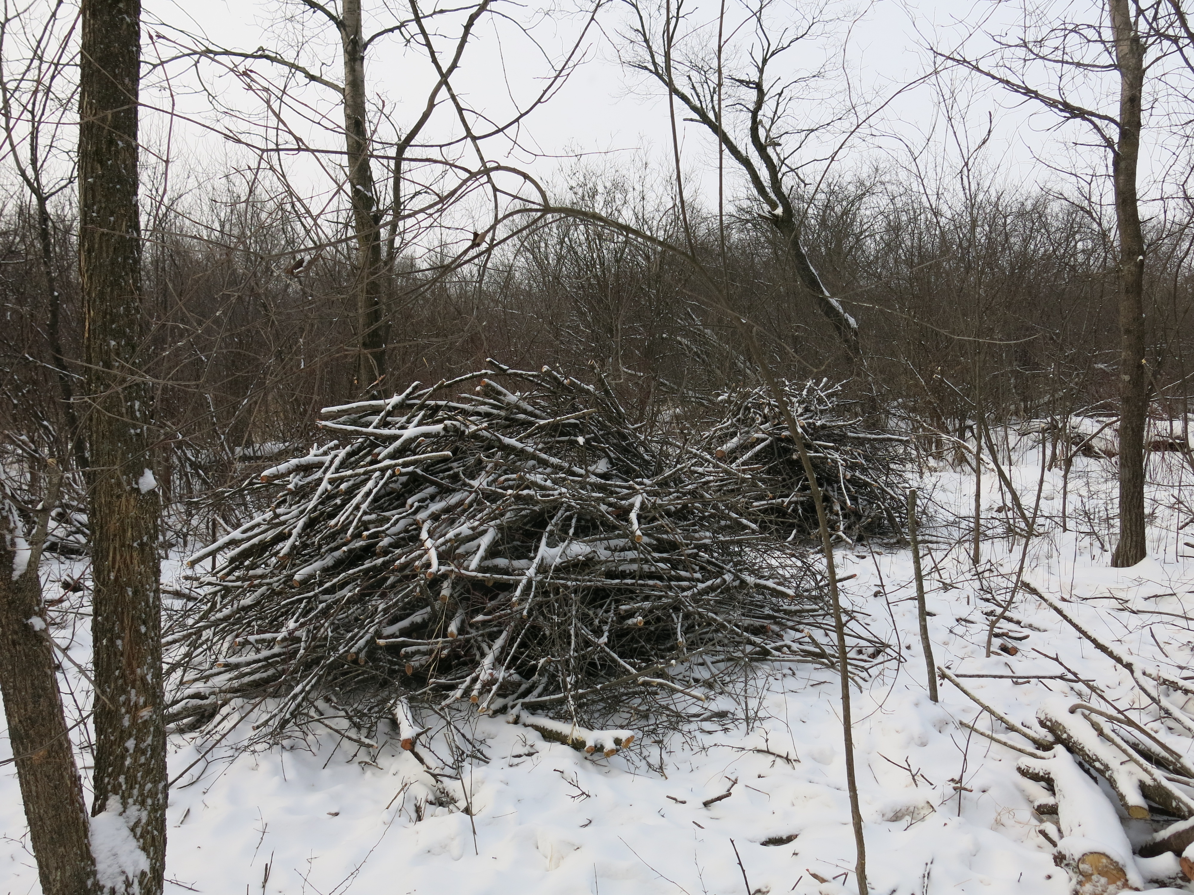 Yesterday, Dick, Andy, Ben and I piled freshly cut brush near the entrance to the buckthorn alley.