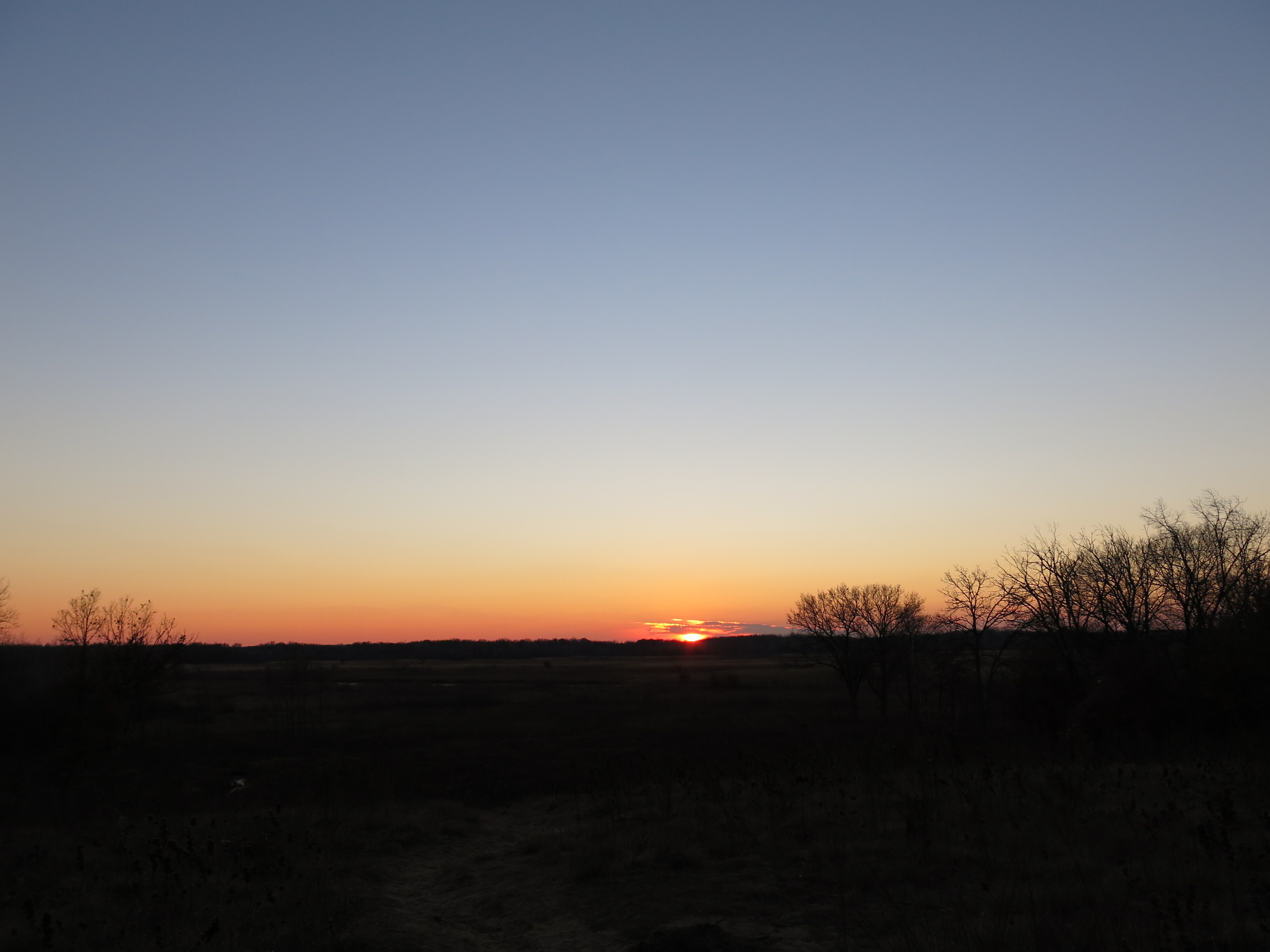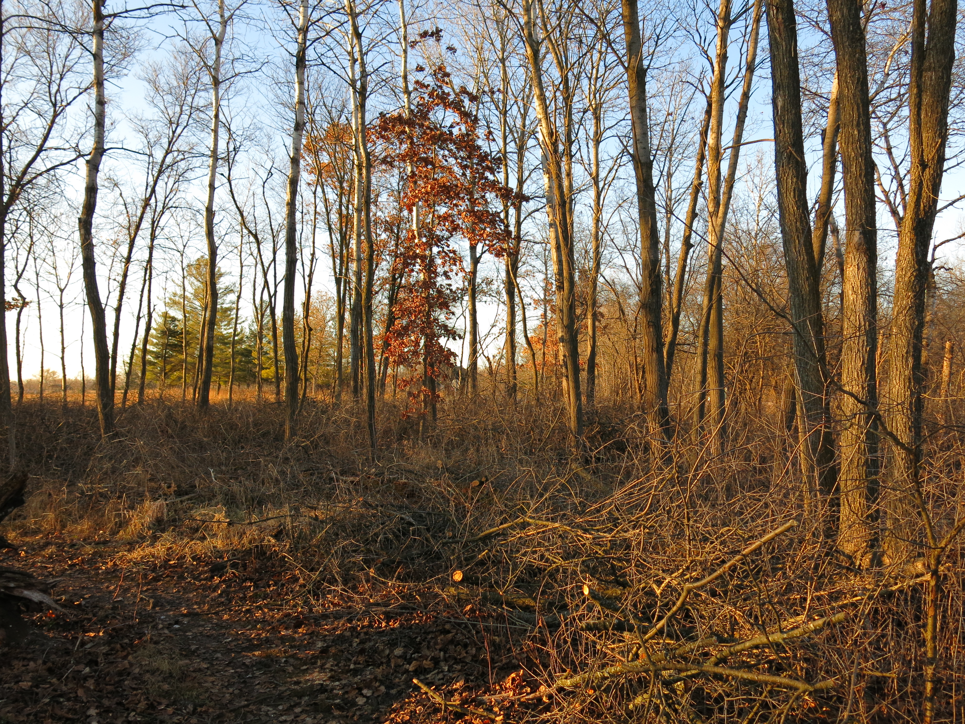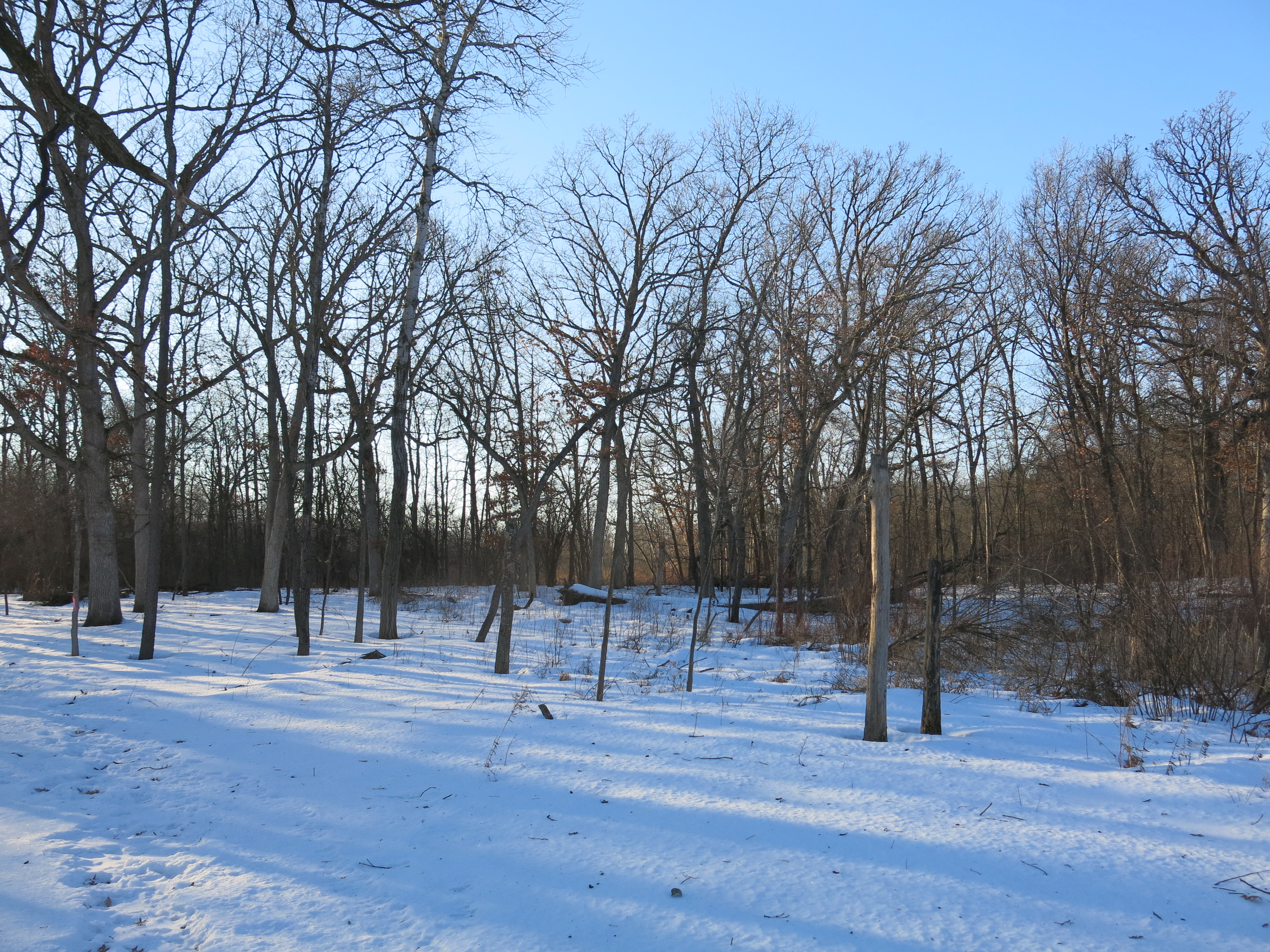 The views below are: looking north towards the Ottawa Lake visitor center, looking east, and looking southeast down the buckthorn alley.