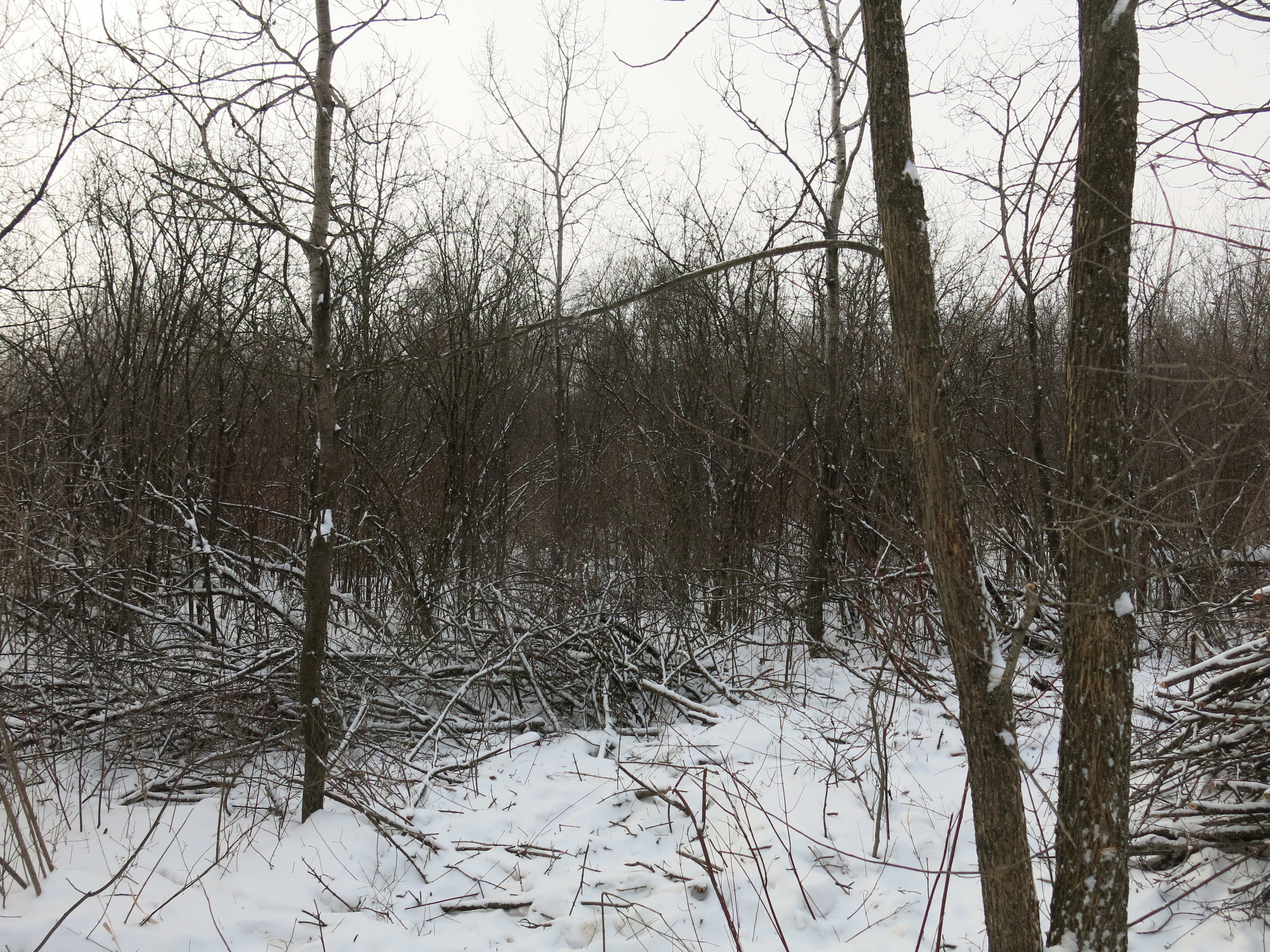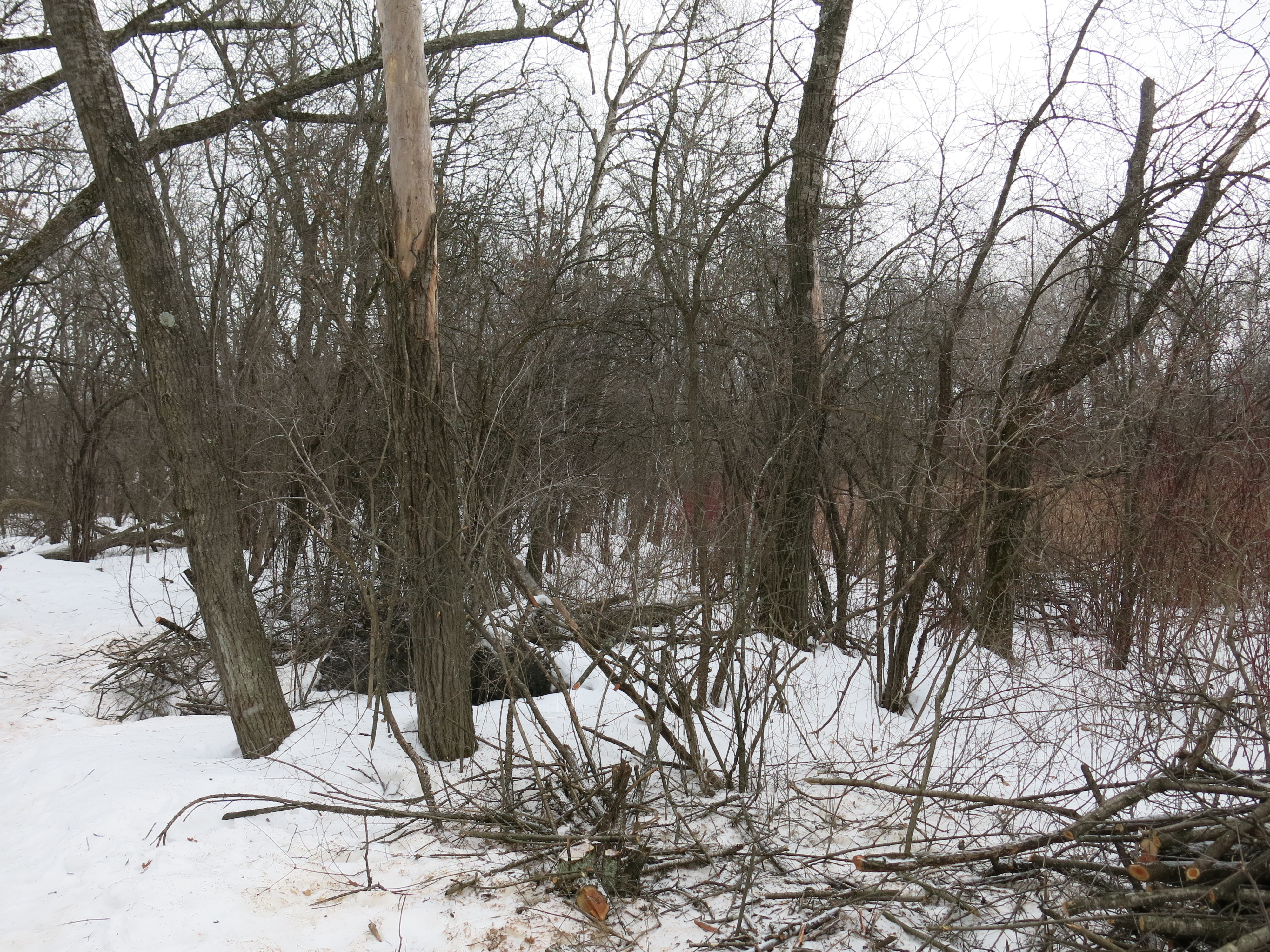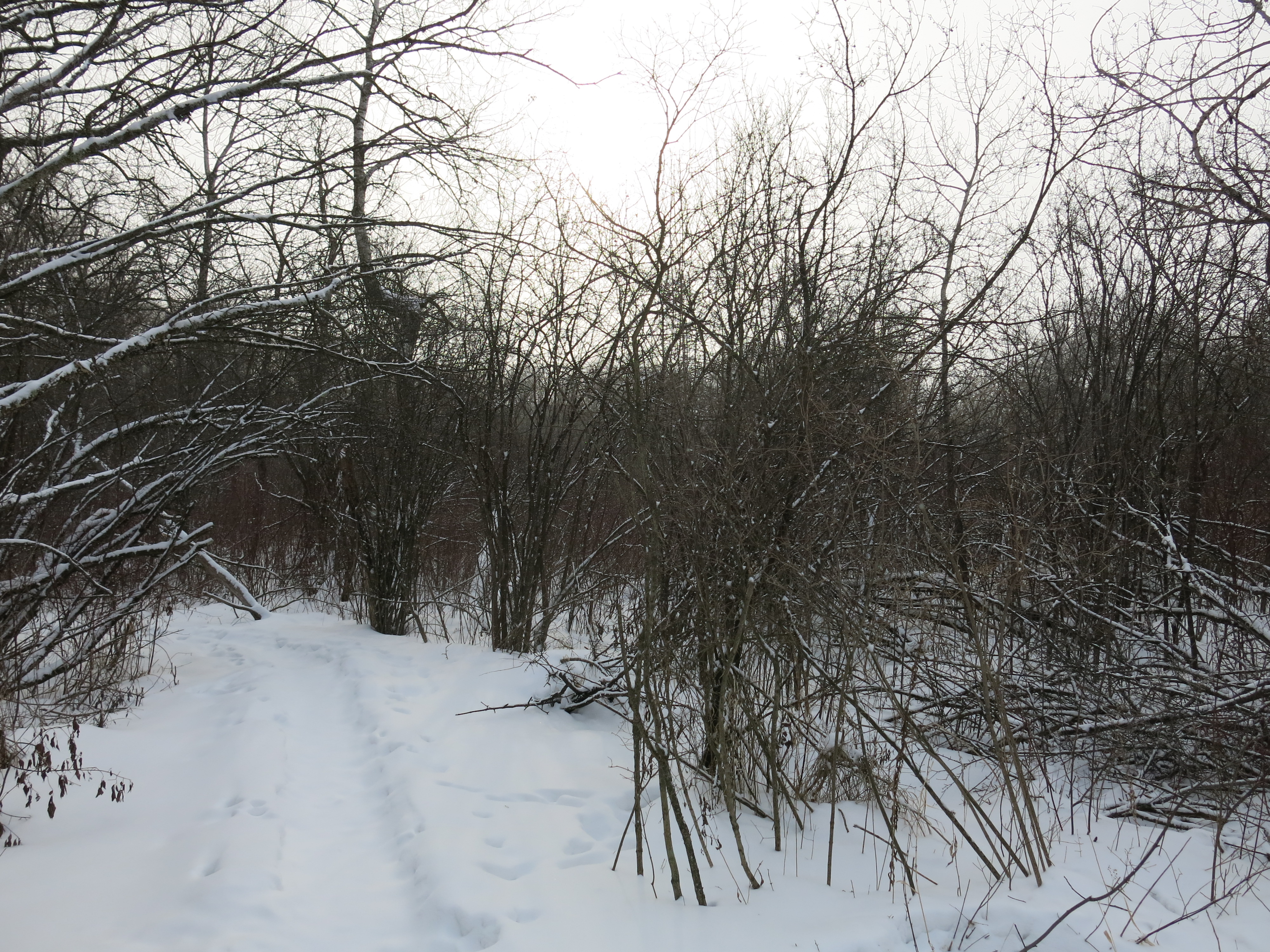 We lit the brush pile in the foreground of the first picture above and had a nice fire to keep warm by. Karen and Pati split their time between piling brush and feeding brush into the fire. Ben was obviously more comfortable with the chainsaw and, I dare say, I think he had a lot more fun. He and Karen visited this spot on New Year’s day and they bushwhacked through the opening in the buckthorn that Zach and I cut and passed through three different cranberry bogs before emerging on the cut-off trail. It is encouraging to know that the area between the north section of the trail and the cut-off trail is not a solid mass of buckthorn. I’ll have to check this out myself!