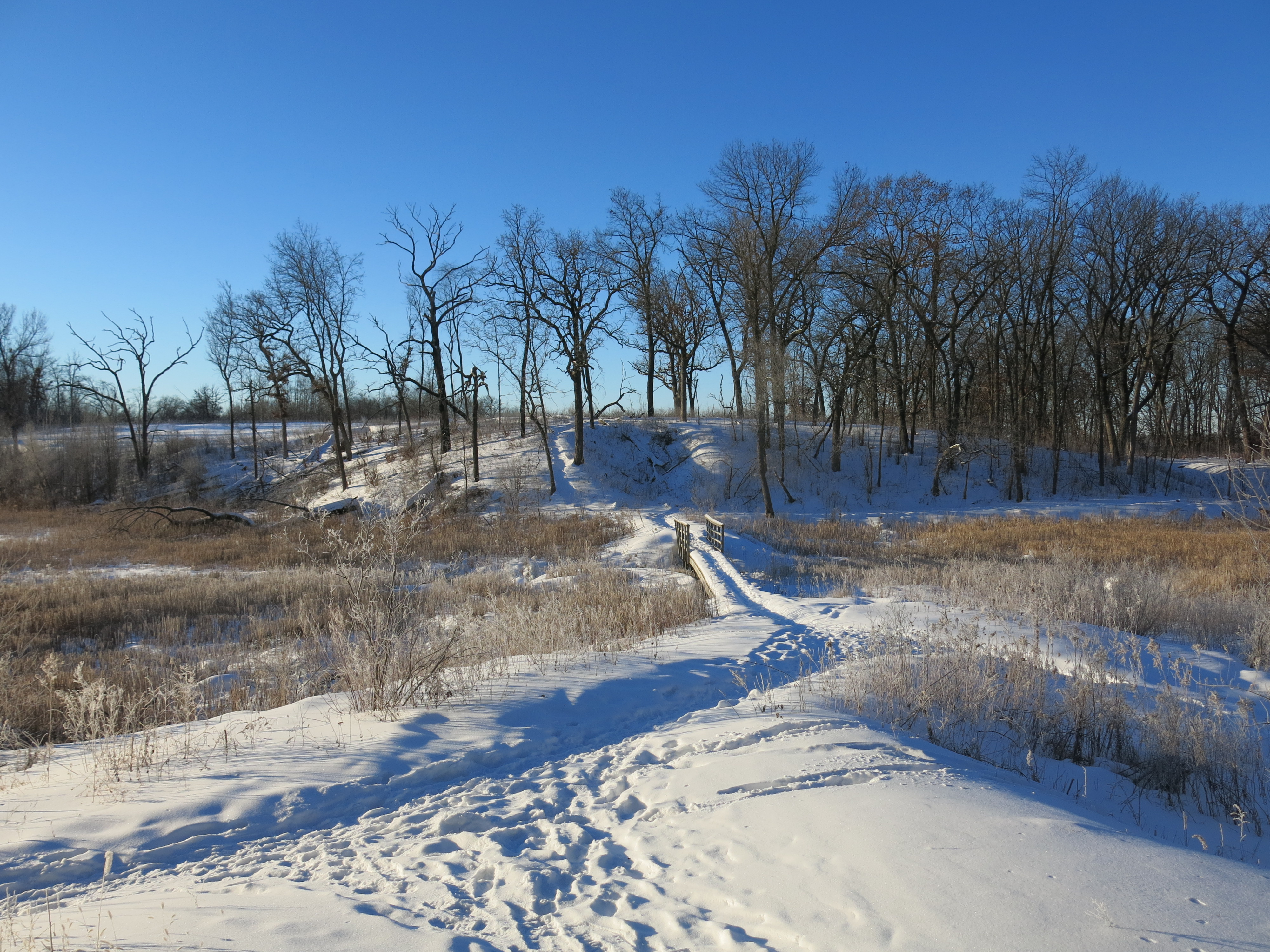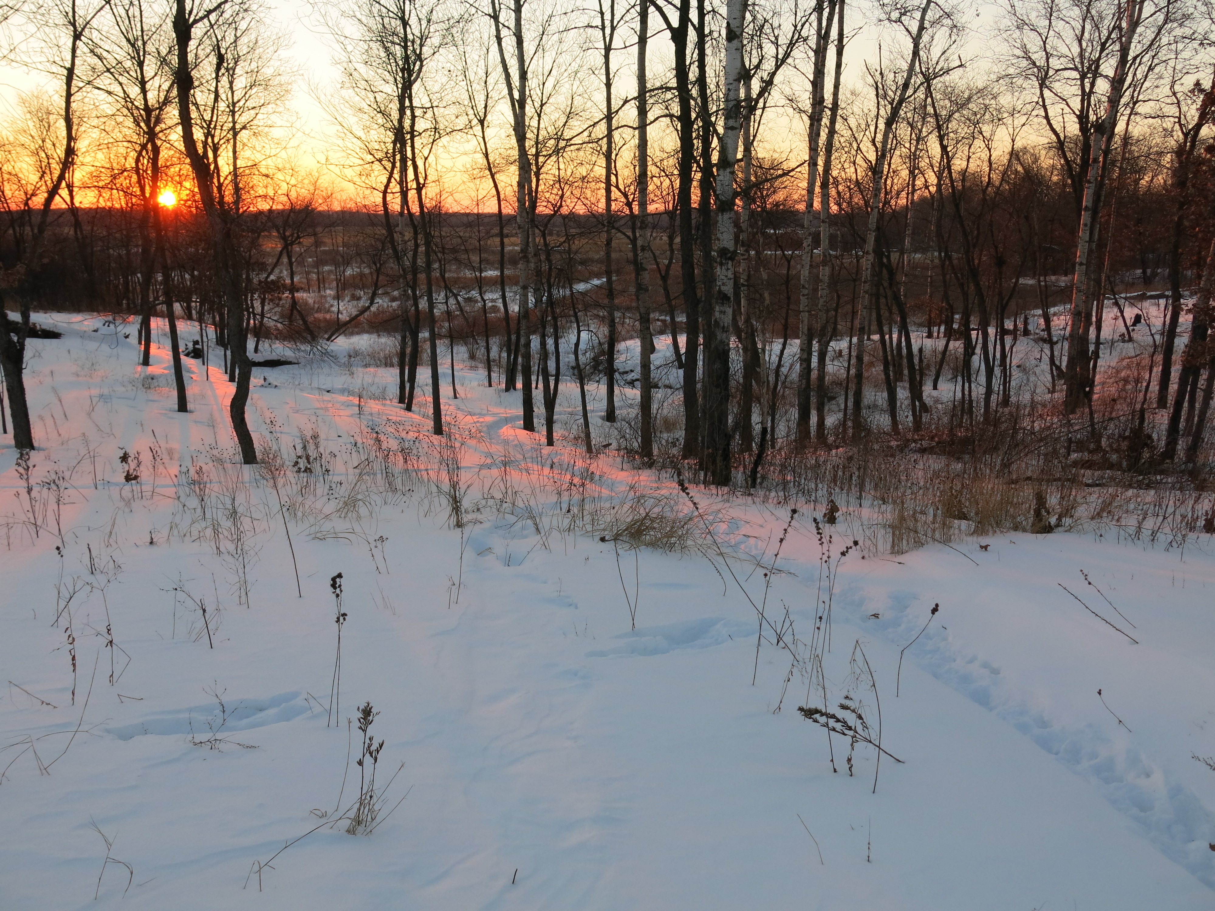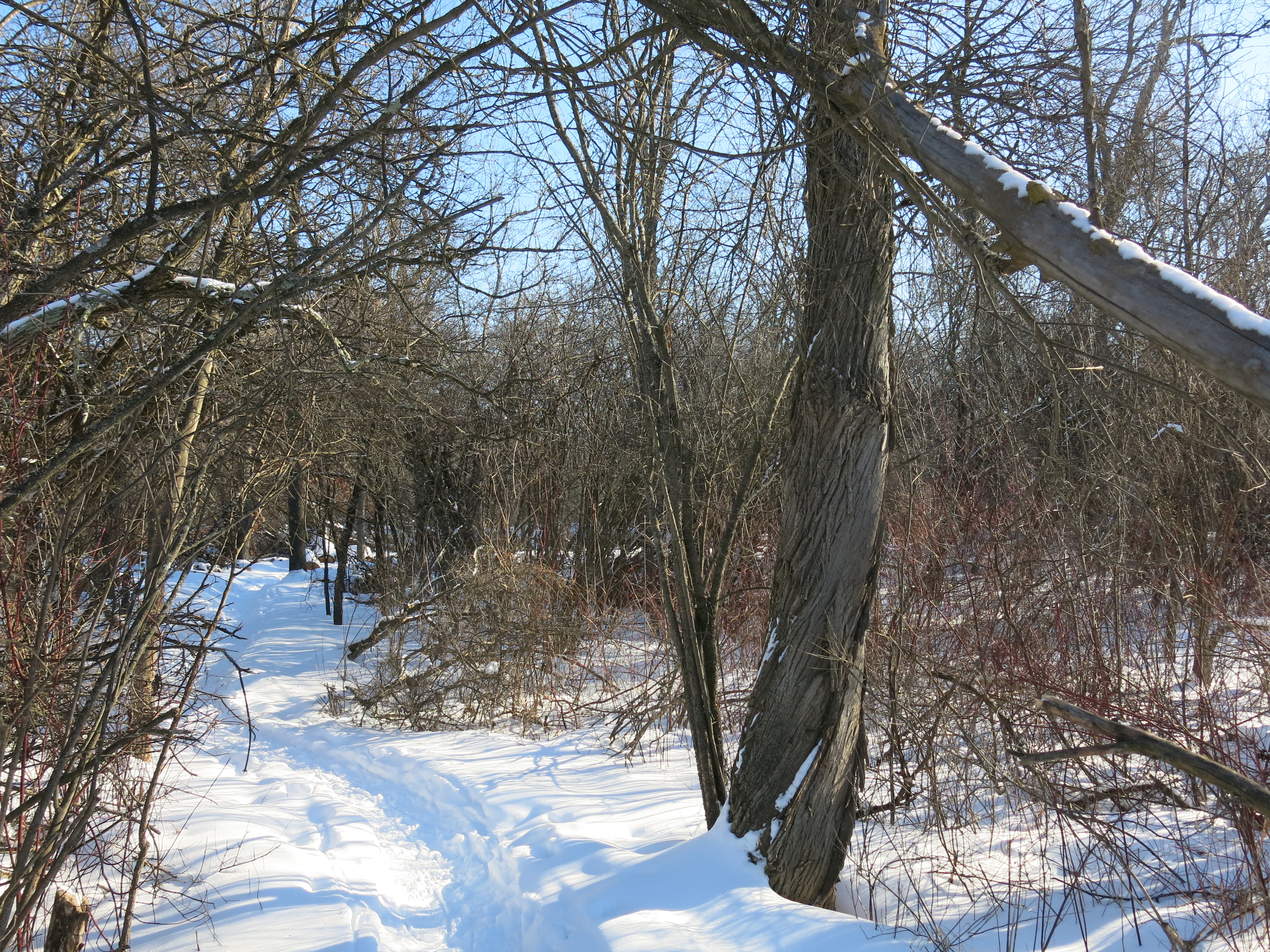 We lit the brush pile in the foreground of the first picture above and had a nice fire to keep warm by. Karen and Pati split their time between piling brush and feeding brush into the fire. Ben was obviously more comfortable with the chainsaw and, I dare say, I think he had a lot more fun. He and Karen visited this spot on New Year’s day and they bushwhacked through the opening in the buckthorn that Zach and I cut and passed through three different cranberry bogs before emerging on the cut-off trail. It is encouraging to know that the area between the north section of the trail and the cut-off trail is not a solid mass of buckthorn. I’ll have to check this out myself!