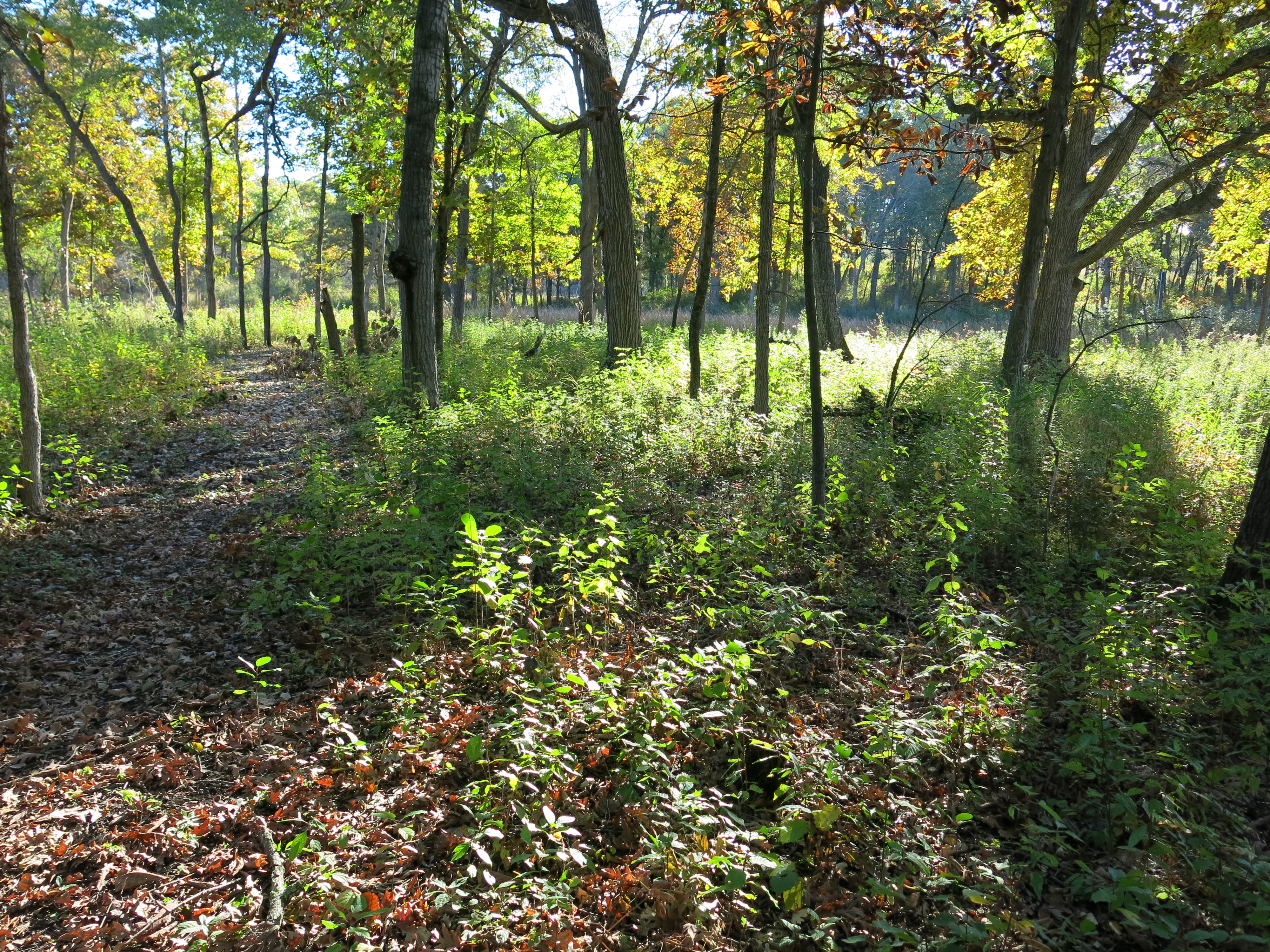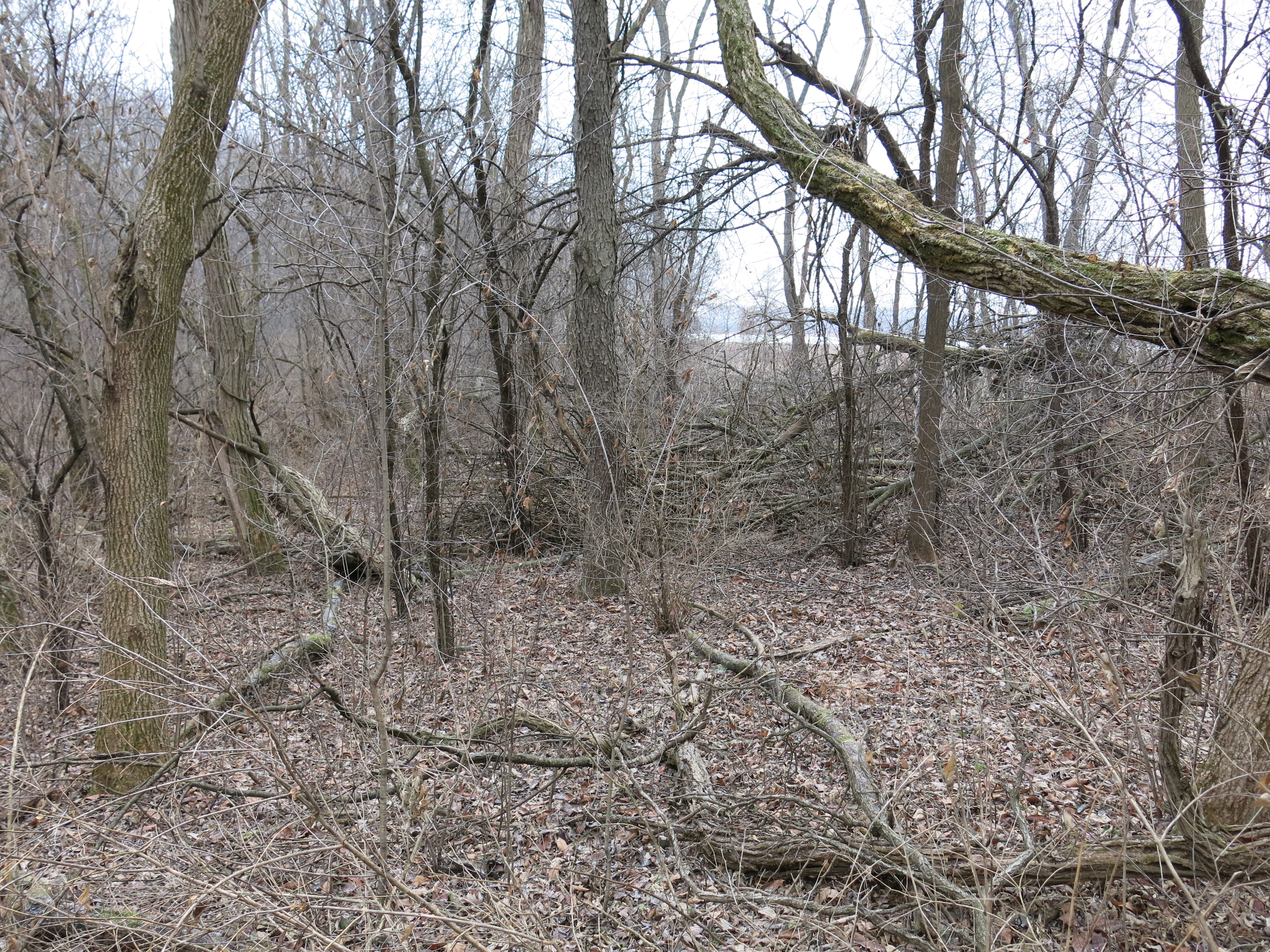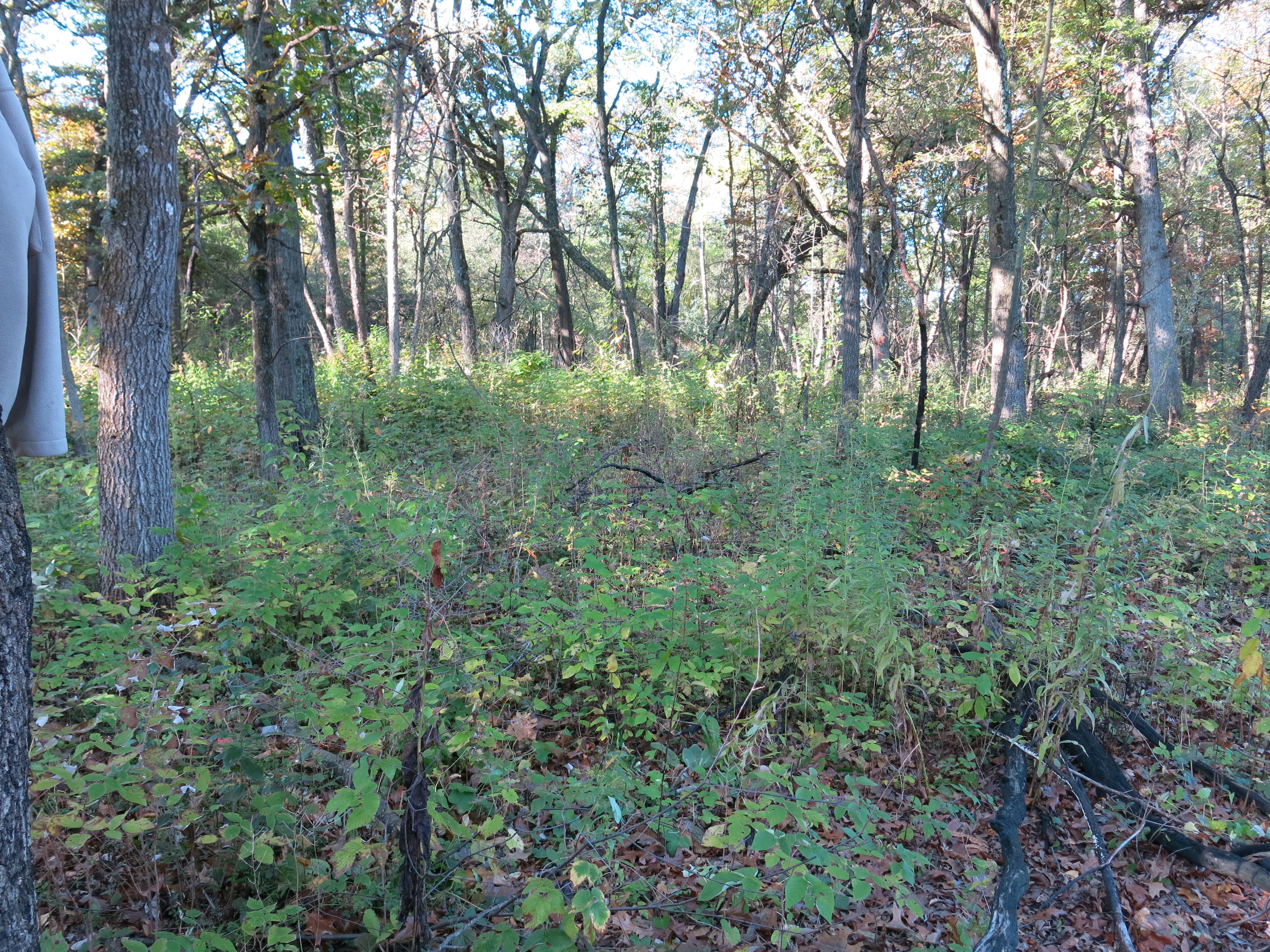 Last Tuesday, Jim Brown, my oldest and dearest friend — since we were 4 or 5 — came out to help me cut and burn on the east end of the Buckthorn Alley. Here is how it looked west, north and east, before we got started: