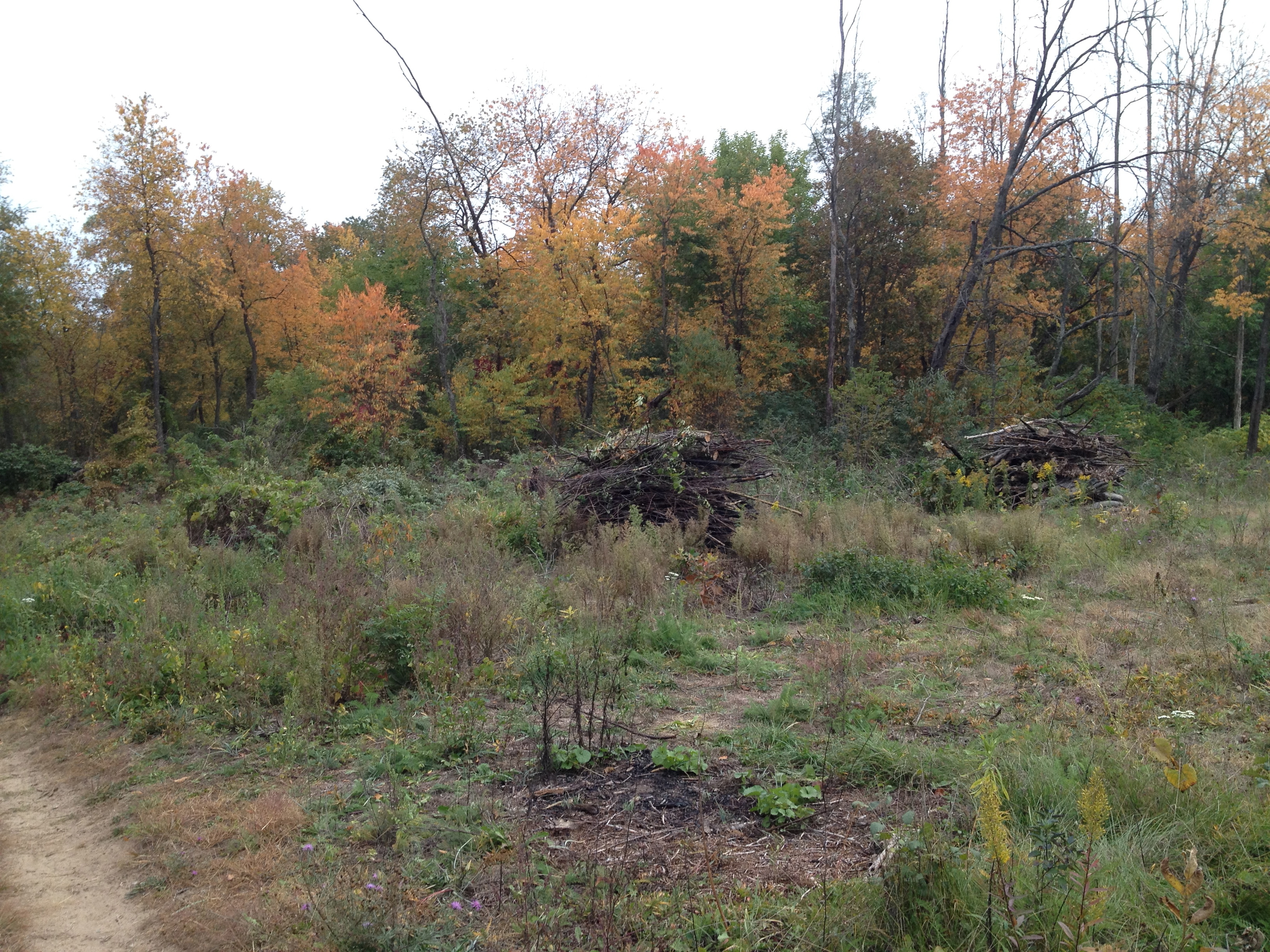 Next, I headed to the old barn site, which is quite a bit noisier, to pile some buckthorn. Garrett and Jenny, two new volunteers, joined me and we did some stacking. I’m hoping to work with them again soon!