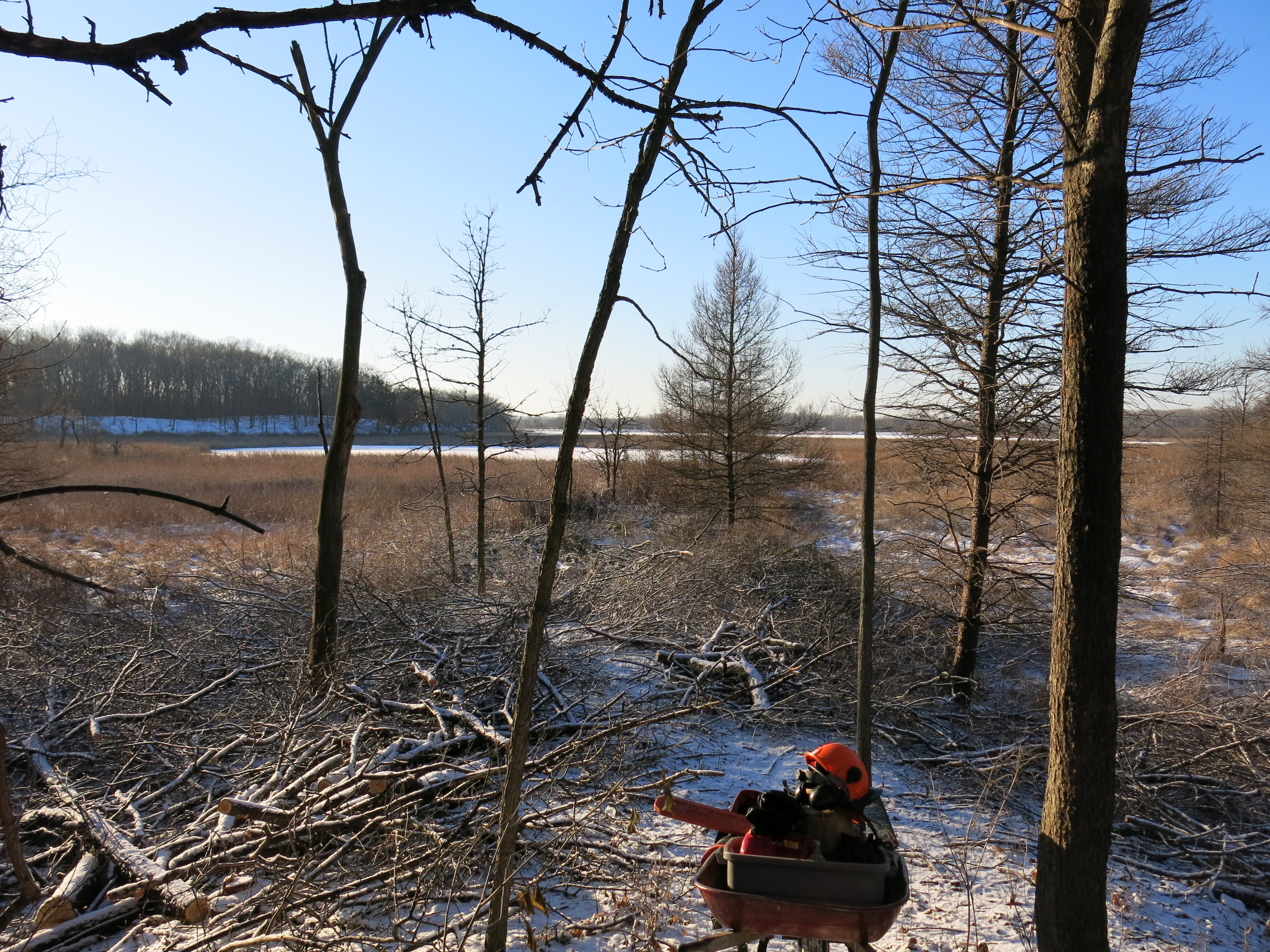 Yesterday I returned to the area and continued to open up dramatic views into, and out of, the very interior of the Scuppernong River Nature Preserve. I completed clearing the area shown below to totally open the views into the interior wetlands.