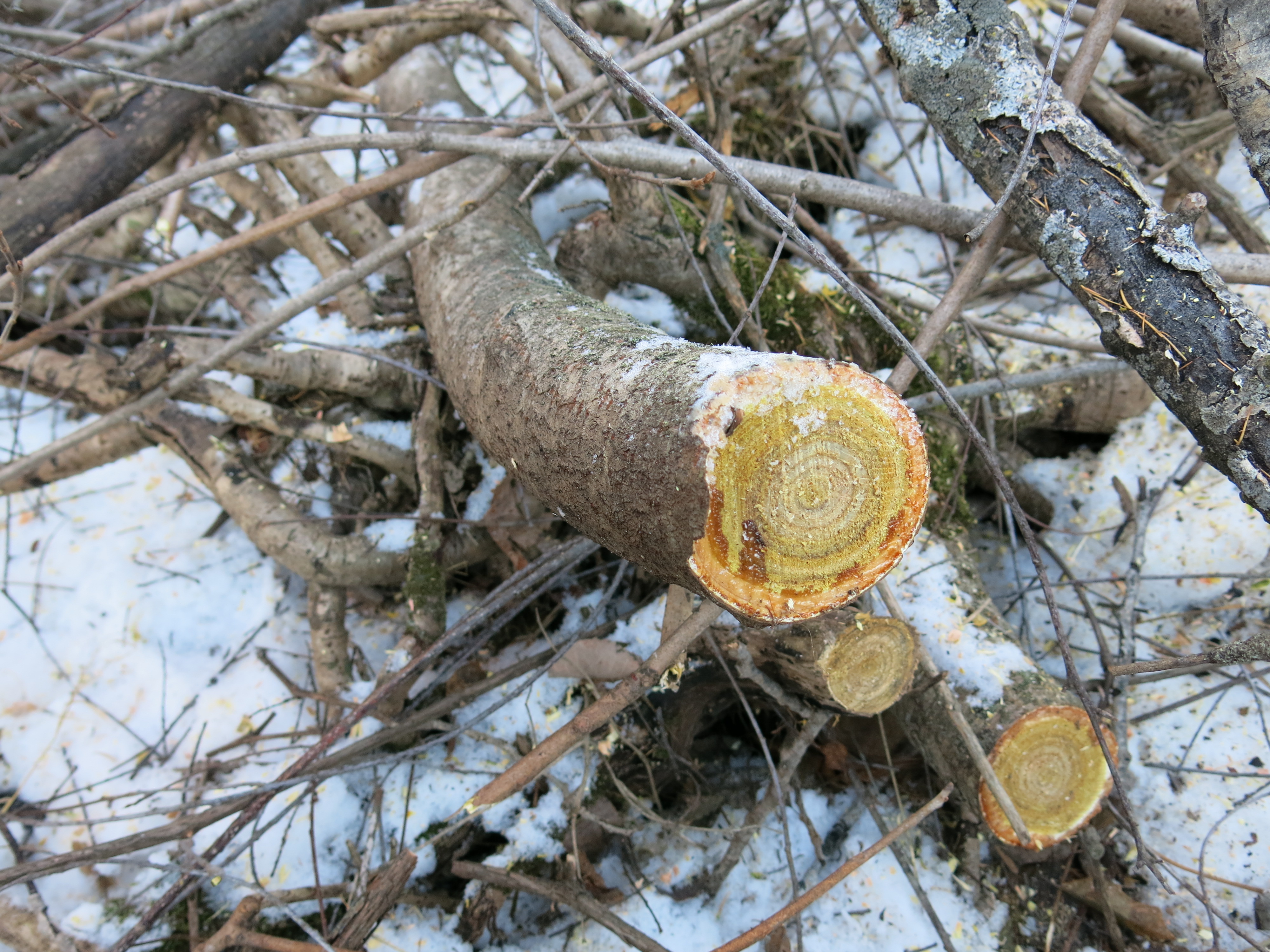 We carved a hole in the middle of this buckthorn thicket and now was the time to finish the perimeter. I had a fine day cutting and stopped early to help my friend Scott, and his buddy Mr. Schnuddles, collect some firewood.