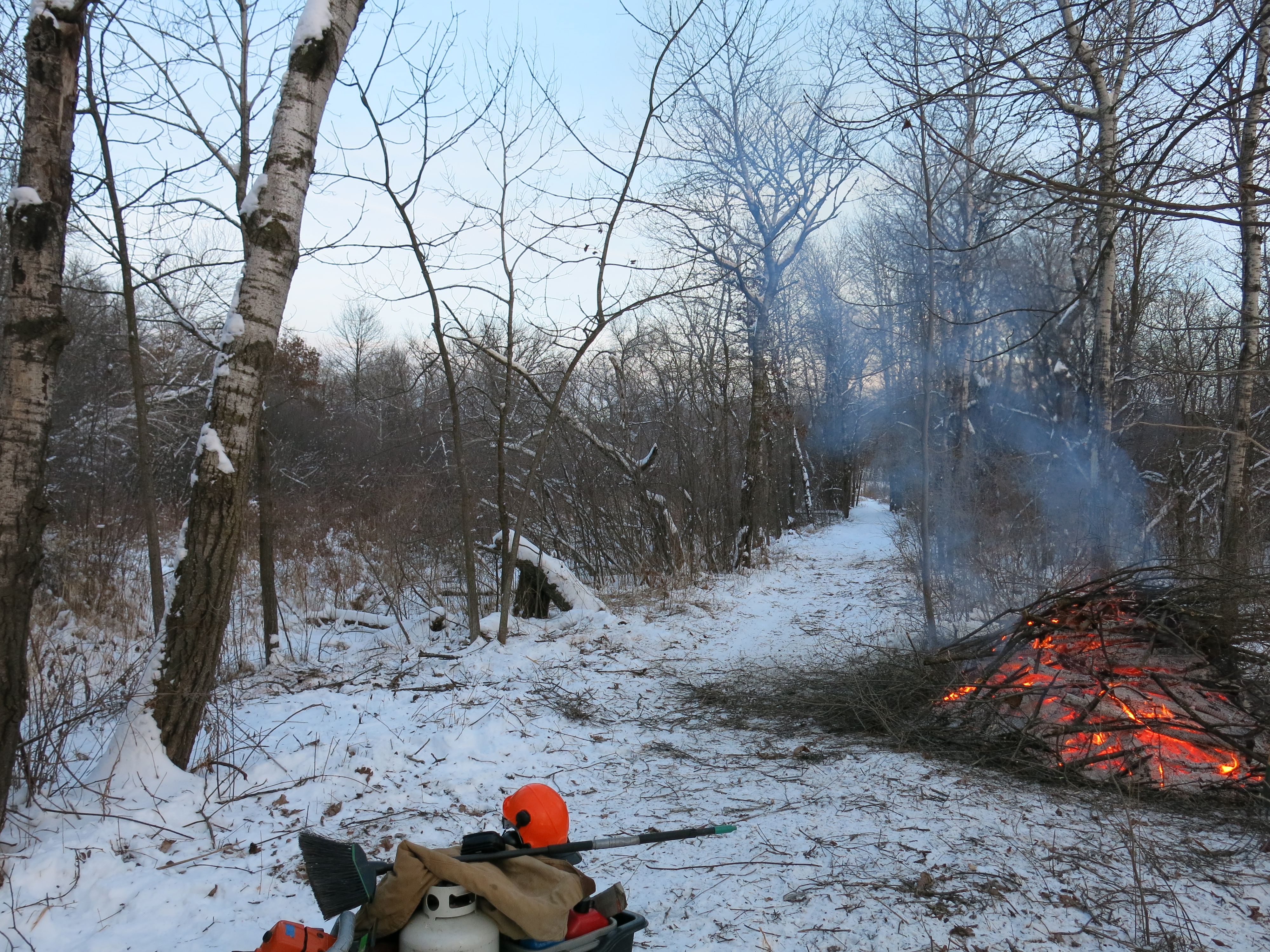 I try to make the best of the opportunity I have to work at The Springs, and that means getting out year-round to do battle with the buckthorn.  But, it is definitely harder to motivate when the temperatures drop and the snow begins to accumulate.  After bailing out last Sunday, I did get out a couple times this week and I’m getting used to winter again.