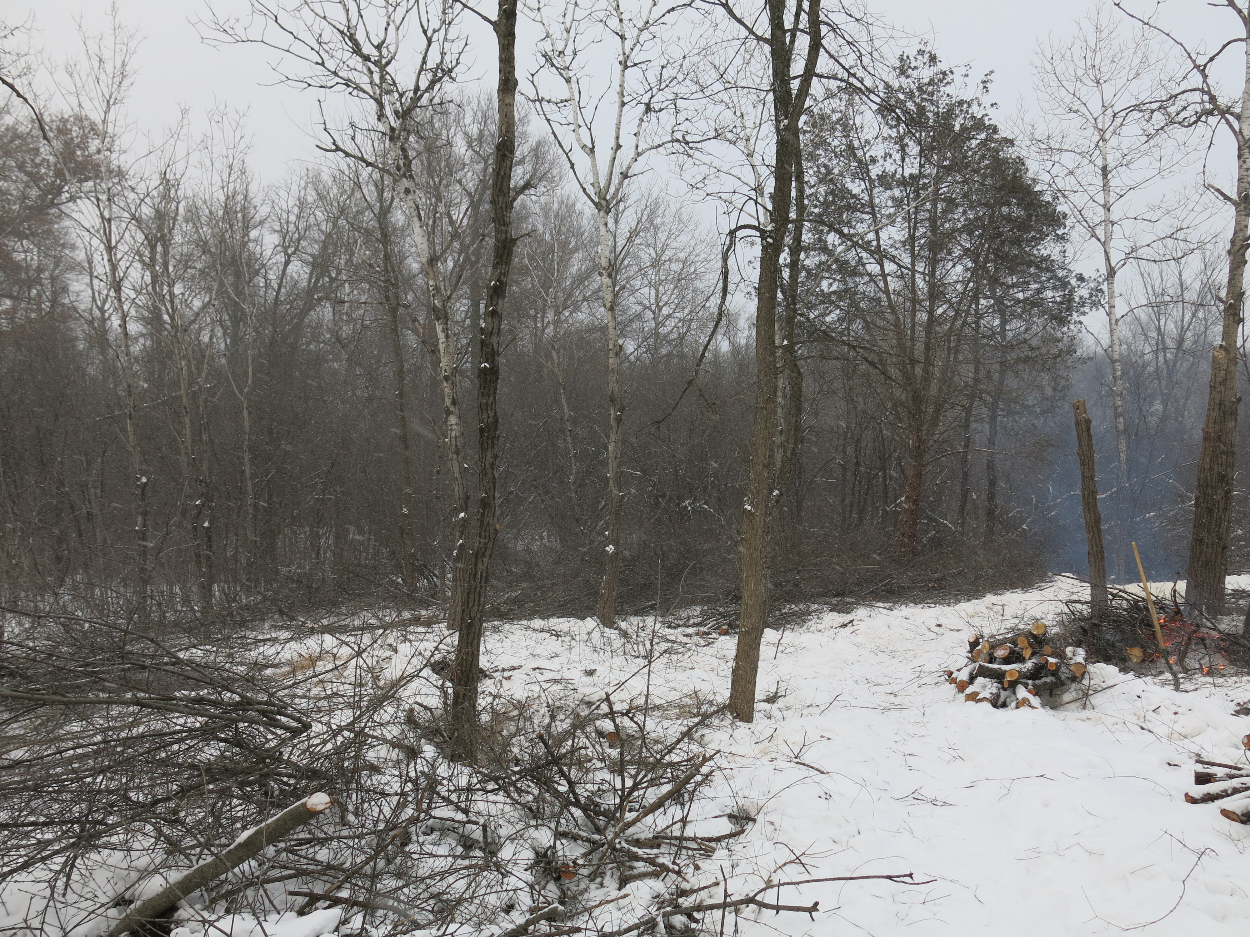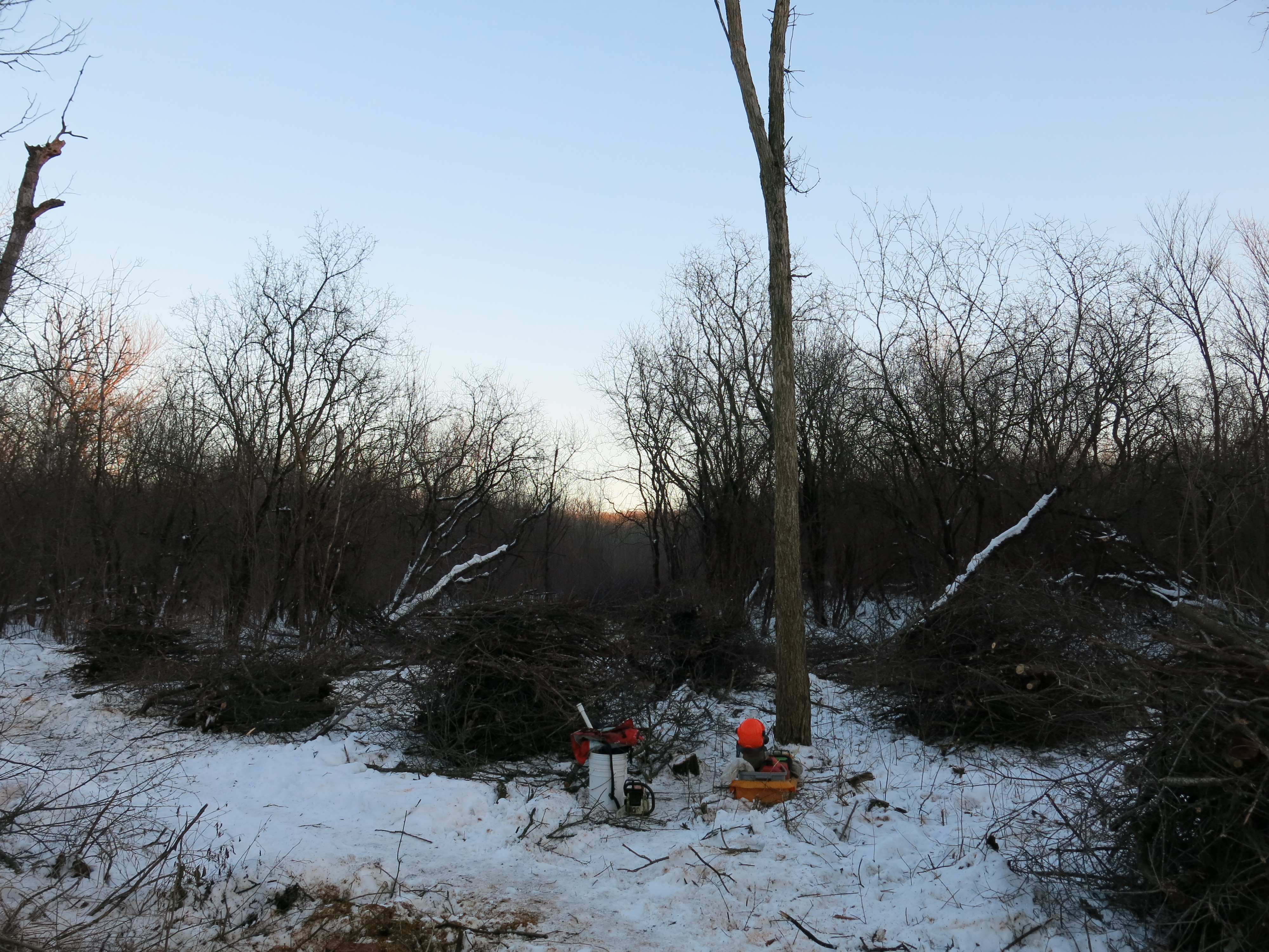 Last Wednesday, I picked up where I left off on the sand prairie. It was another cold day swinging the brush cutter.