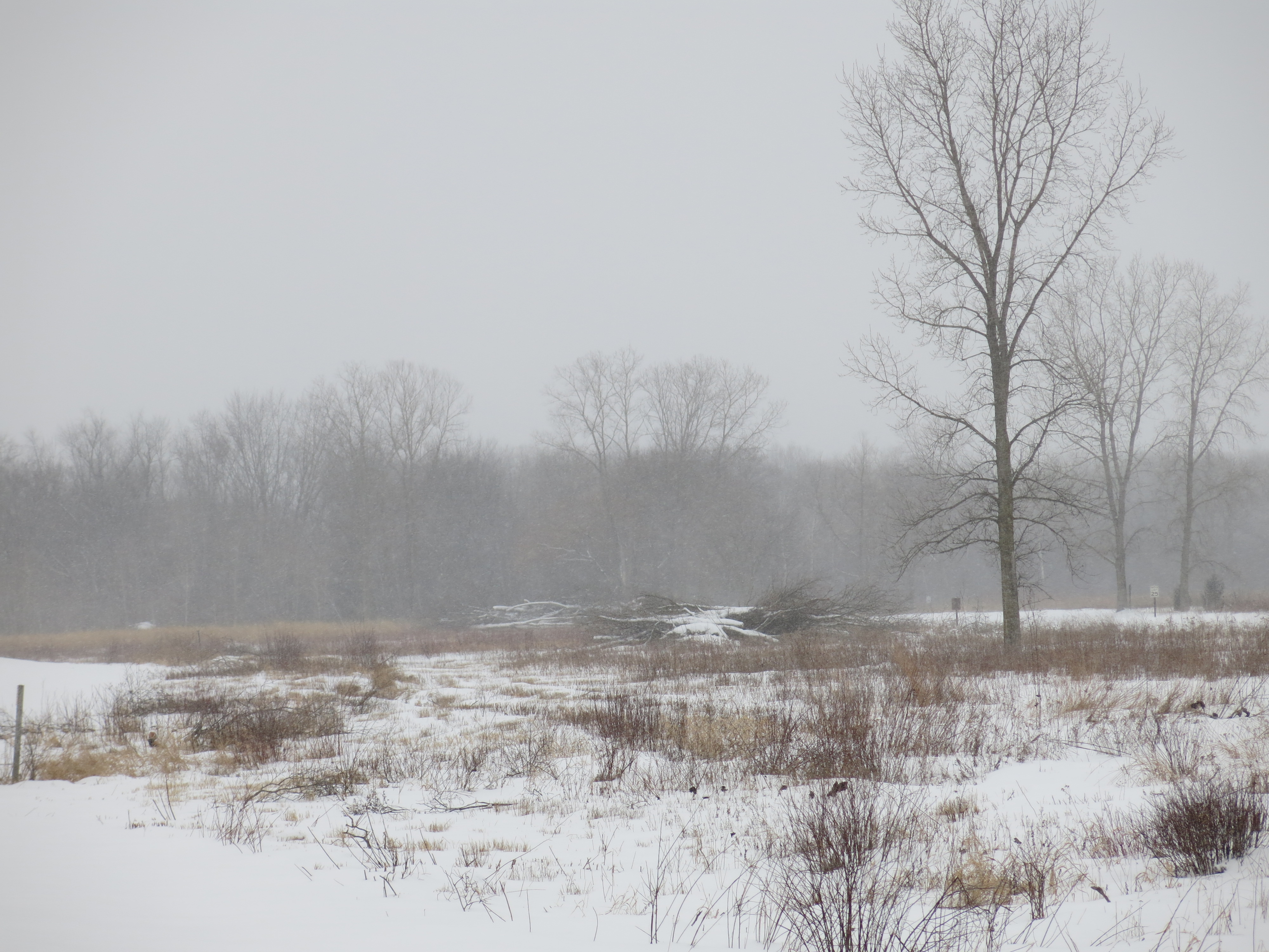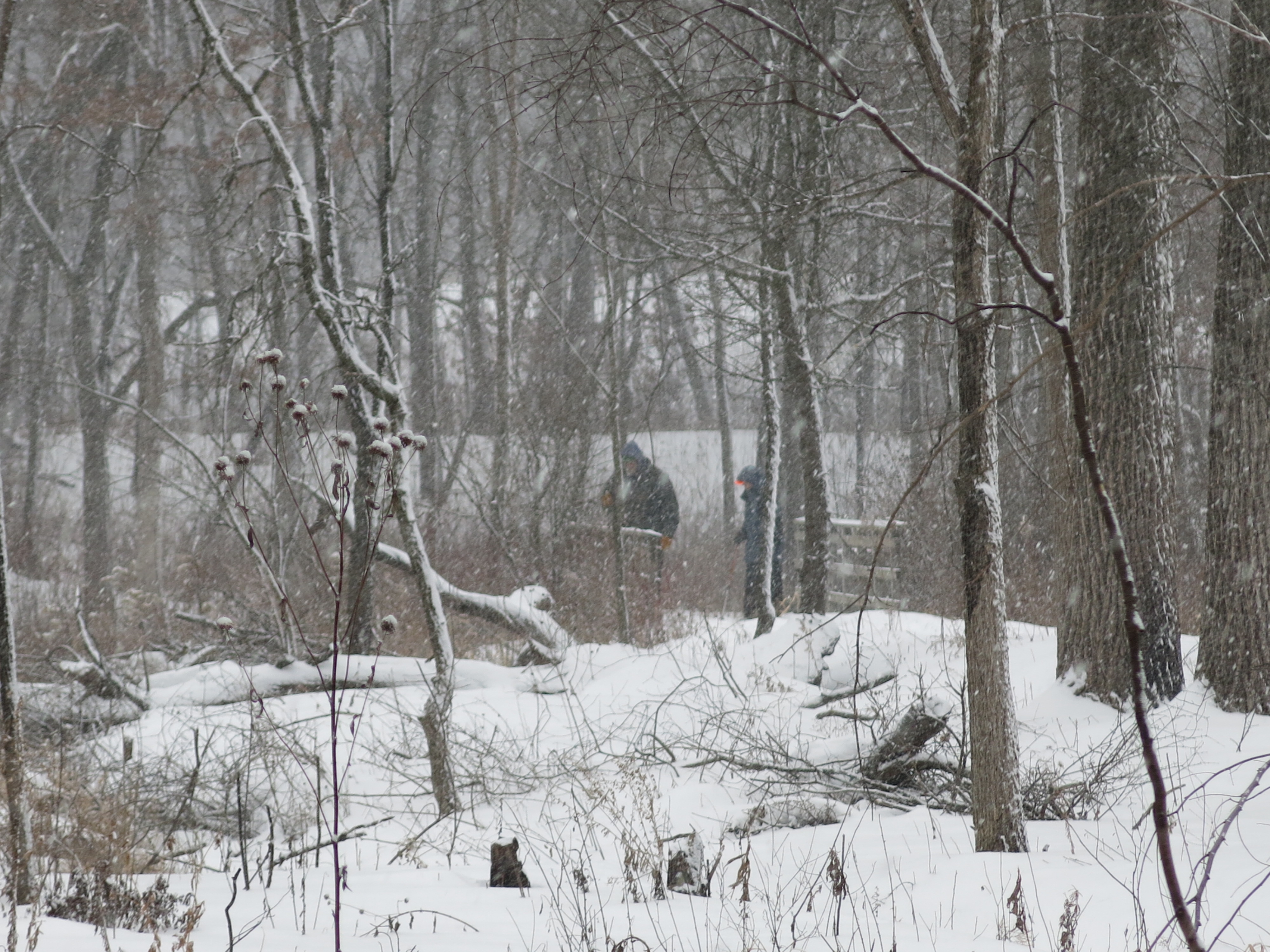 Snow fell, heavily at times, while we worked and John and Sue Hrobar stopped by to say hello. Here is how it looked when we quit.