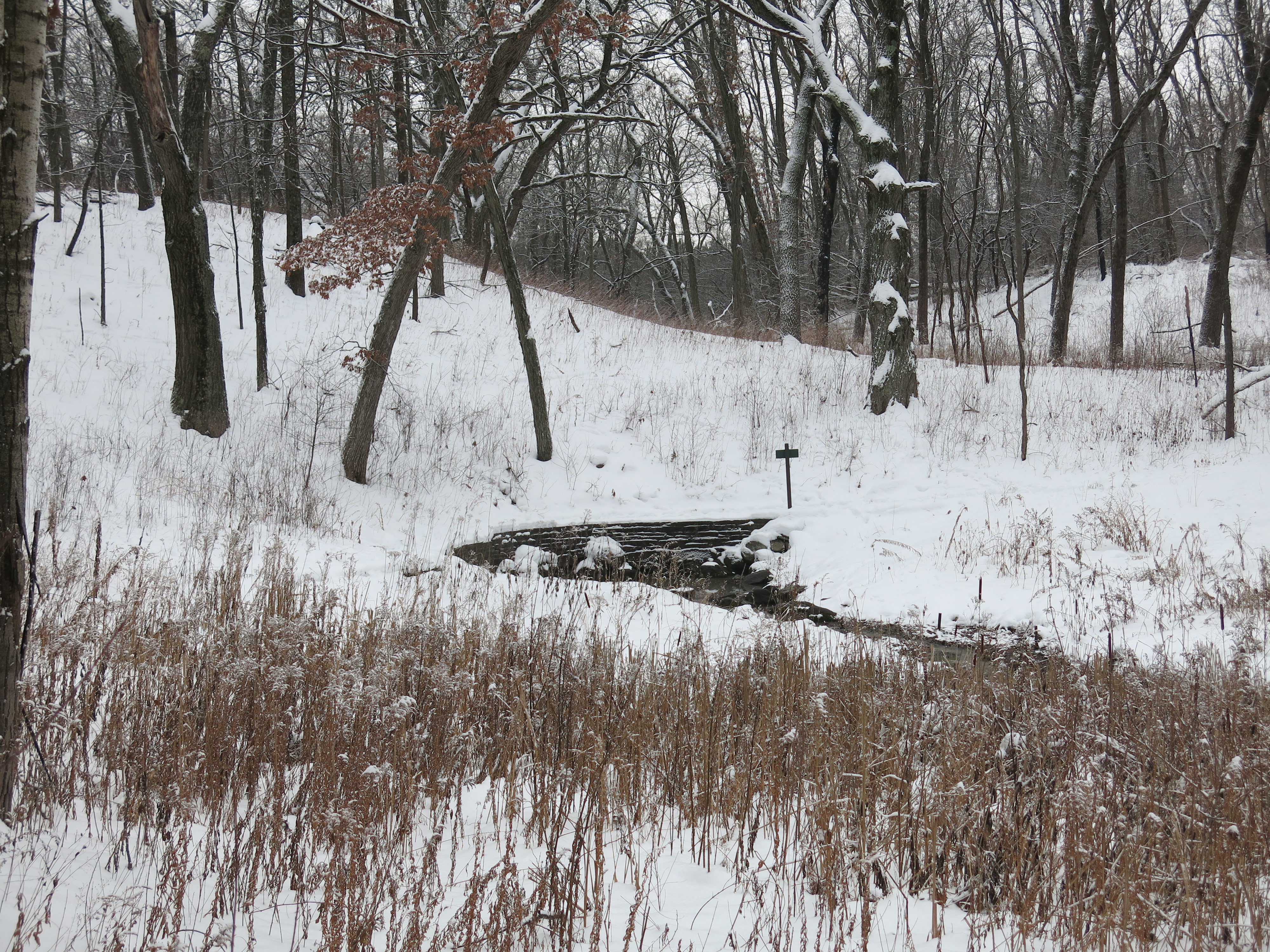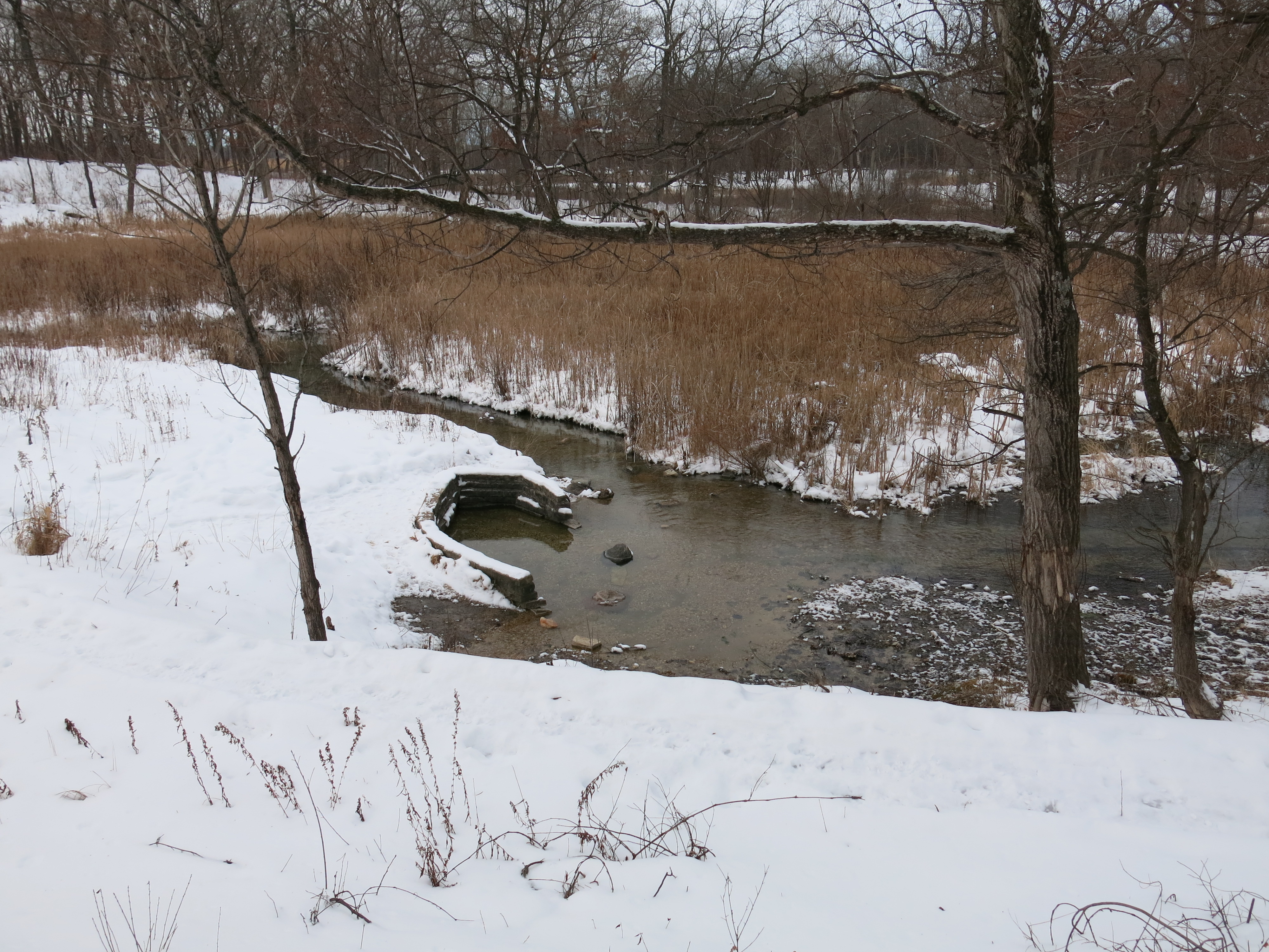 Despite my deeper appreciation for those who prefer a wall of buckthorn to highway traffic, I continued to work the brush cutter last week at The Springs. Tuesday was cold and I had to rest my water bottle in the relatively warm river to keep it from freezing solid.
