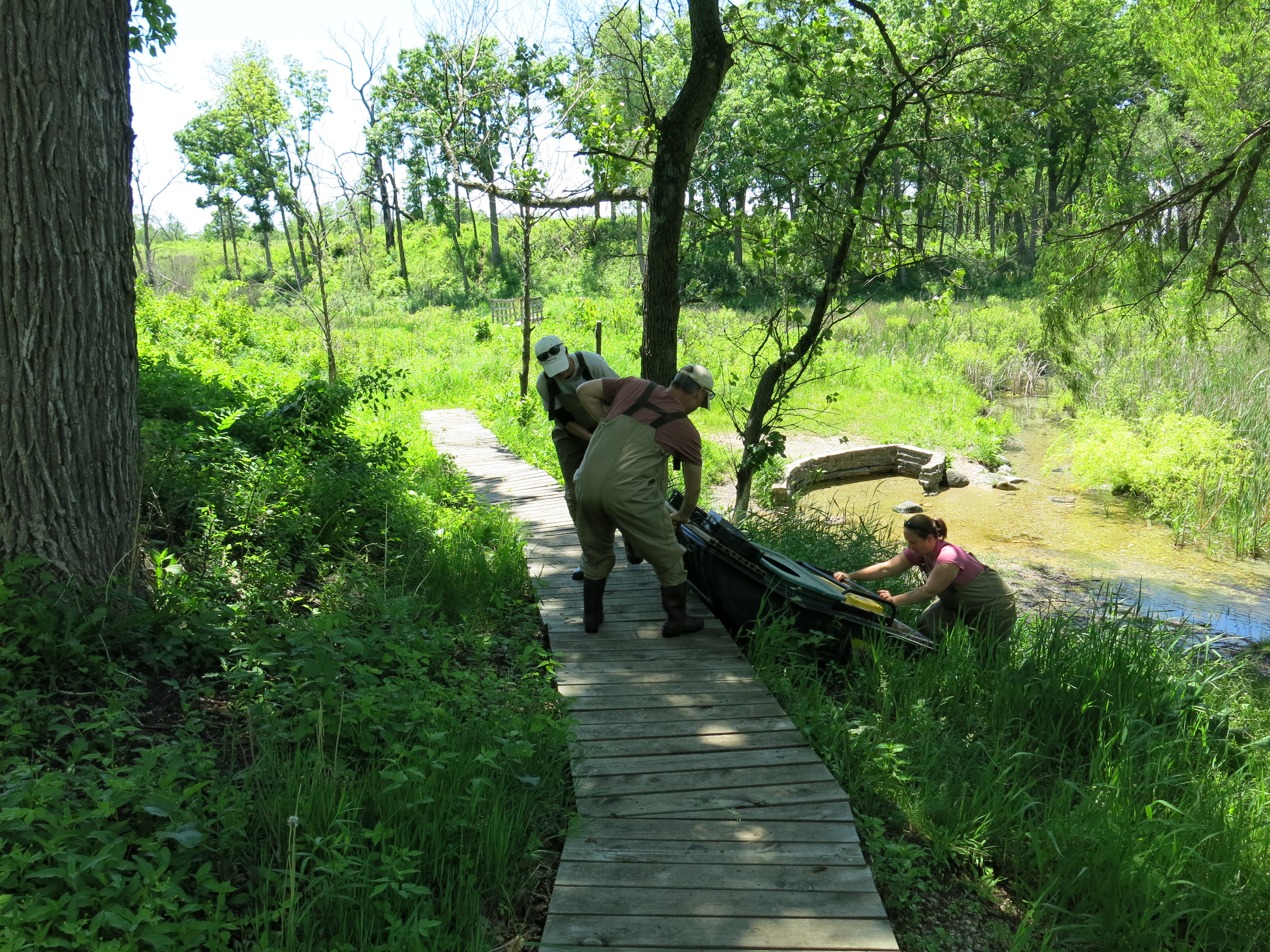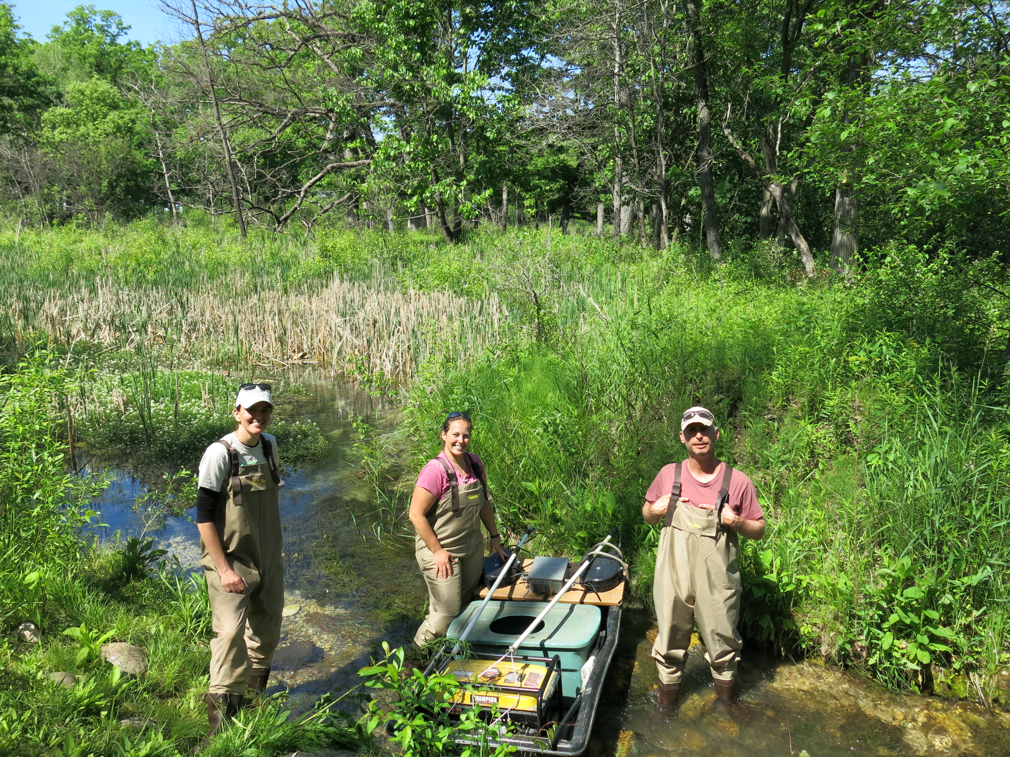 And yesterday I ran into DNR Water Resource Management Specialists Rachel Sabre, Craig Helker and April Marcangeli, who were doing their annual fish count on the Scuppernong River.