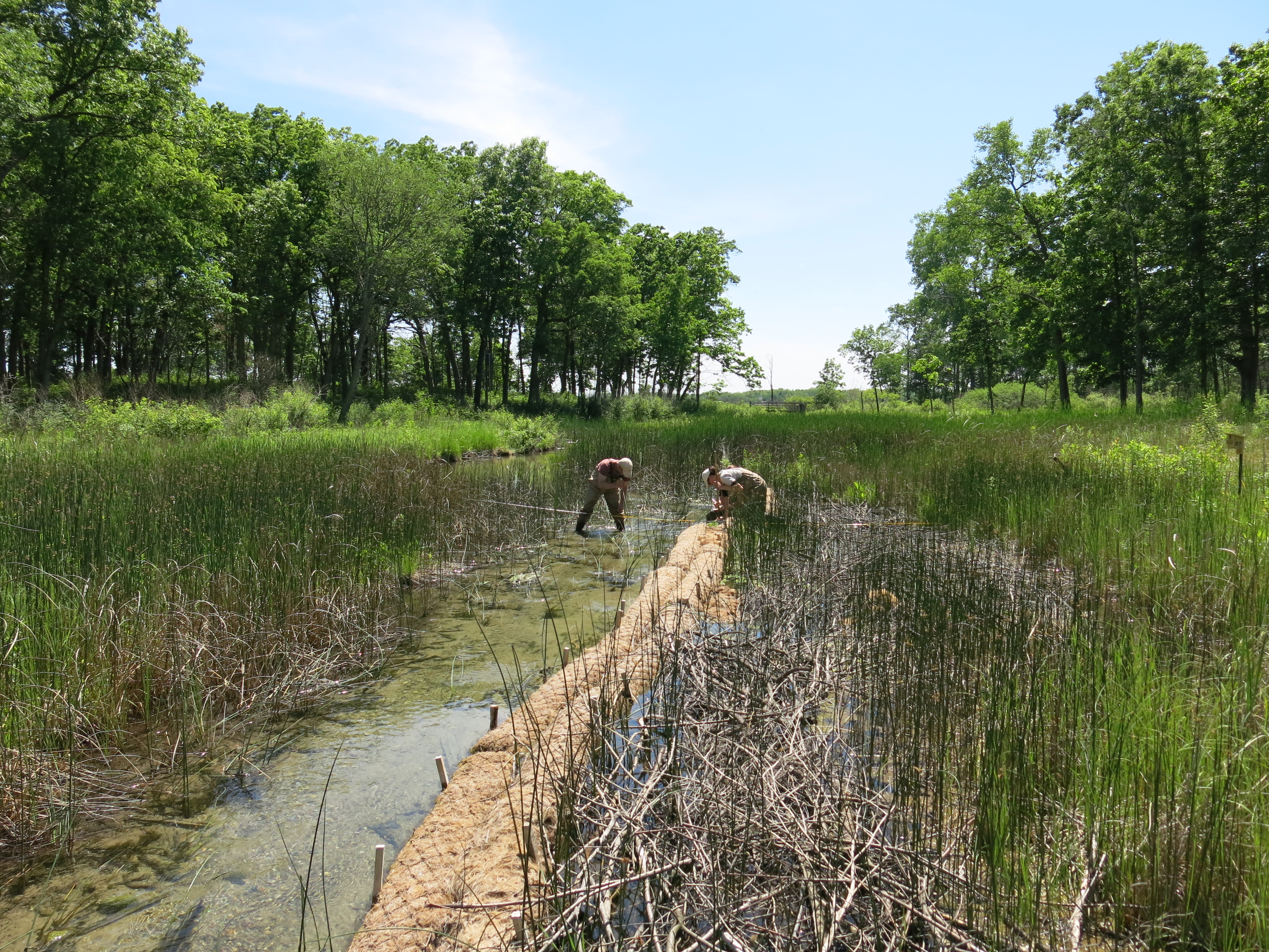 DNR fisheries biologist Ben Heussner, organized a workday tomorrow to fill in with brush the wet areas on the outside of the coconut rolls they placed into the river late last fall.