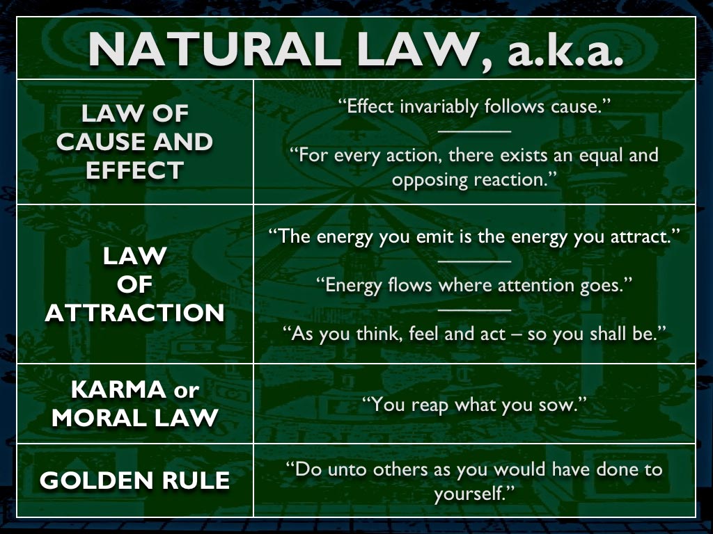 I experienced many examples of Natural Law on my “trip” and I highly encourage you to check out Mark Passio’s seminar on the subject here. I’ll provide a brief summary and then give an example.