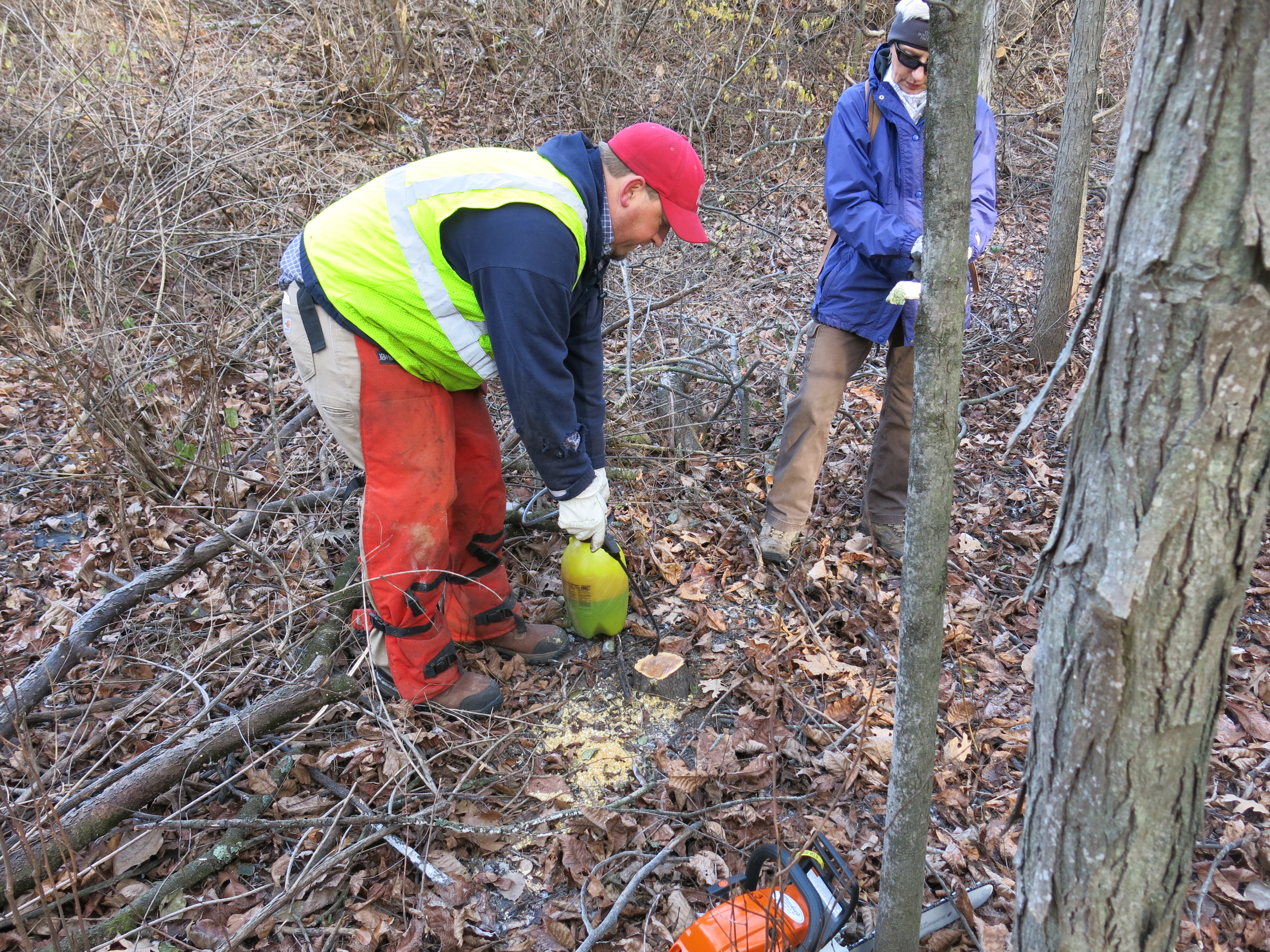 I’m taking my time and poisoning as many cut stumps as I can find after each tank of gas burned in my Stihl FS-90 brush cutter. One reason the buckthorn is coming back so strongly here is that I took the shortcut of not poisoning the stumps the first time I brush cut here back in 2012. For every stump I didn’t poison, a half-dozen new shoots appeared.