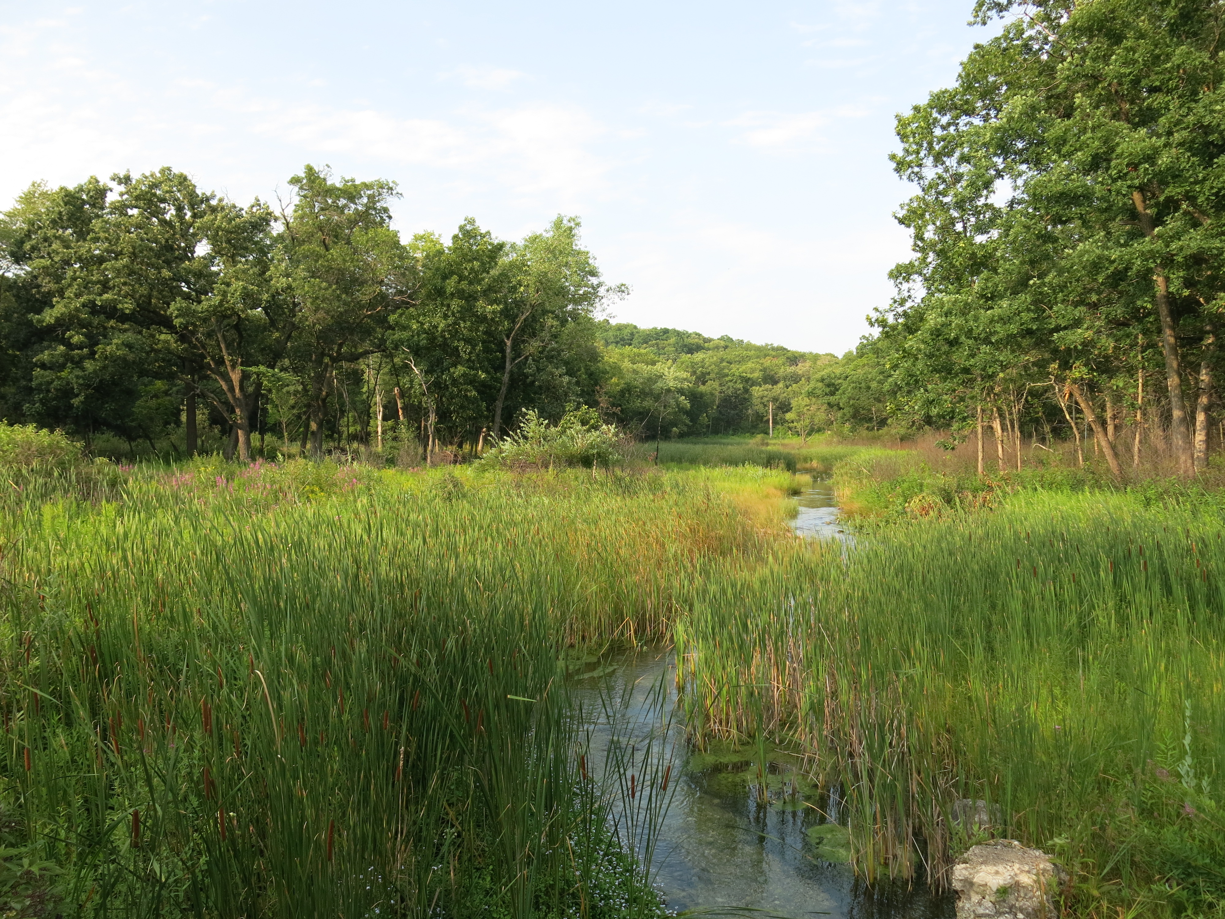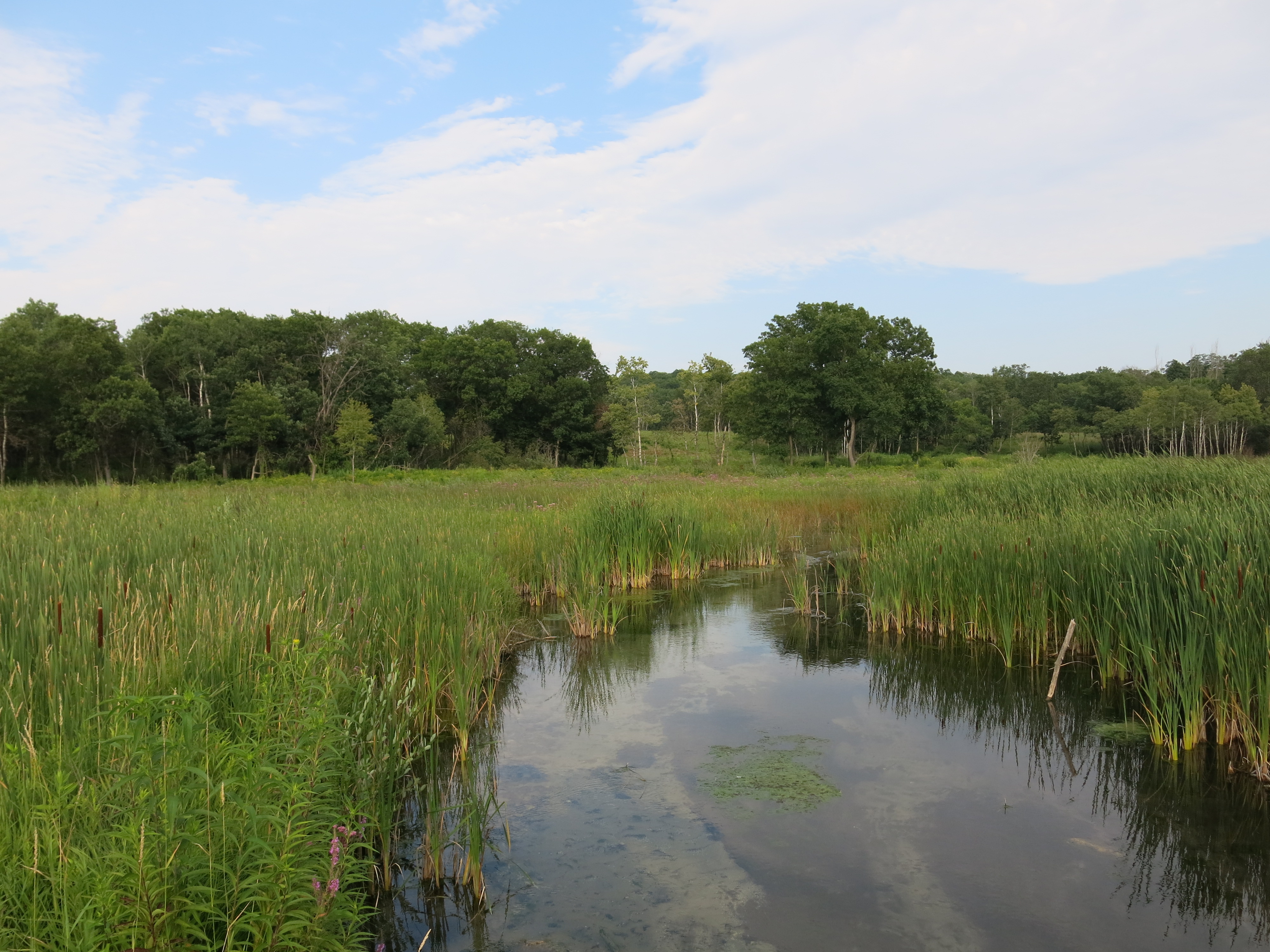 Yesterday, Pati and I met with DNR Trail Boss Don Dane to walk the trails and review our approach to restoring the Scuppernong Springs Nature Preserve, and we we joined by John and Sue Hrobar. I’m prone to excited bursts of non-stop chatter and, true to form, I began by telling Don that I wanted to go organic. He was totally on board with this and promised to help us achieve that goal. The first area we reviewed was the valley along the headwaters of the Scuppernong River that is dominated by phragmites and cattails. I told him Martin’s story and we talked about mowing and raking and Don suggested that, in the short term, I get a hedge cutter and simply cut the seed heads off the phragmites and cattails at a height that will leave the myriad of other plants that have emerged in the “understory” since the burn undisturbed. This will drain the energy from the phragmites and cattails while allowing the native plants to compete and, combined with fire, we hope this will be an effective strategy.
