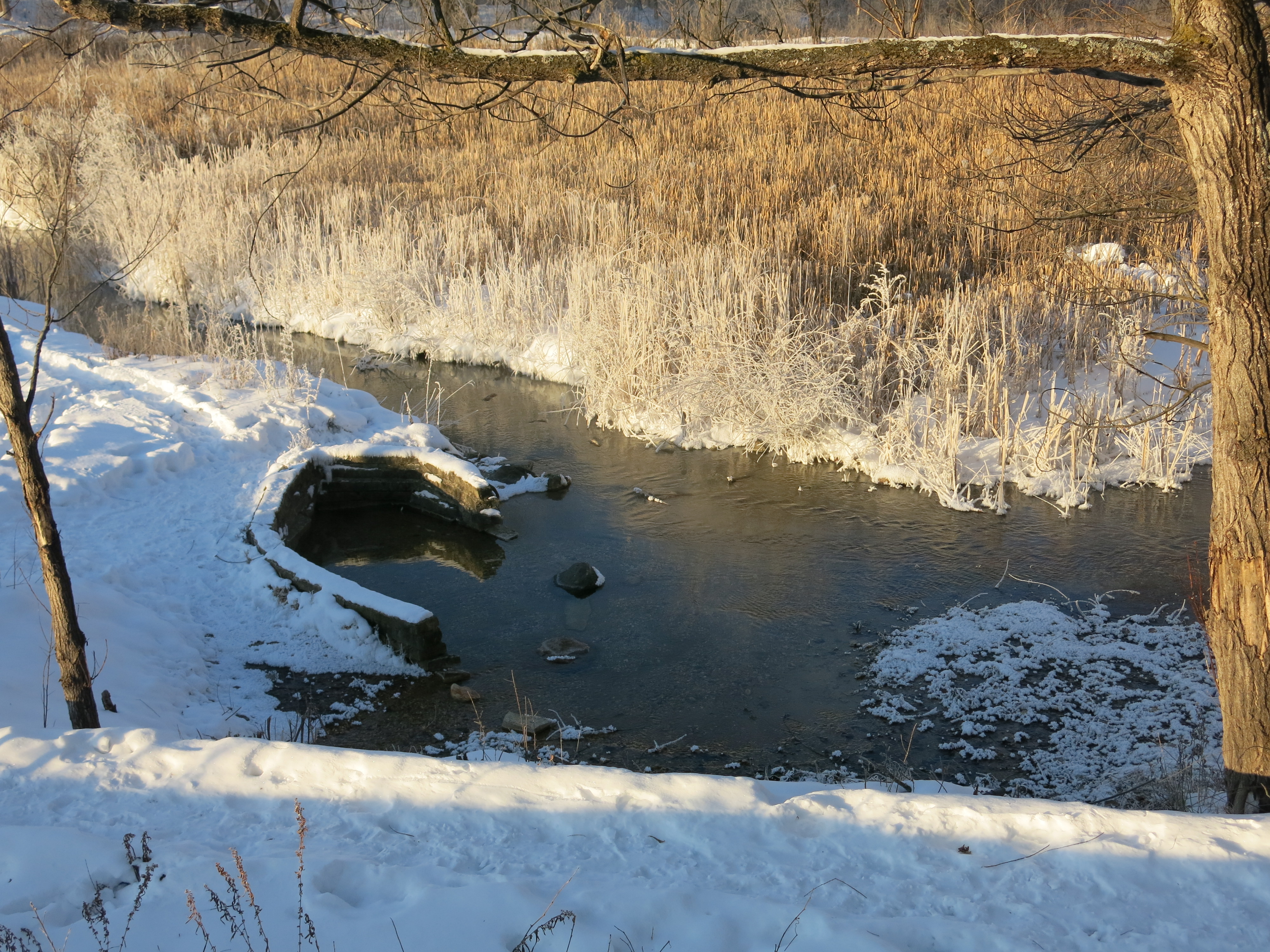 I was working on the Buckthorn Alley yesterday and noticed a drainage ditch demarcating an area on the south side of the trail that I wanted to cut. Working along the west bank of the ditch, I noticed open water and soon beheld this spring.