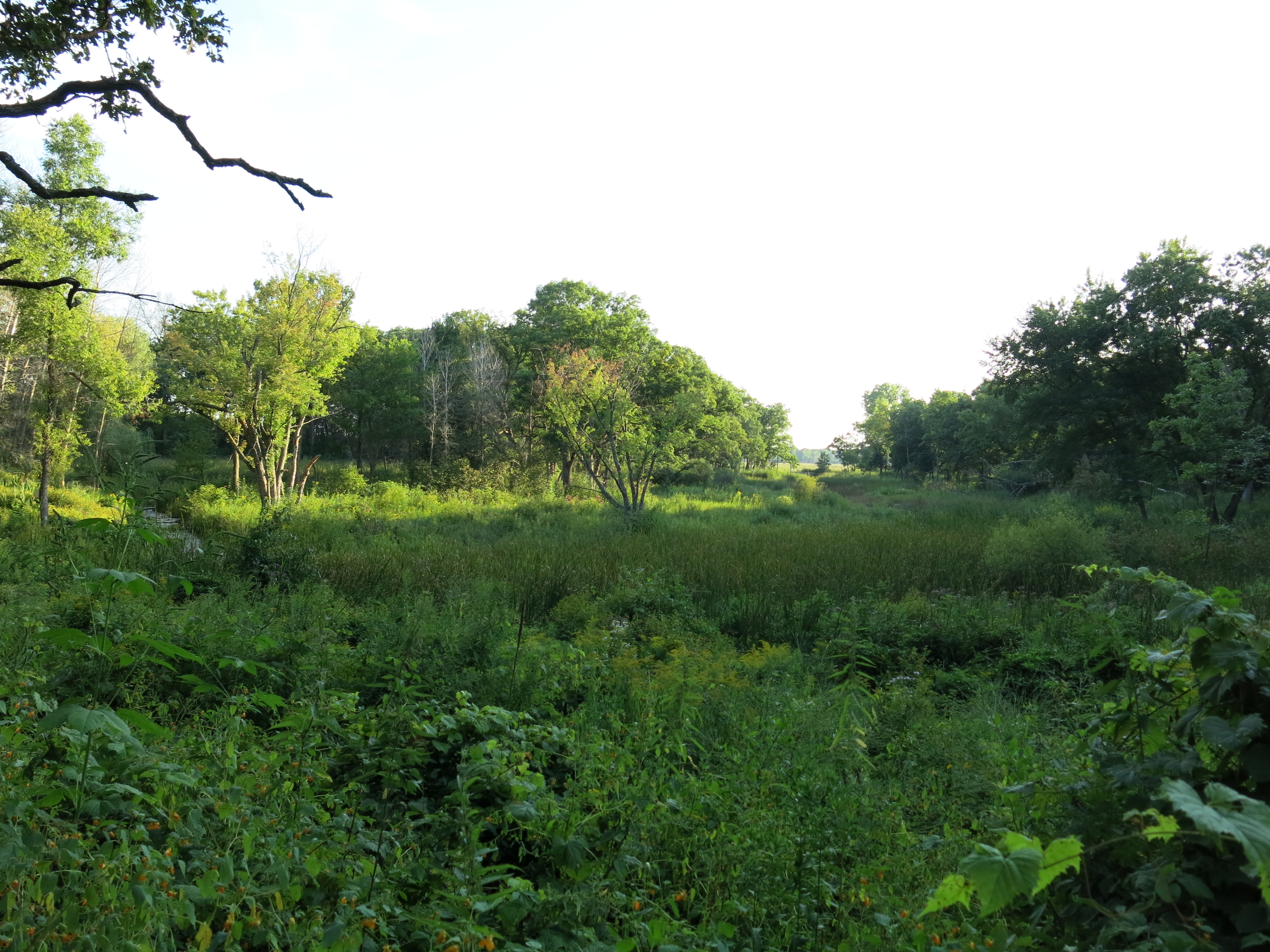 On Wednesday, I “mowed” the trail from the area around the hotel spring, north up to signpost #13, and then, following the cut-off trail, to the marl pits. I cut a lot of thistle that was about to go to seed and tons of white clover near the marl pits with my brush cutter, which is a lot more handy than a mower for stepping off the trail to get the nearby weeds.