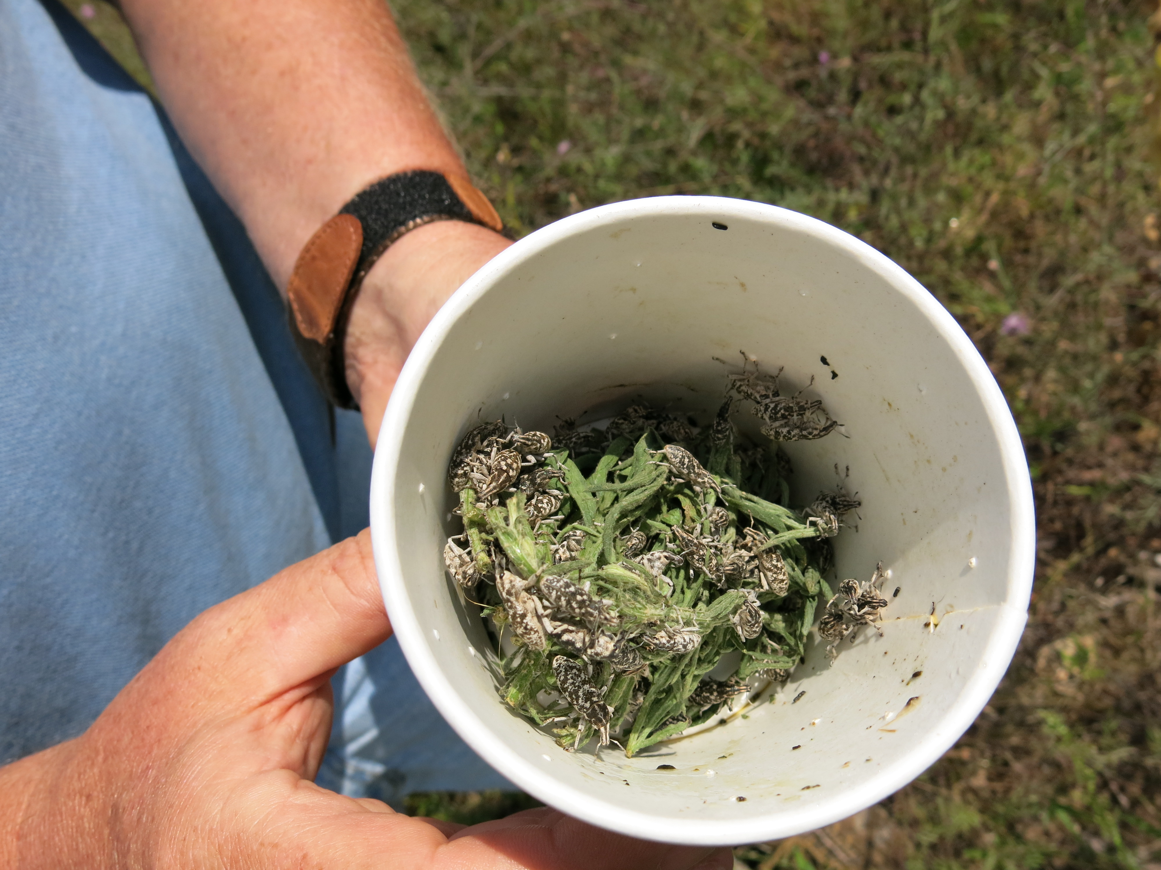 On Wednesday my spotted knapweed weevils arrived! Because of the super fast response I got from the DNR, my permit was ready in time for Kandace, at Weedbusters, to send me the flower weevils (the root weevils will be available in a few weeks). Look at those hungry critters!