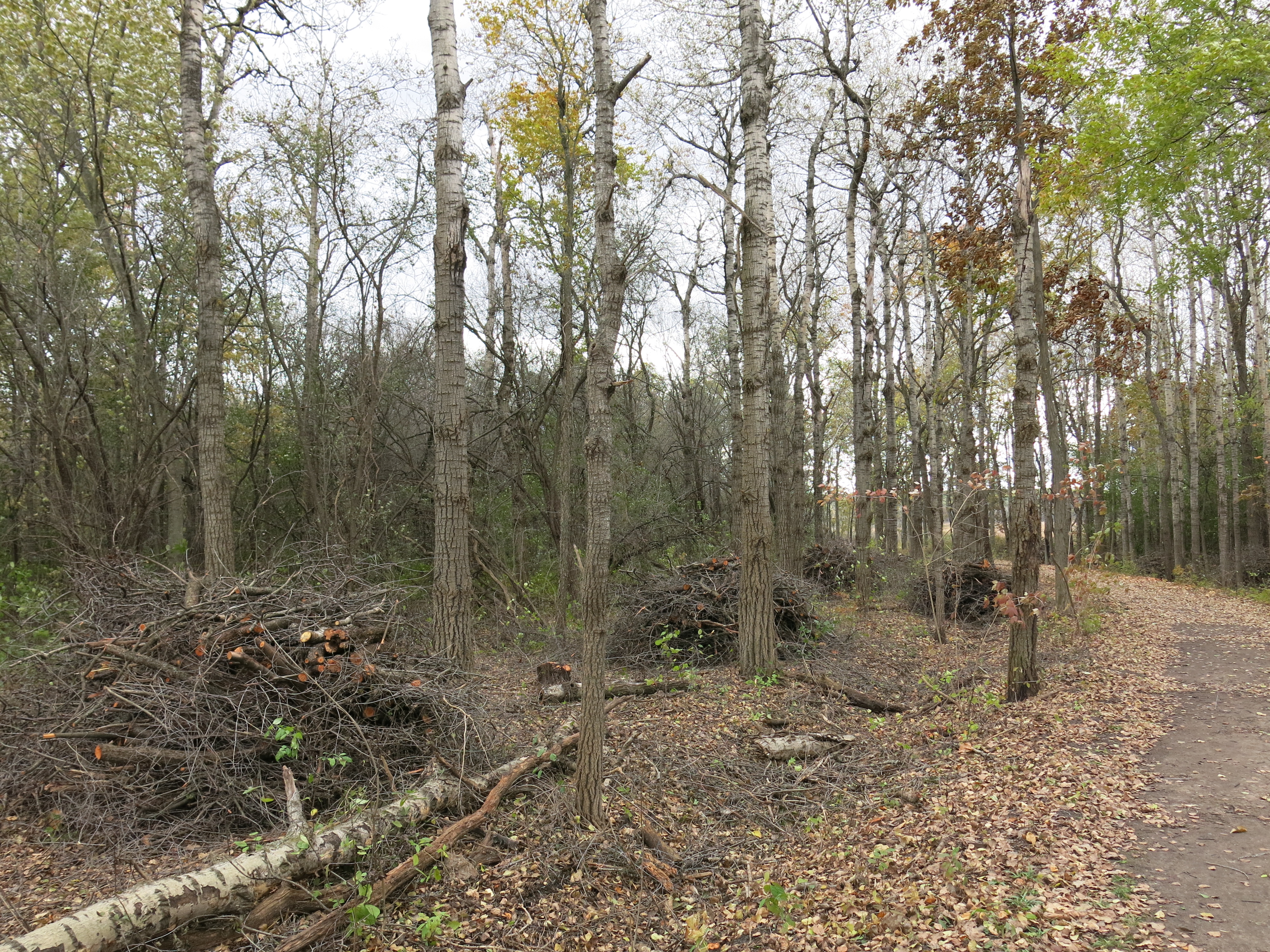 Buckthorn seedlings along the cut-off trail.